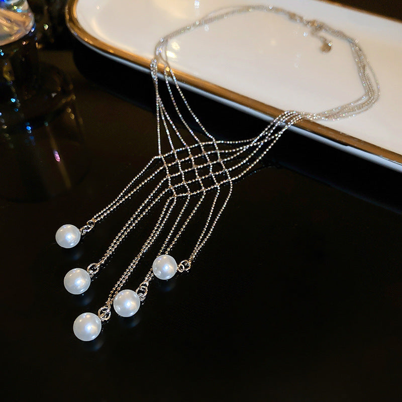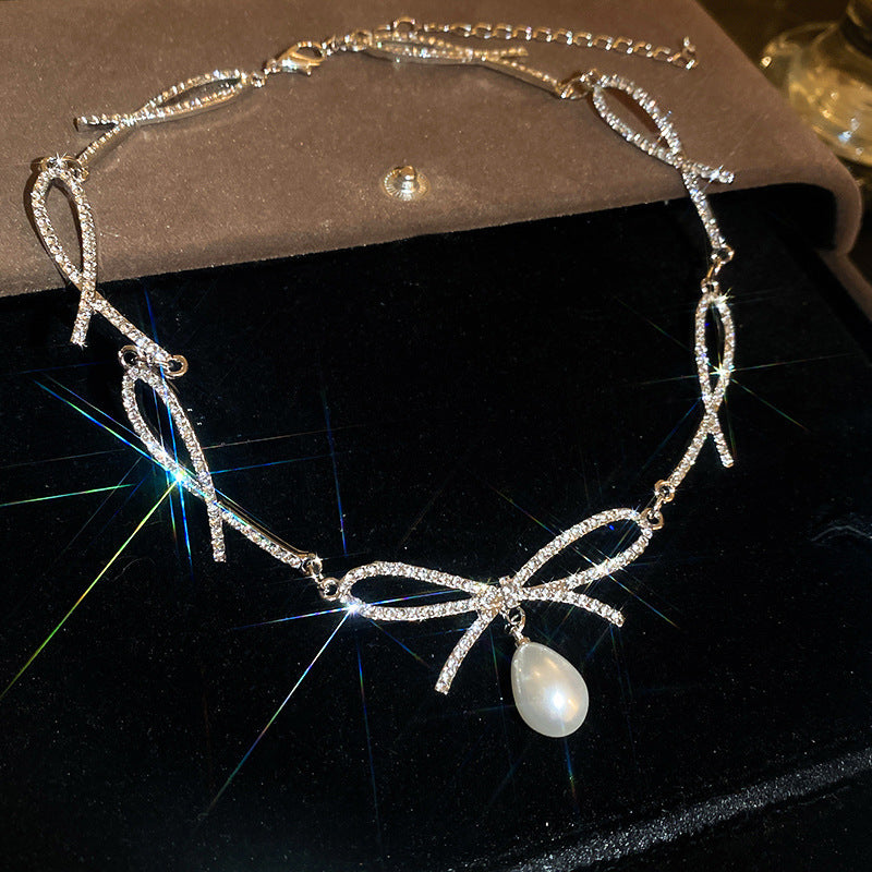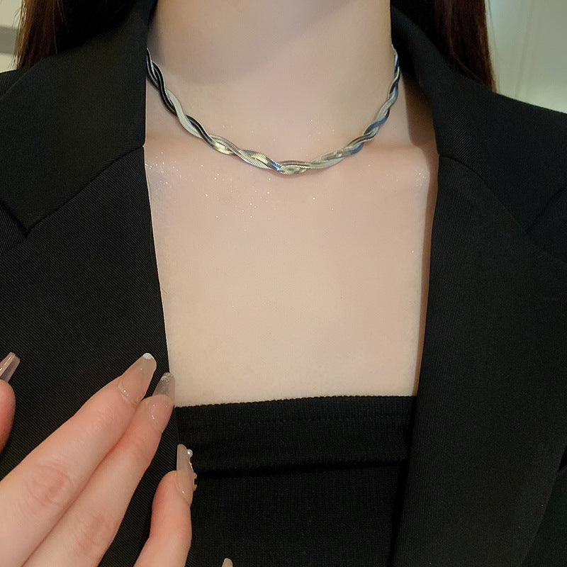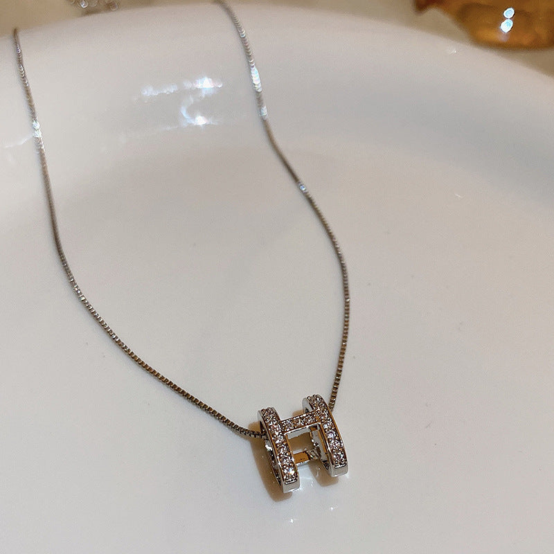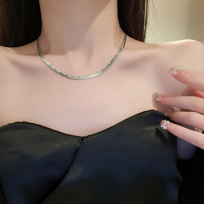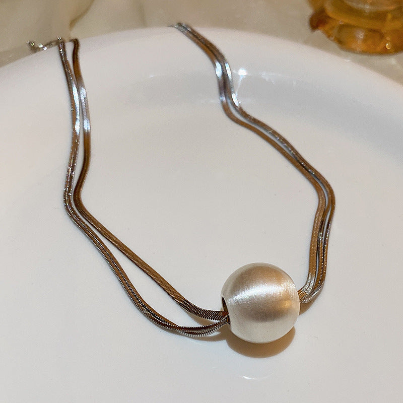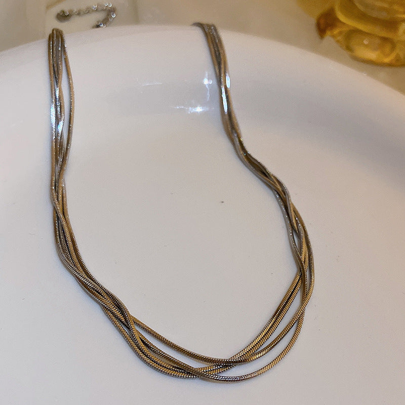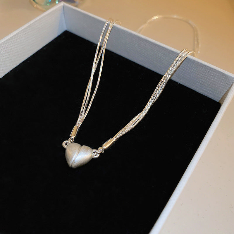 時尚冷淡風鑲鑽愛心圓珠多層蛇骨項鍊氣質鎖骨鏈網紅個性輕奢項飾