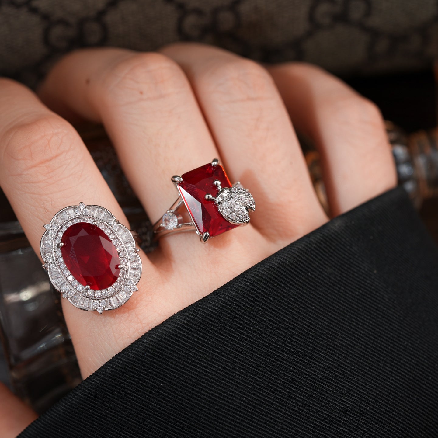 顏色: 戒指-銀色-紅色
