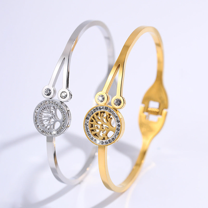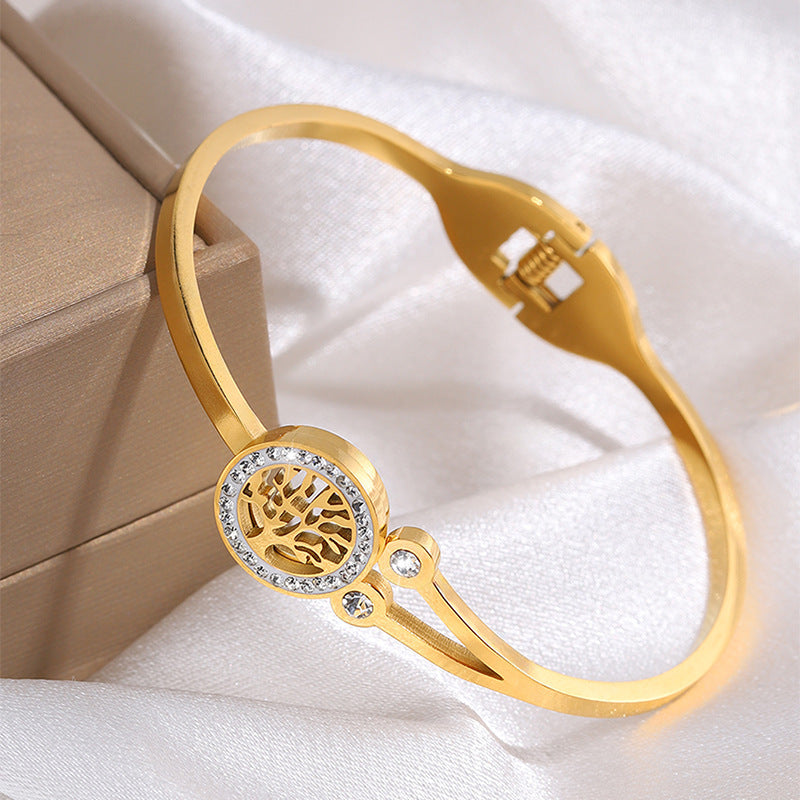 6CM/2.36IN: 金色鑲鑽生命樹手鐲
