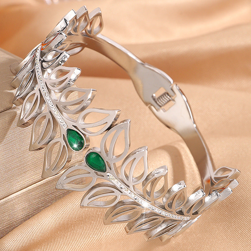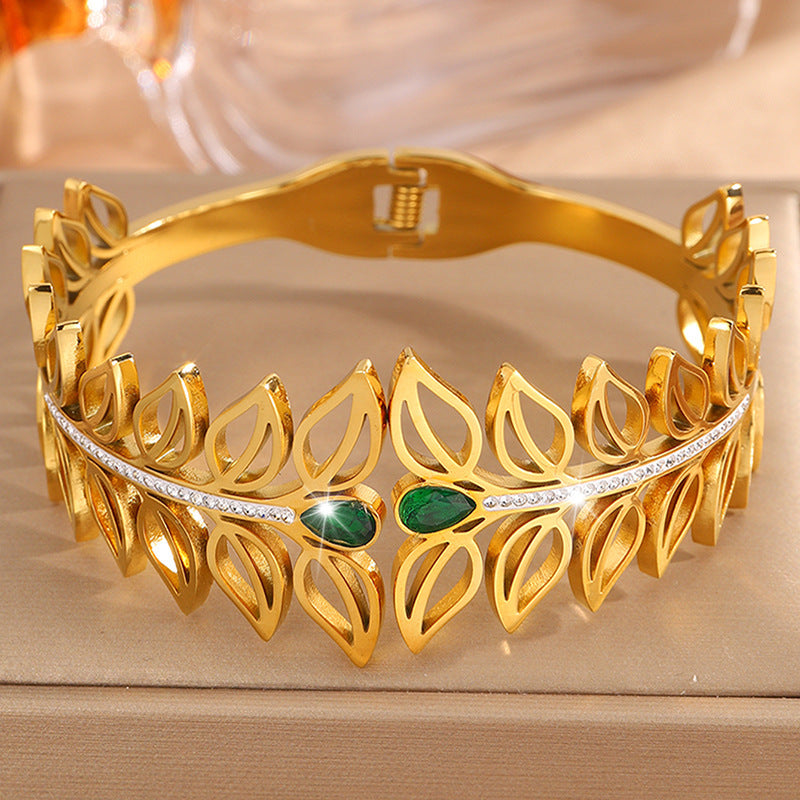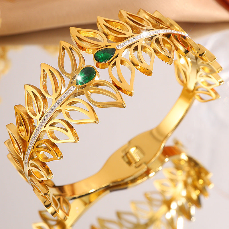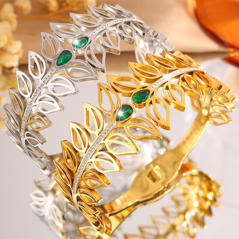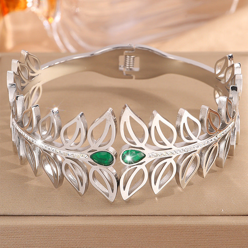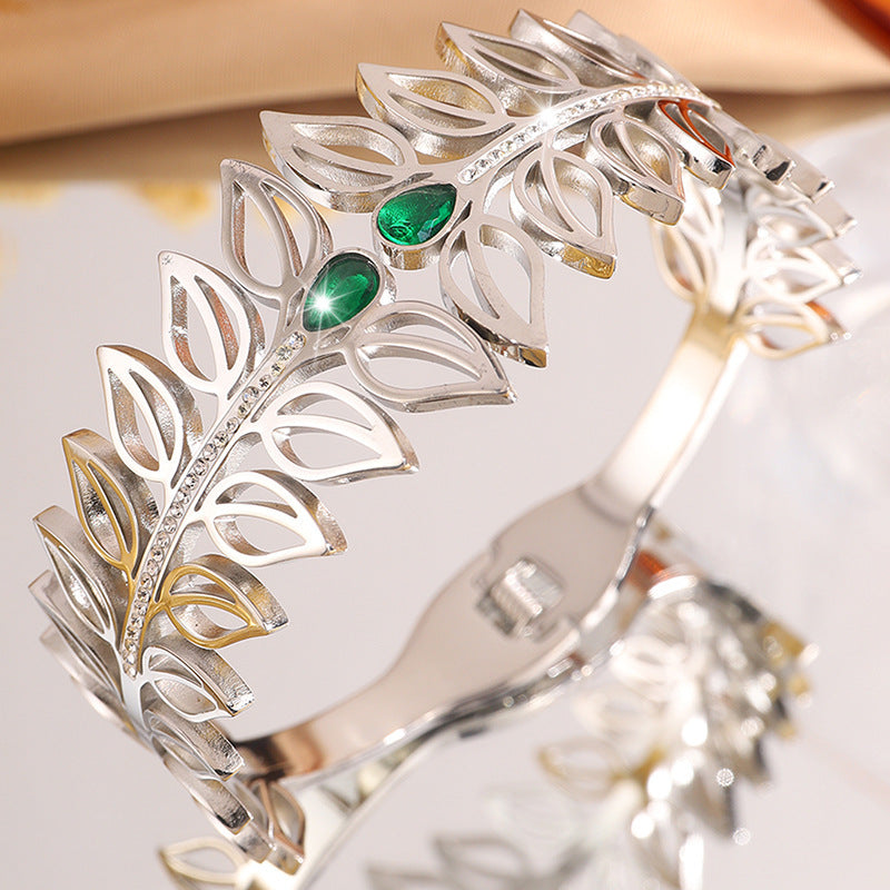 歐美時尚樹葉加冕皇冠鈦鋼手鐲女高版本貴族氣質情侶鑲鑽手鐲飾品
