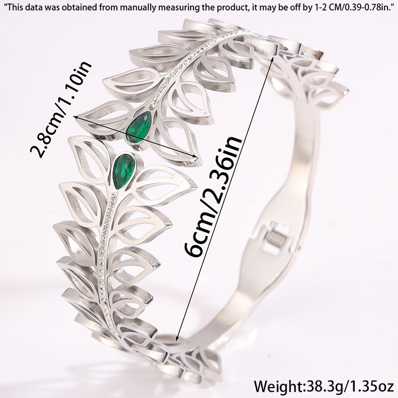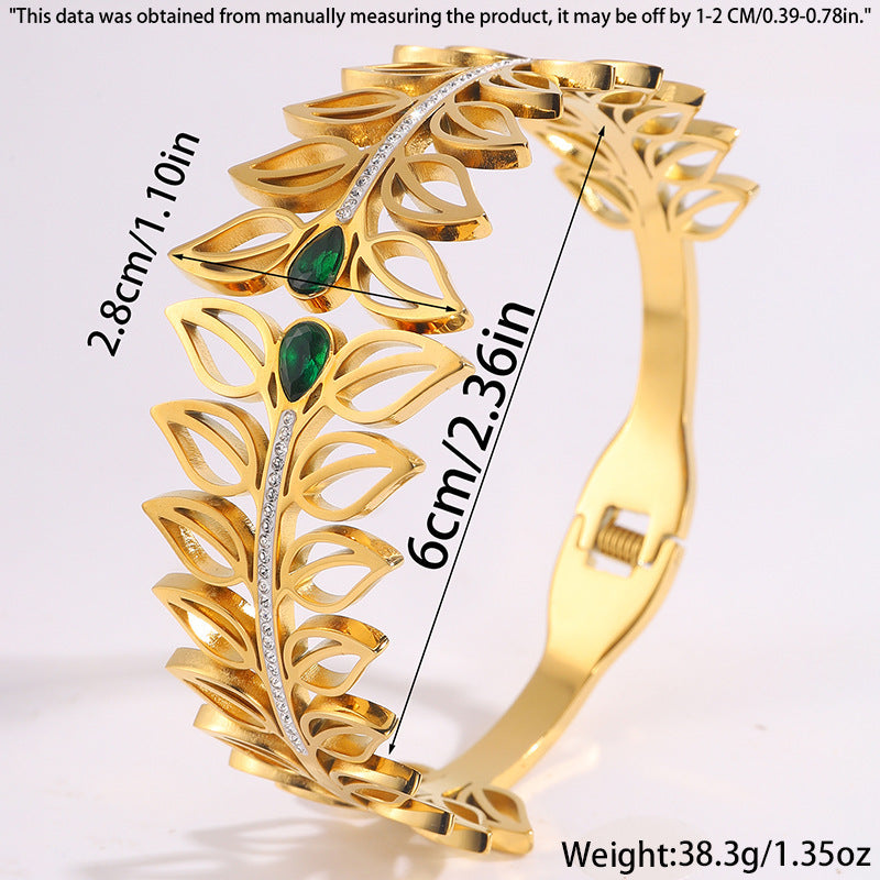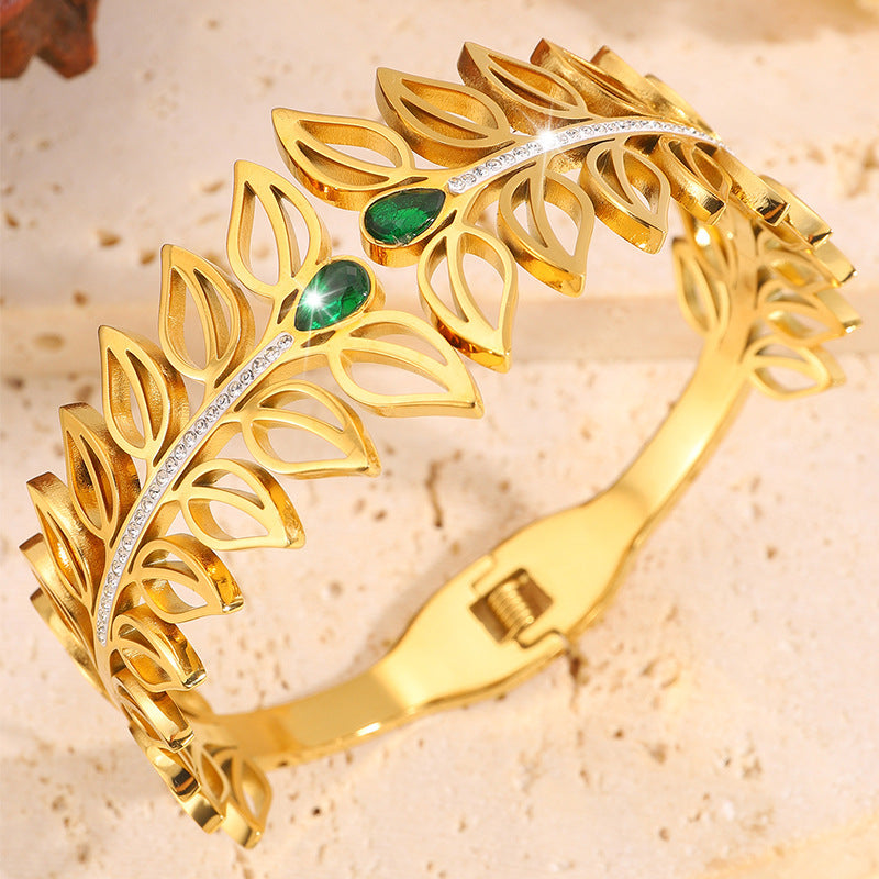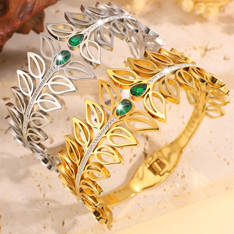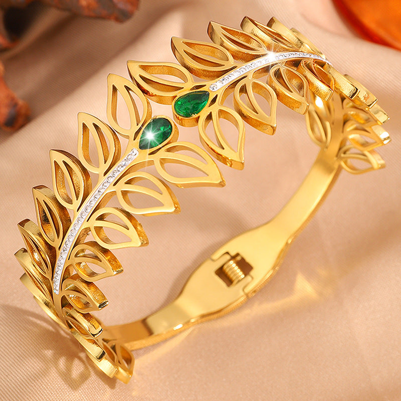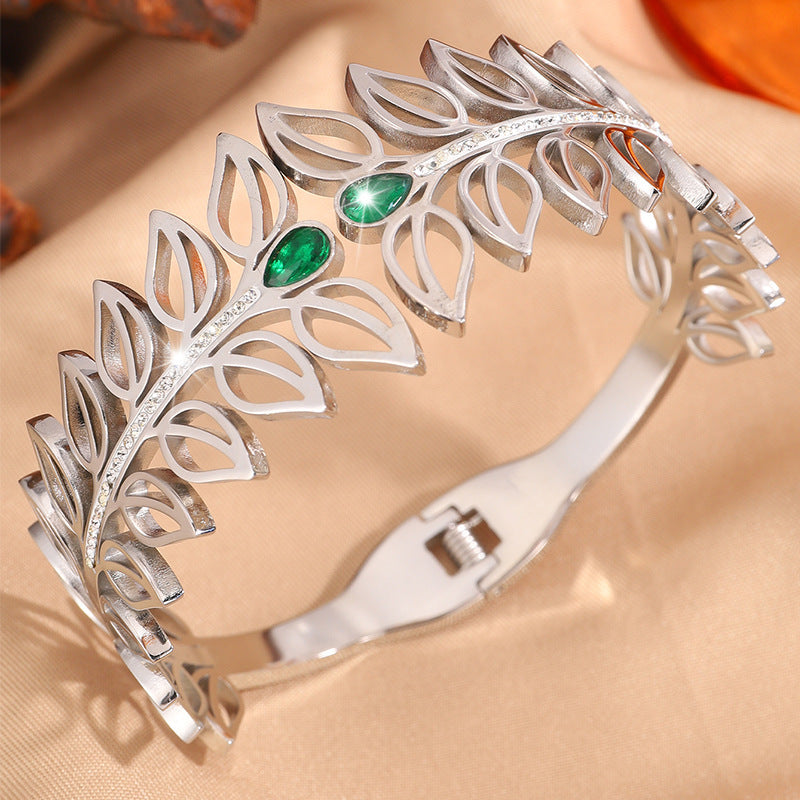 歐美時尚樹葉加冕皇冠鈦鋼手鐲女高版本貴族氣質情侶鑲鑽手鐲飾品