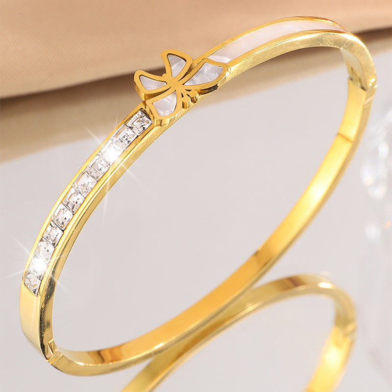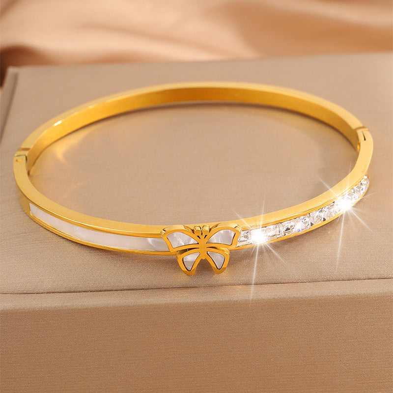 歐美時尚蝴蝶鑲鑽鈦鋼手鐲女高級感不掉色百搭氣質排鑽手鐲飾品