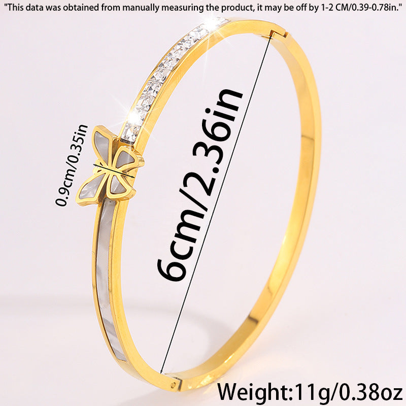 6CM/2.36IN: 金色貝殼蝴蝶鑲鑽手鐲
