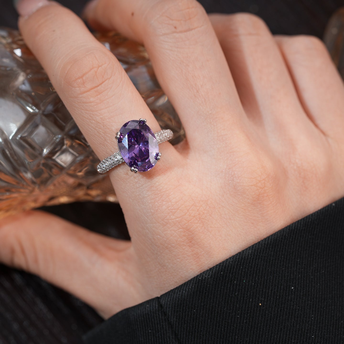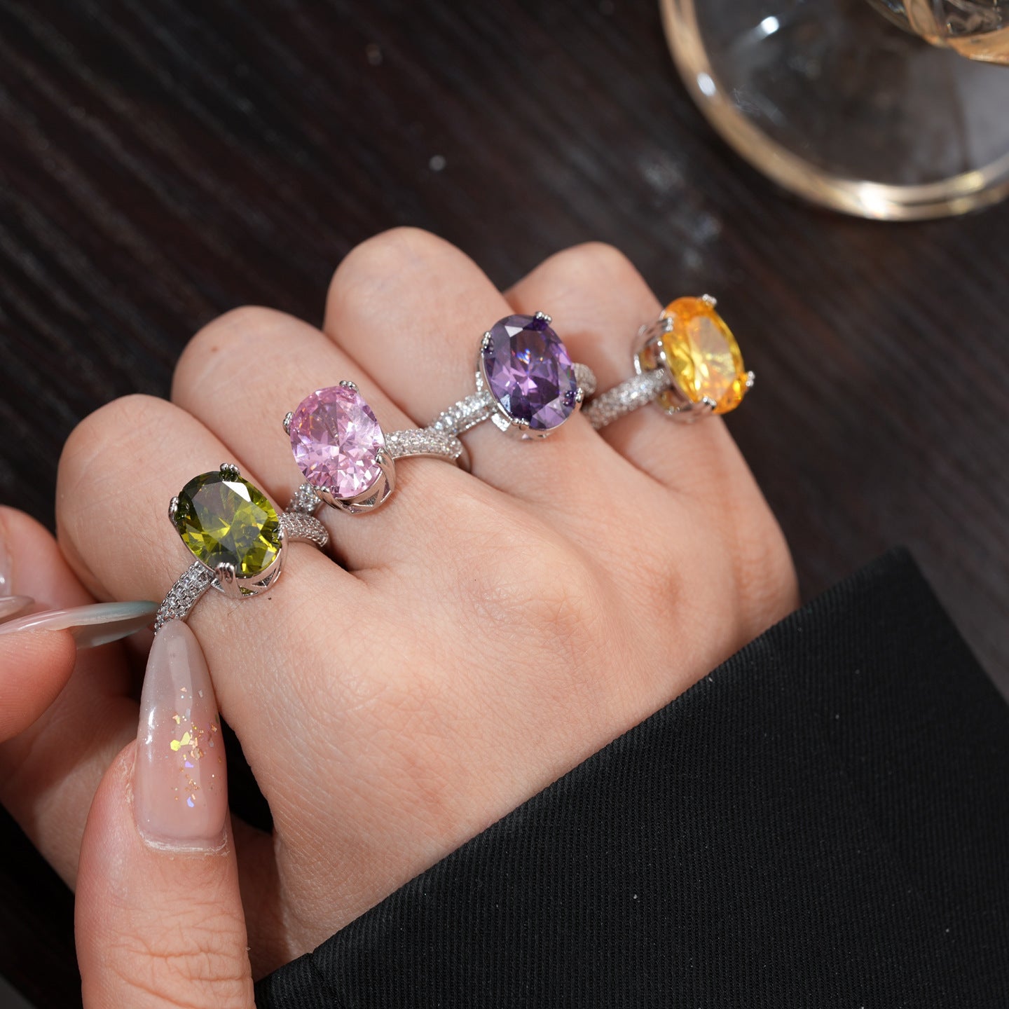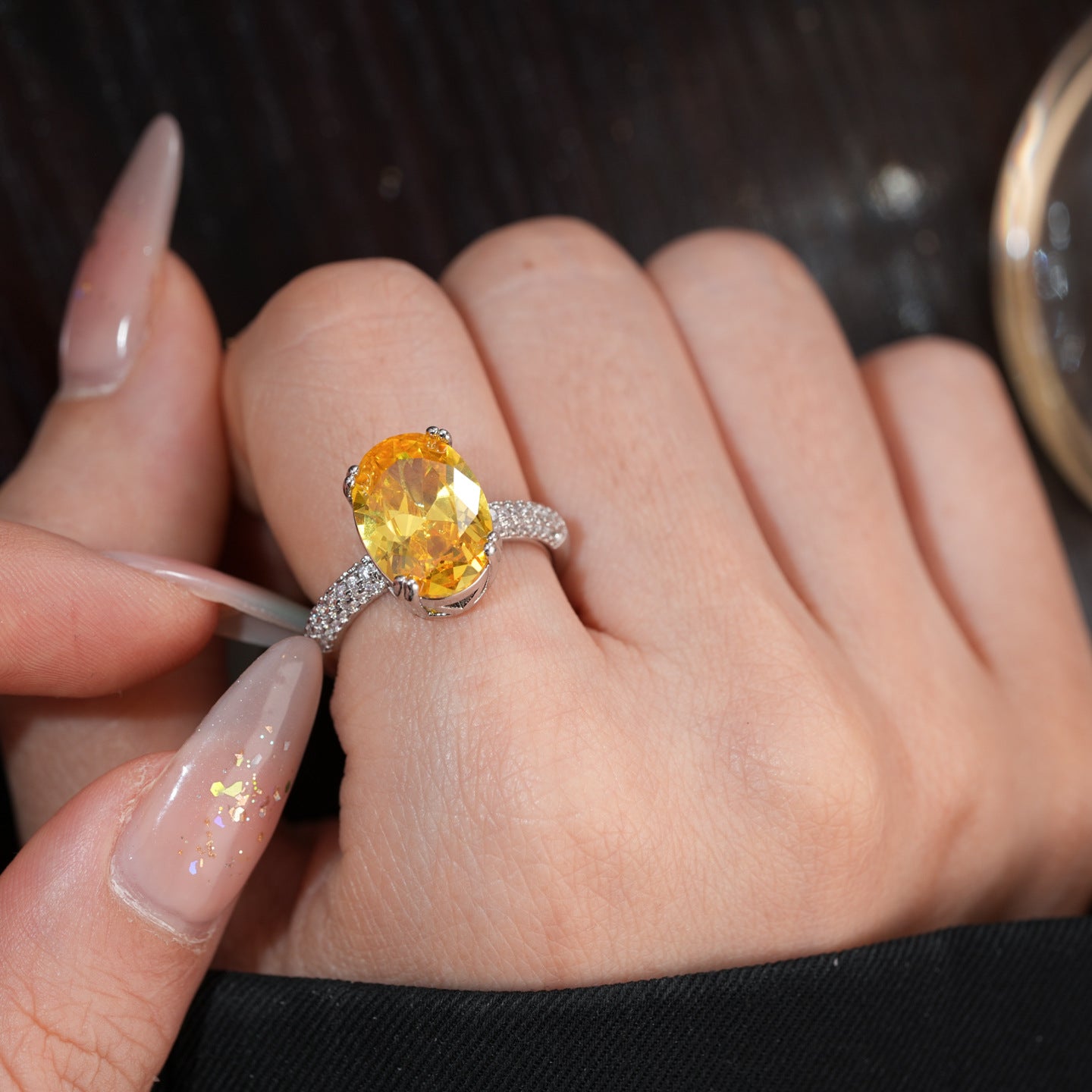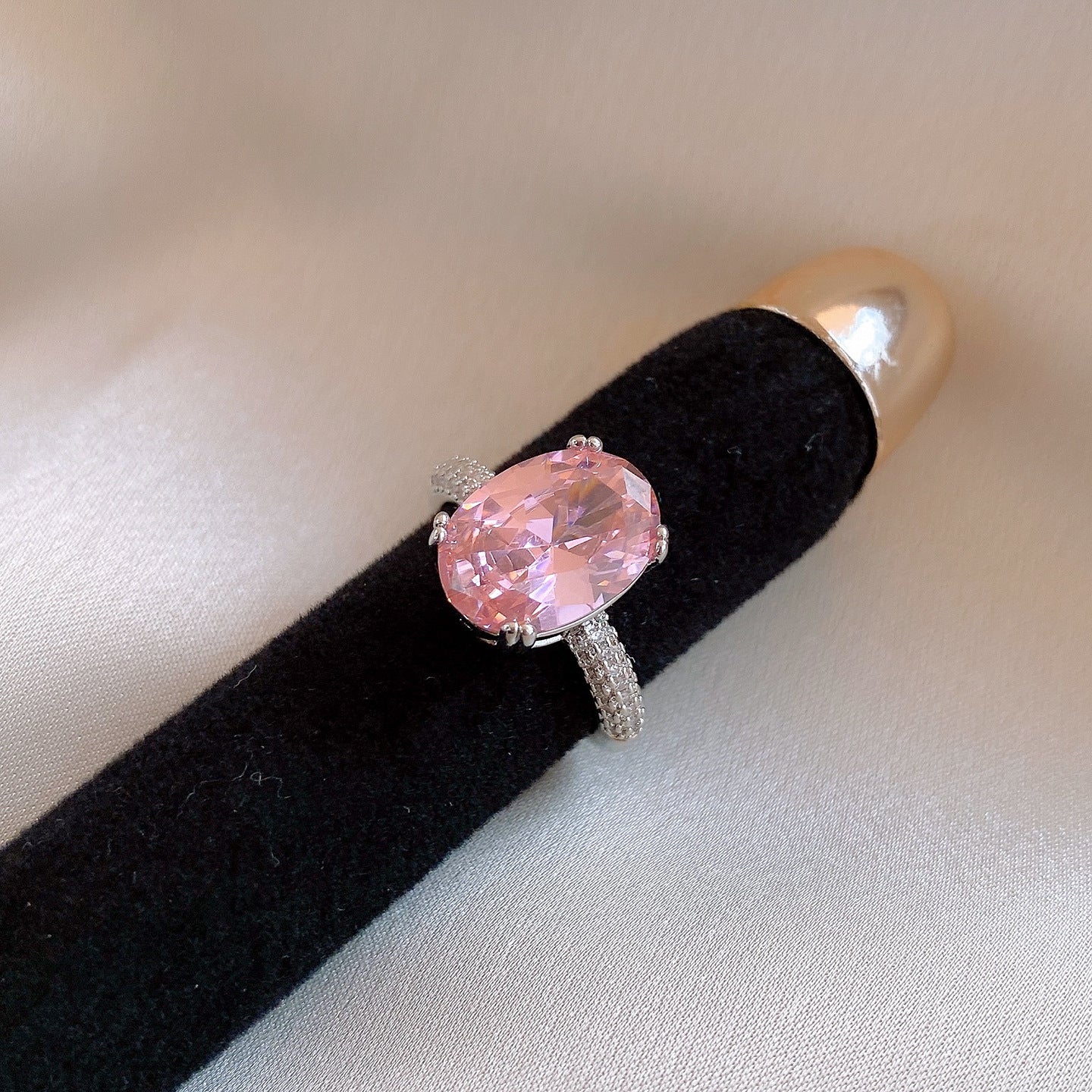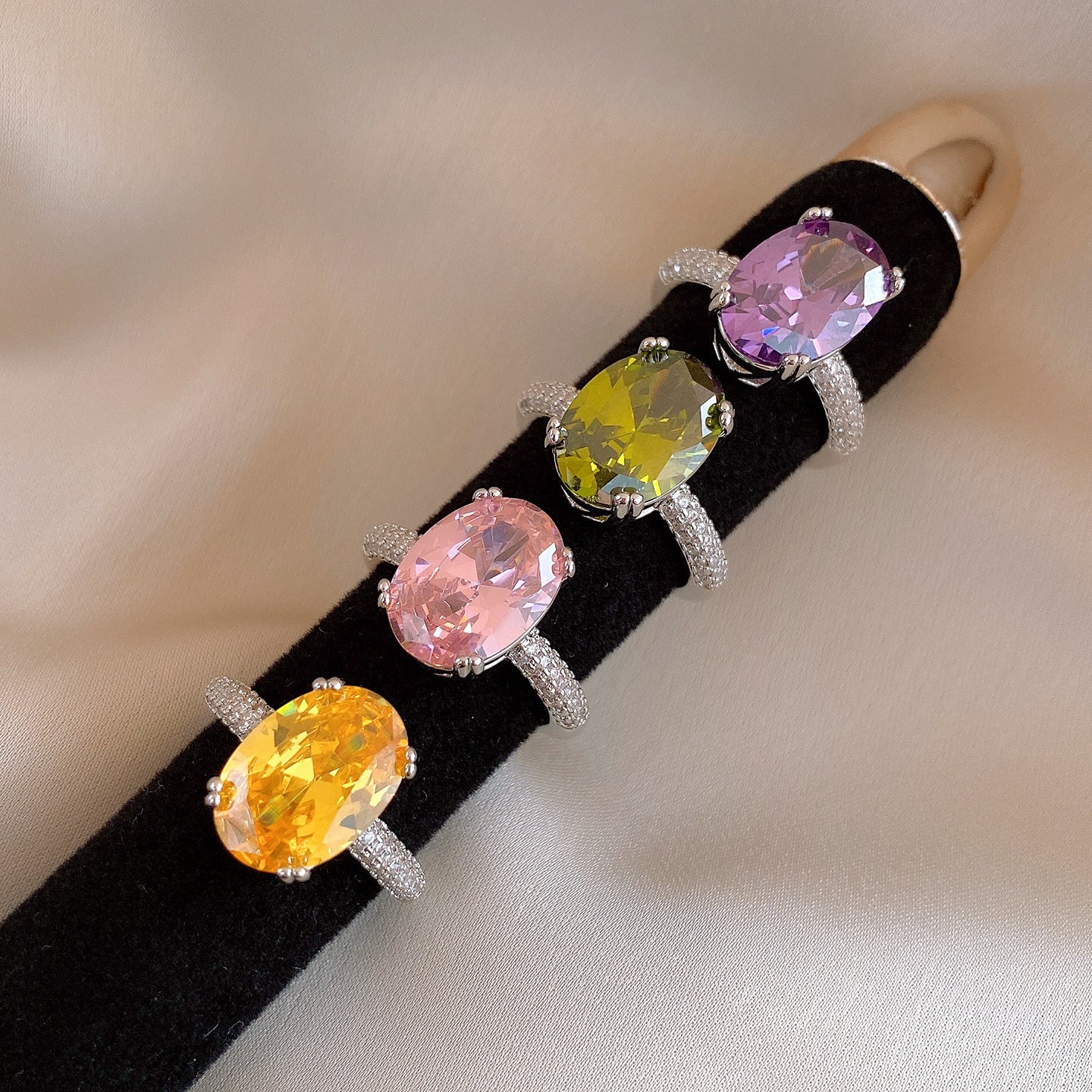 歐美誇張橢圓形鋯石開口戒指輕奢高級感食指戒時尚設計感小衆手飾