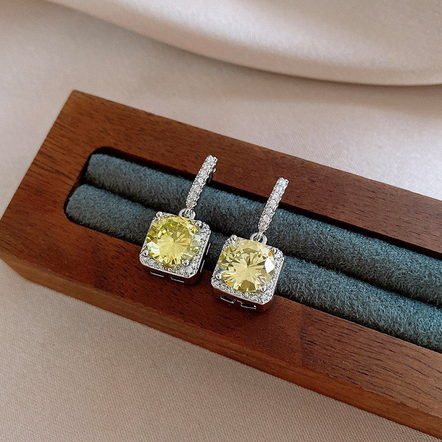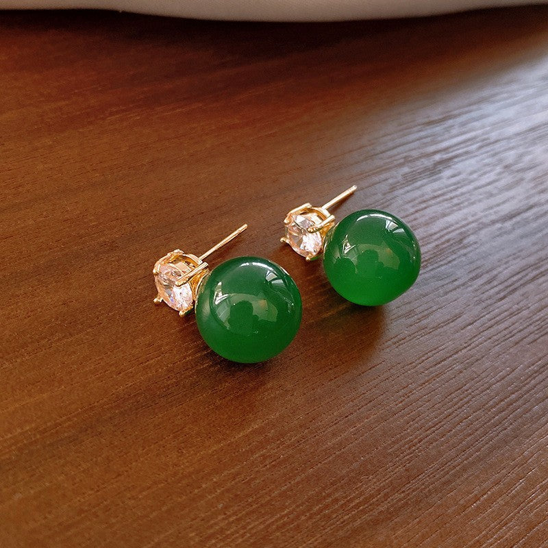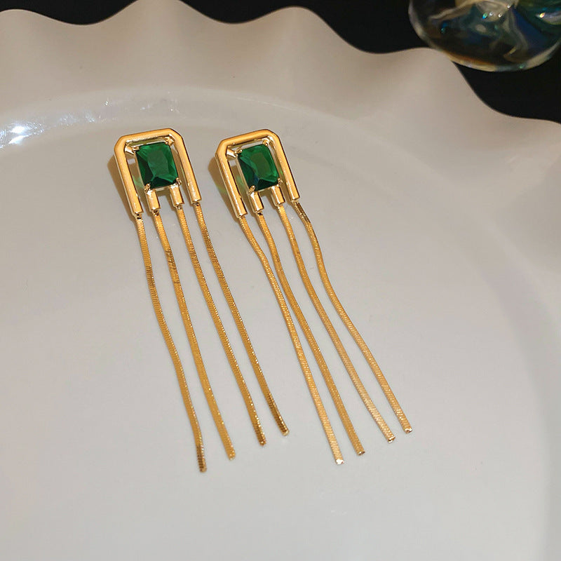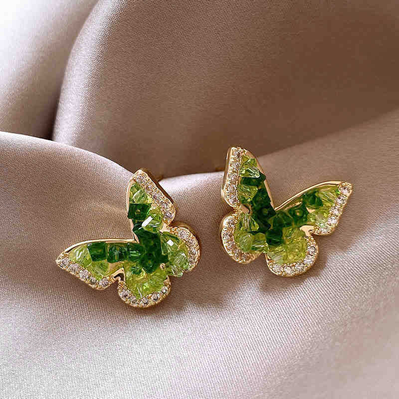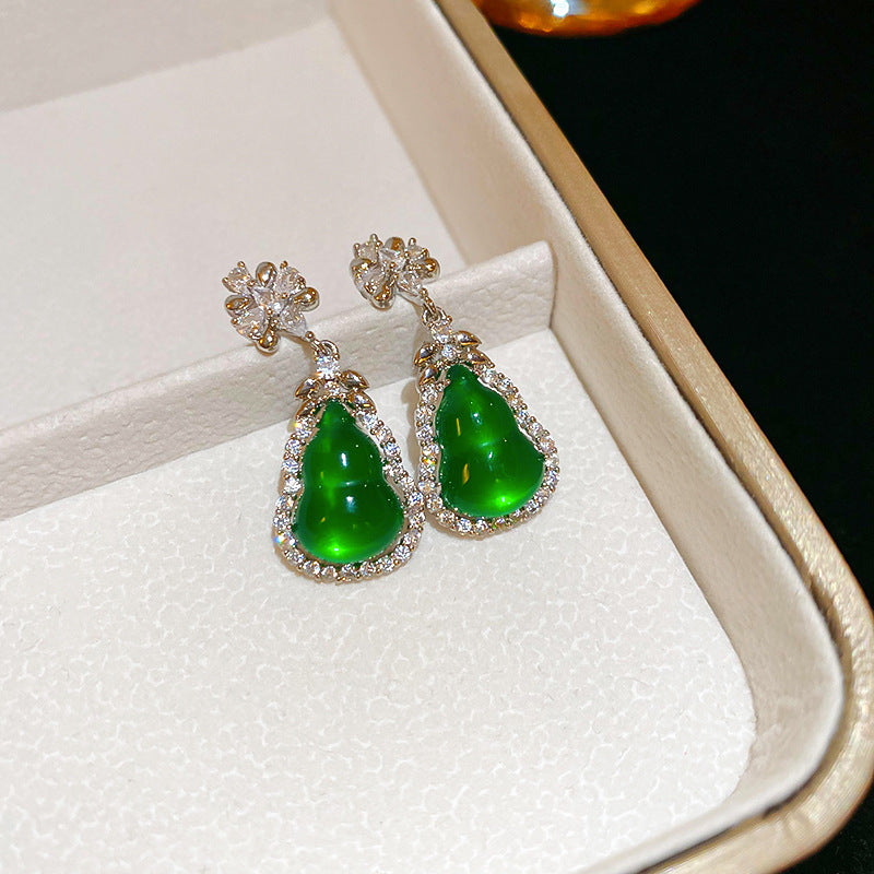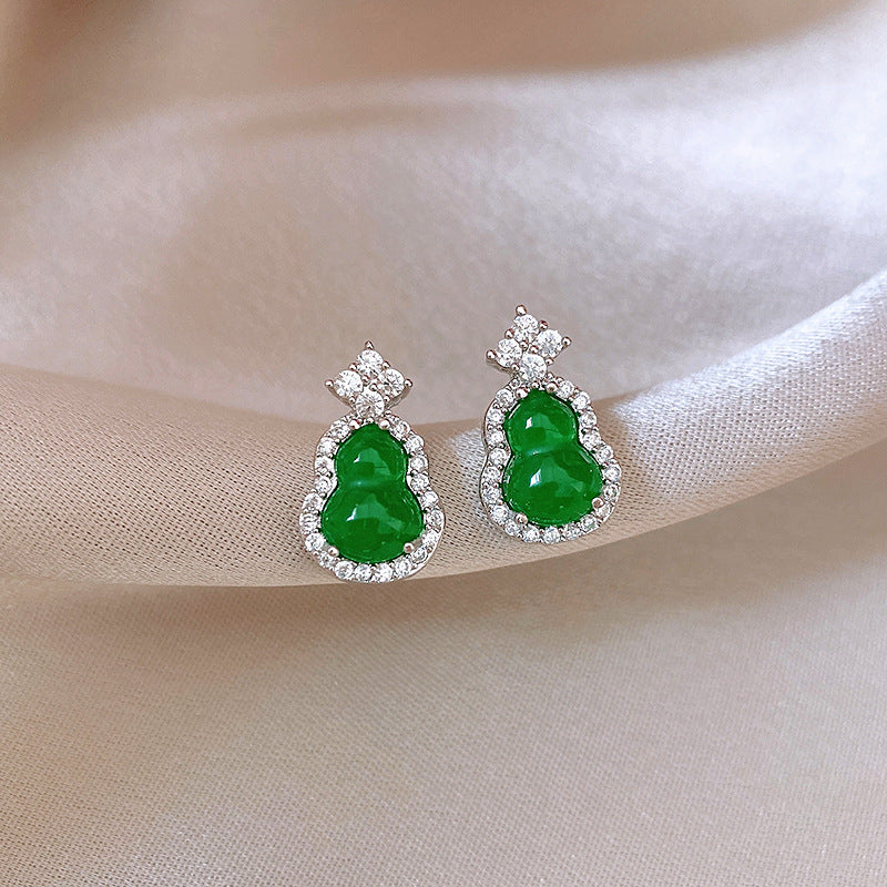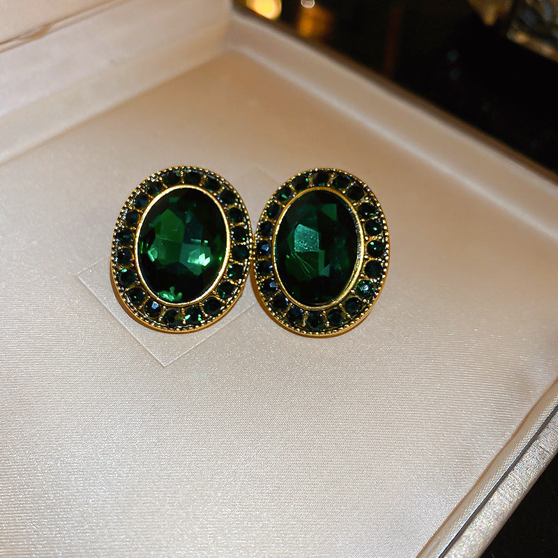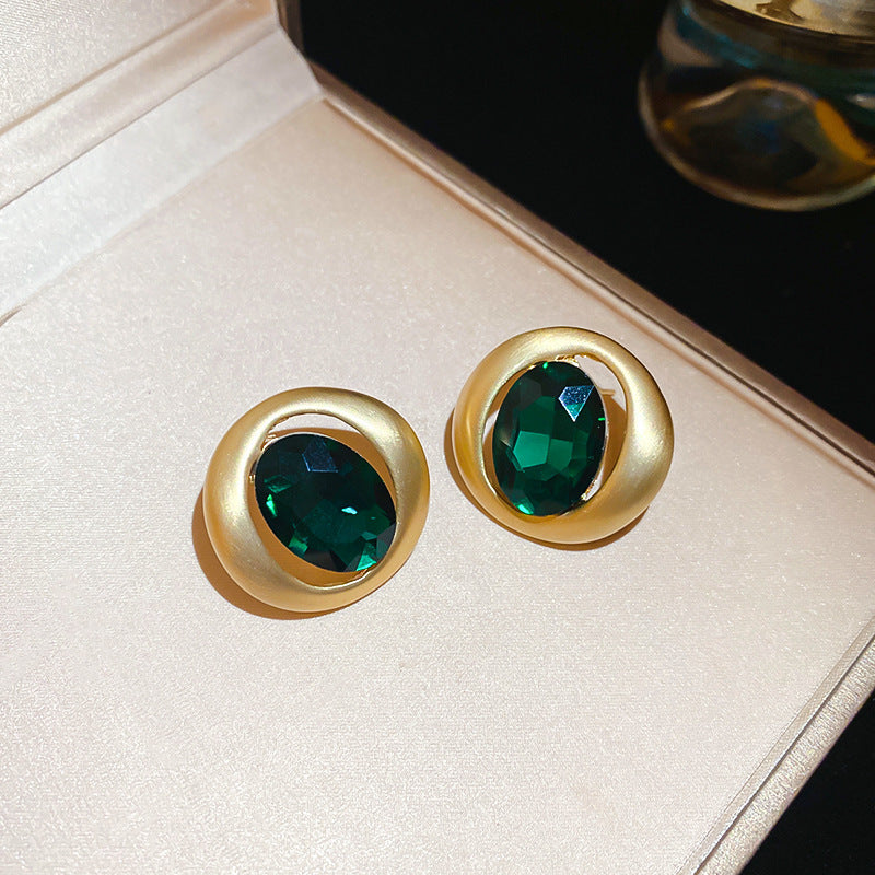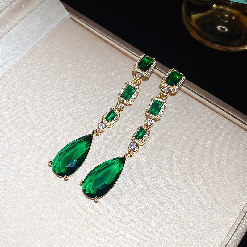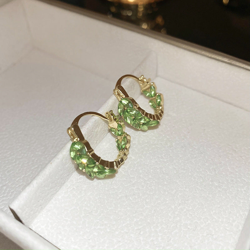 歐美跨境綠色鋯石花朵幾何耳釘氣質百搭耳環輕奢高級感耳飾設計感