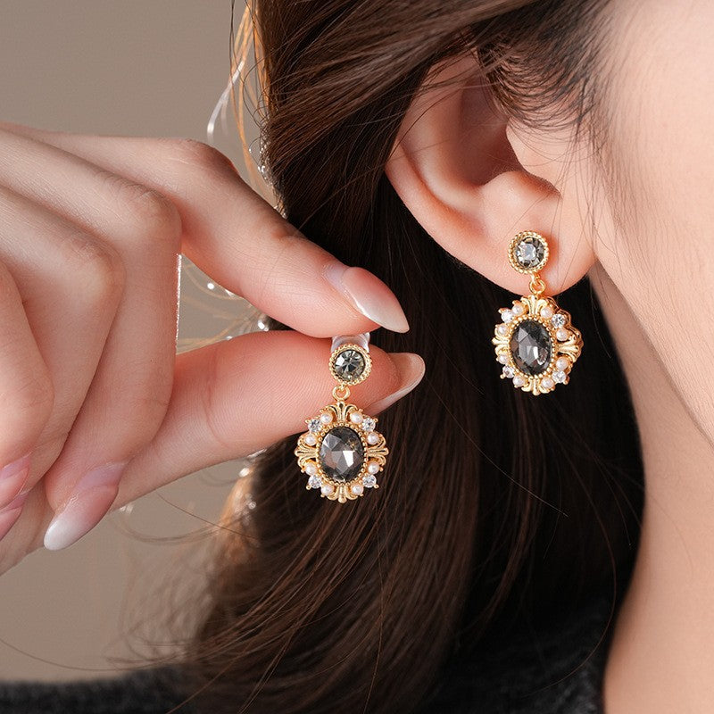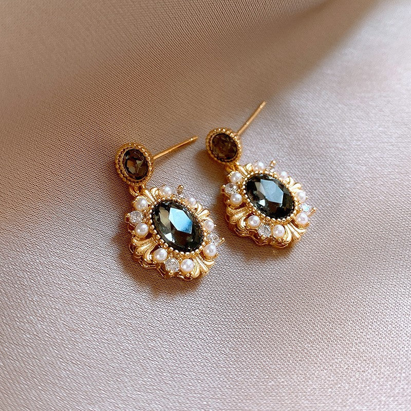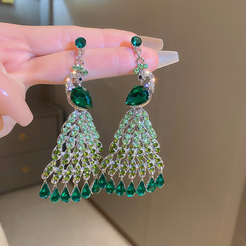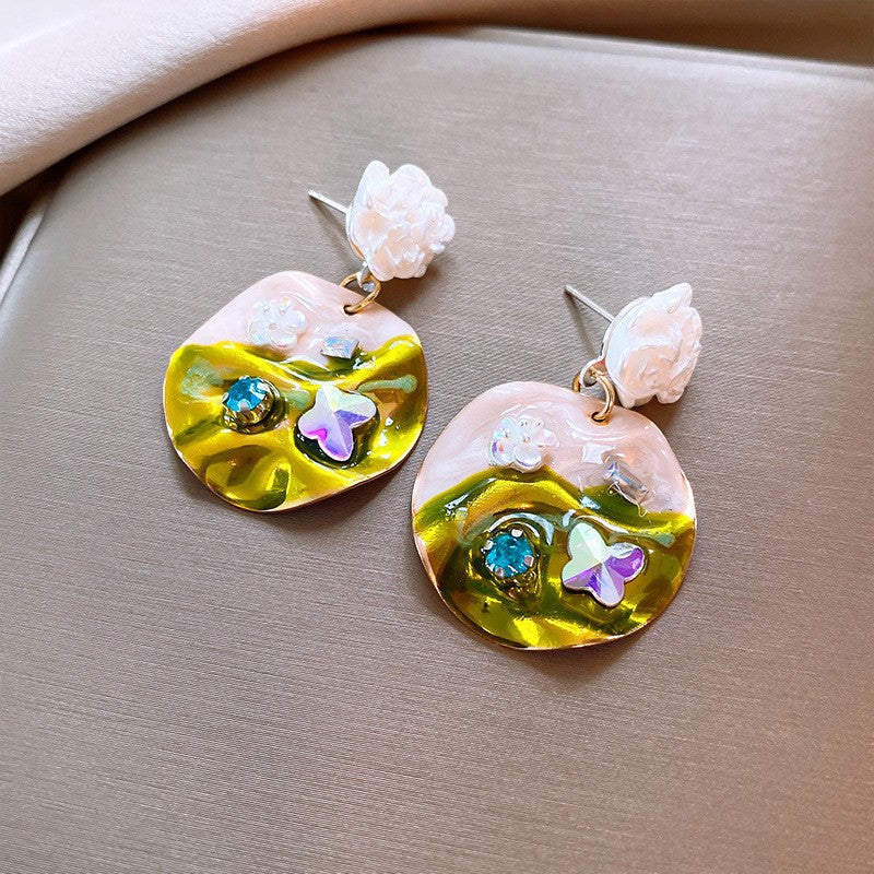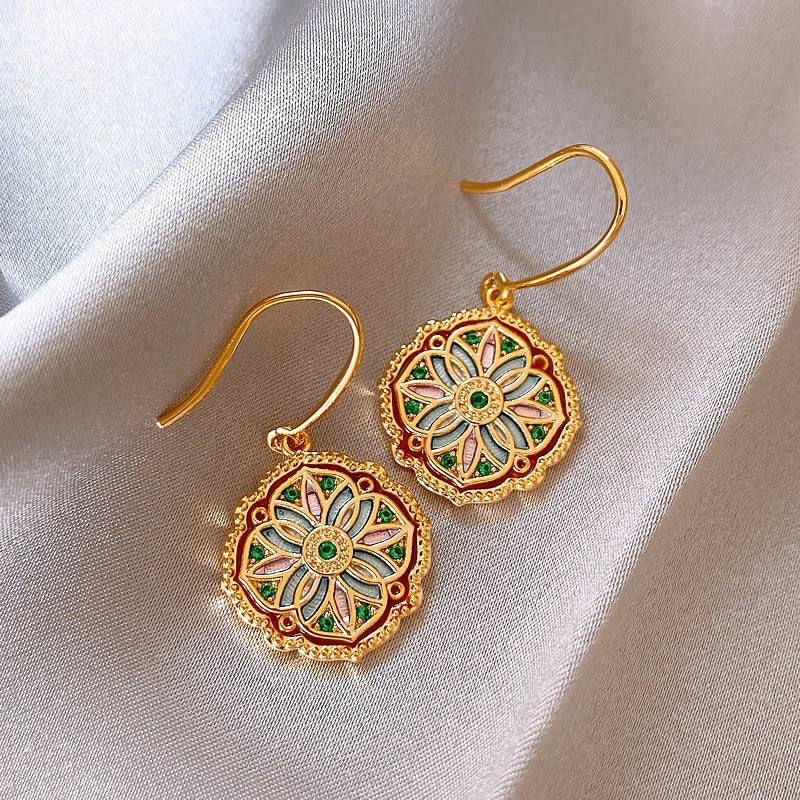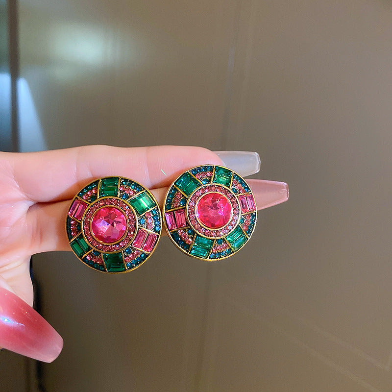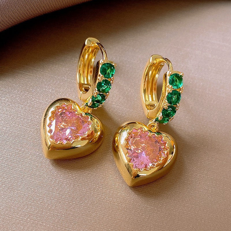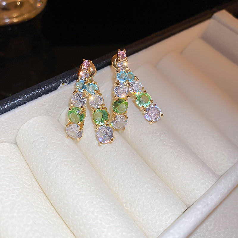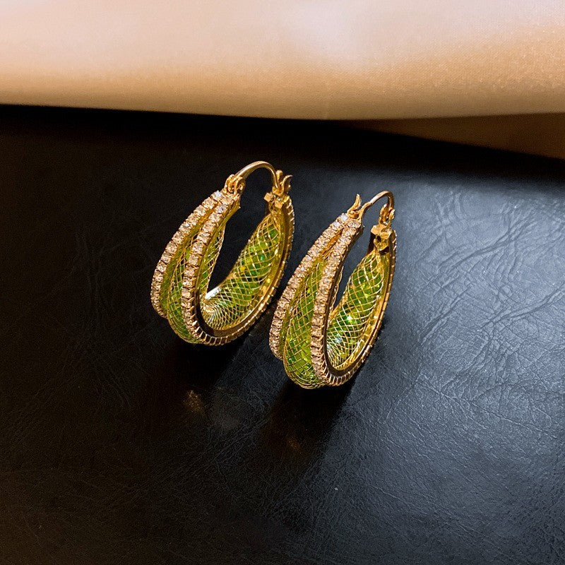 歐美跨境綠色鋯石花朵幾何耳釘氣質百搭耳環輕奢高級感耳飾設計感