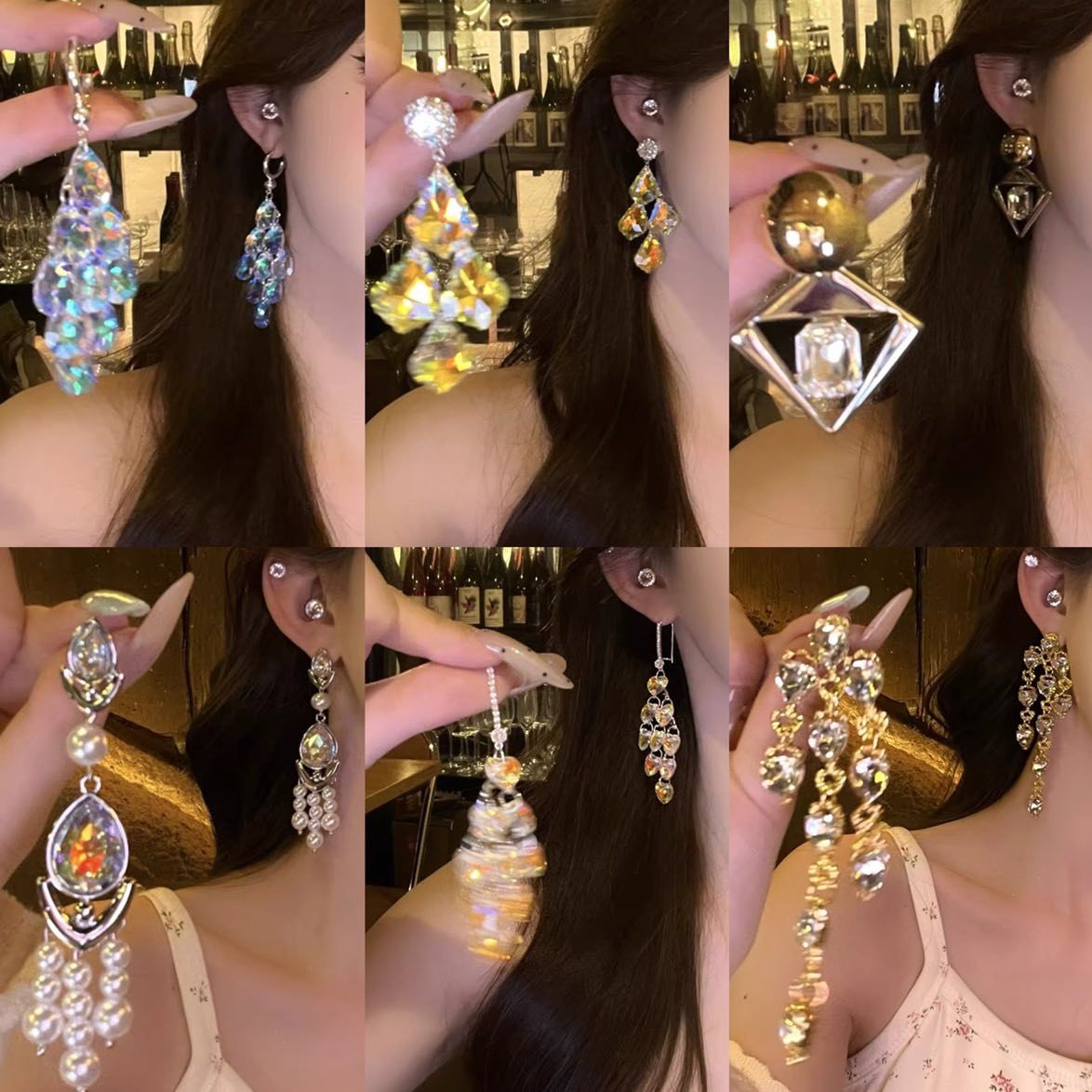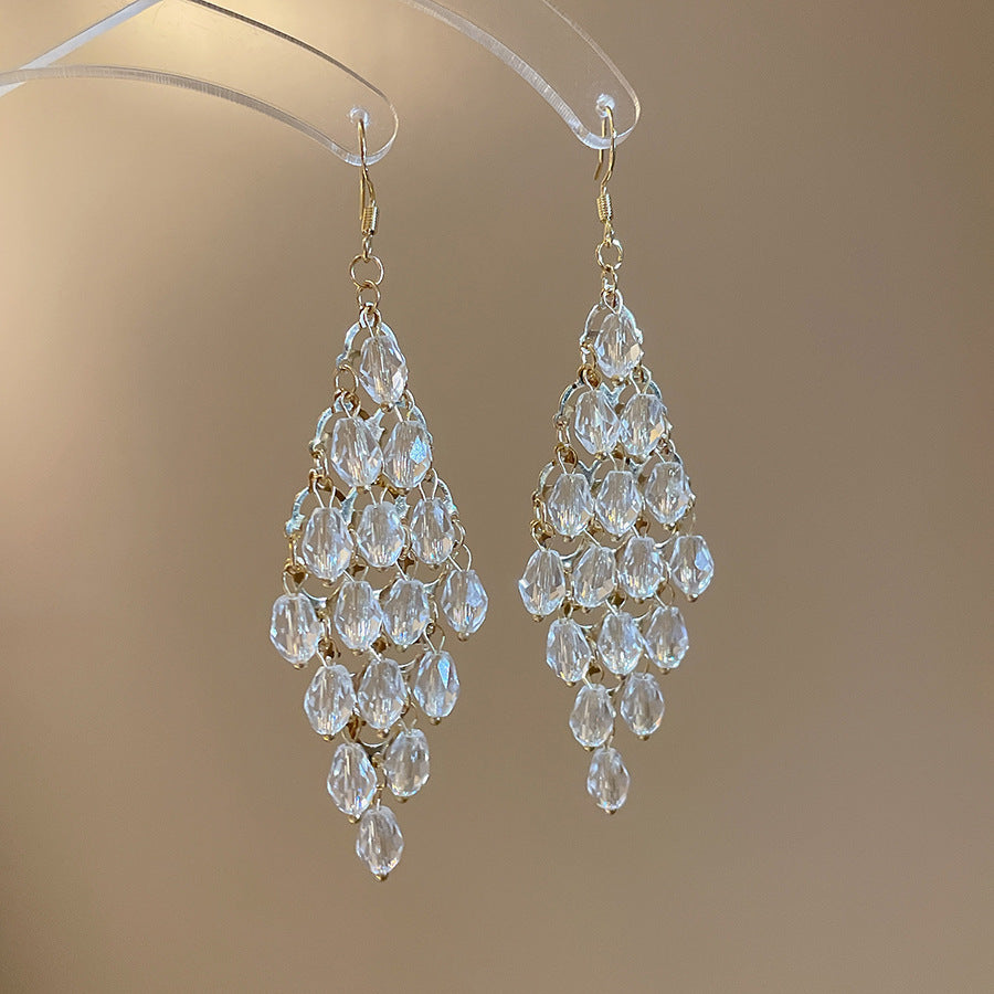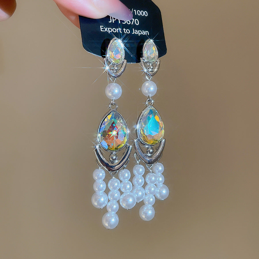 歐美跨境超閃水晶流蘇耳環輕奢高級感耳釘誇張氣質奢華設計感耳飾