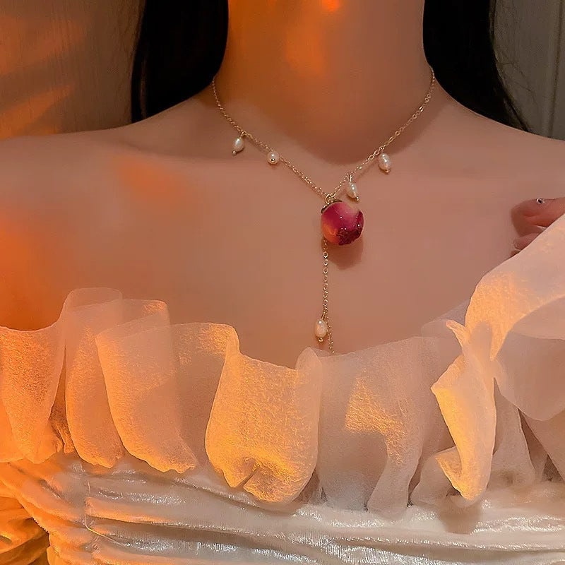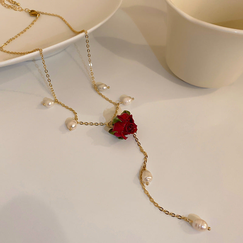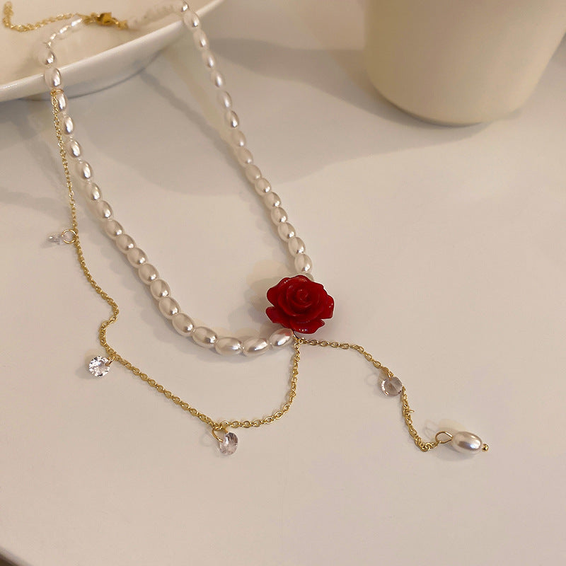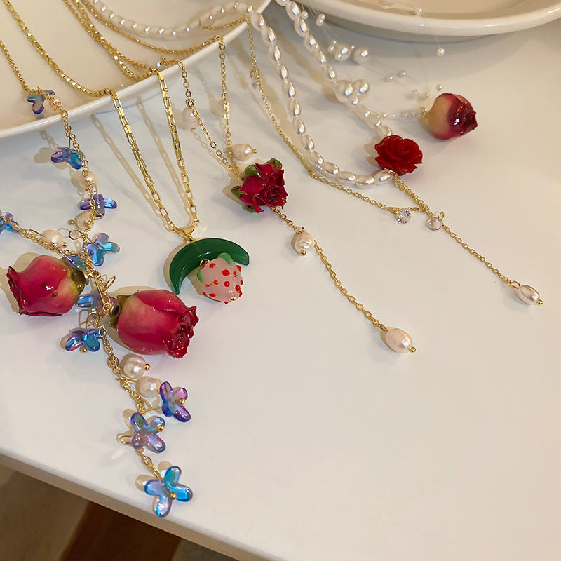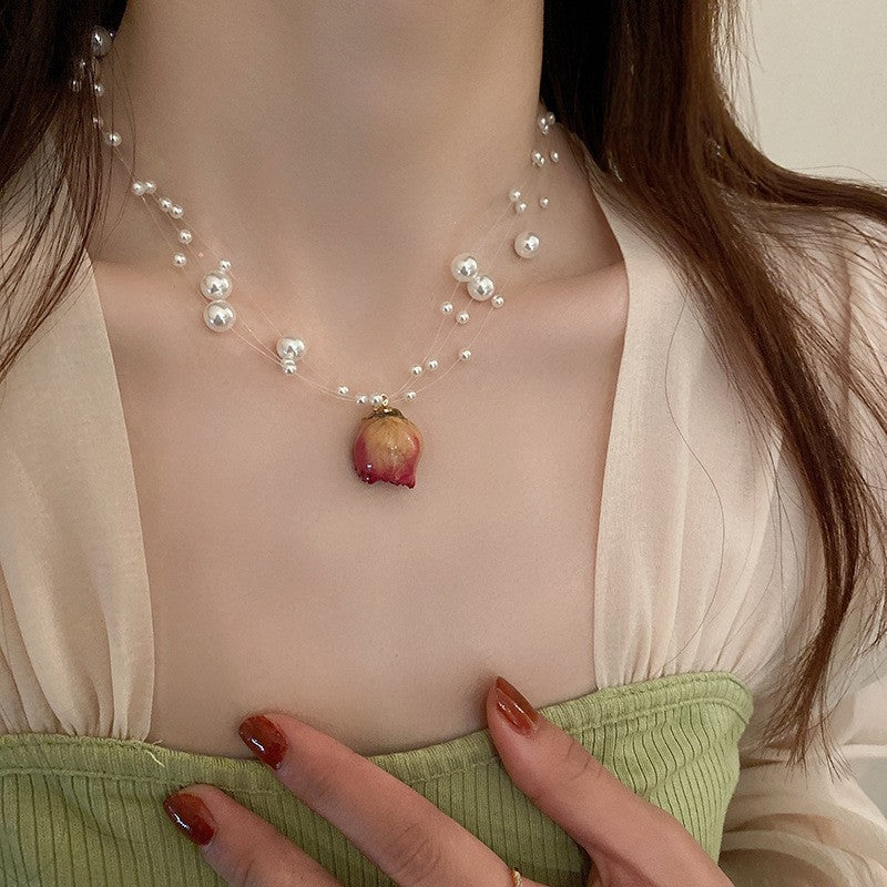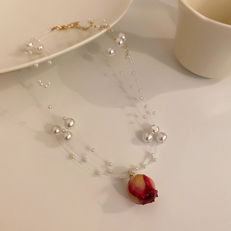 法式復古永生花朵多層珍珠項鍊韓國時尚設計鎖骨鏈新款氣質項飾女