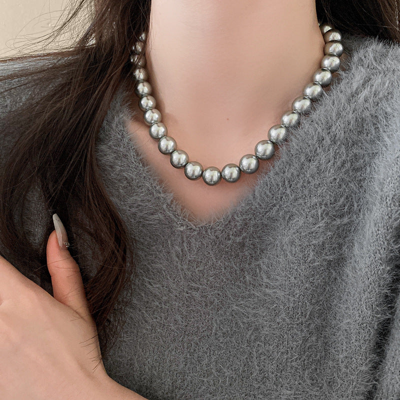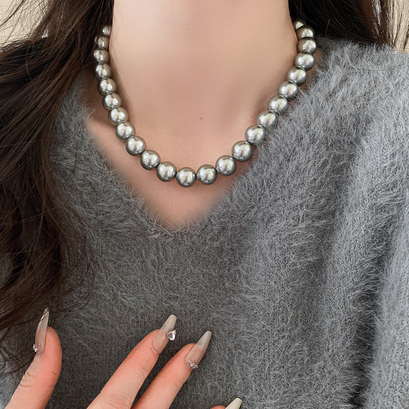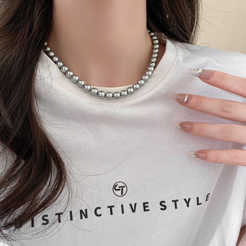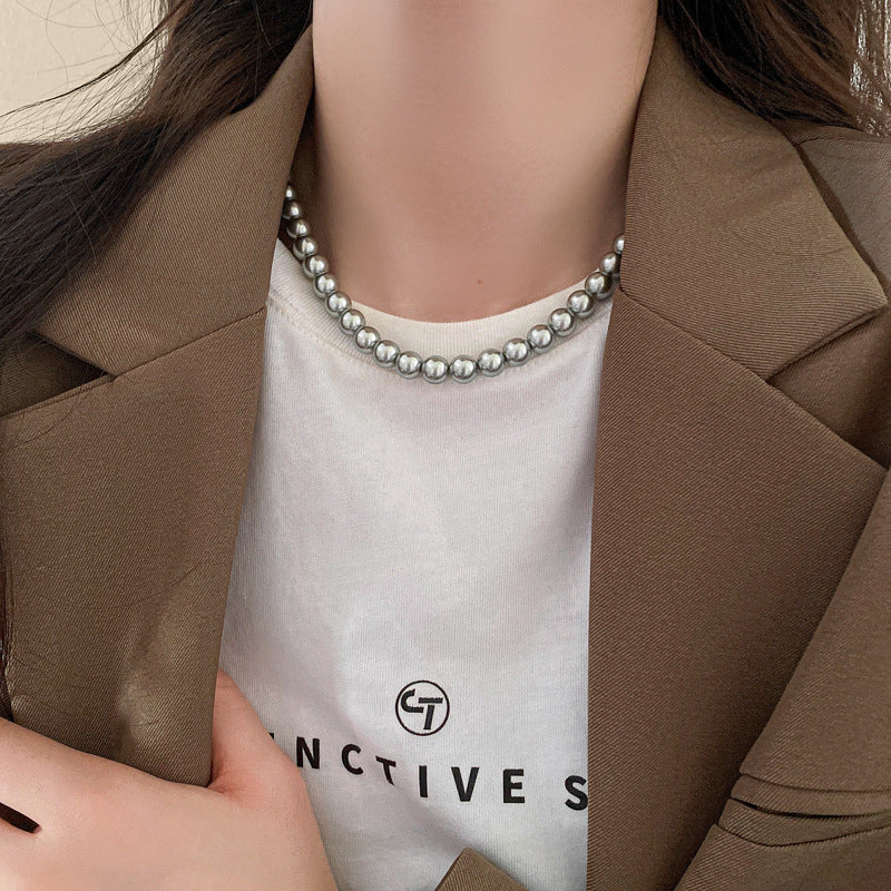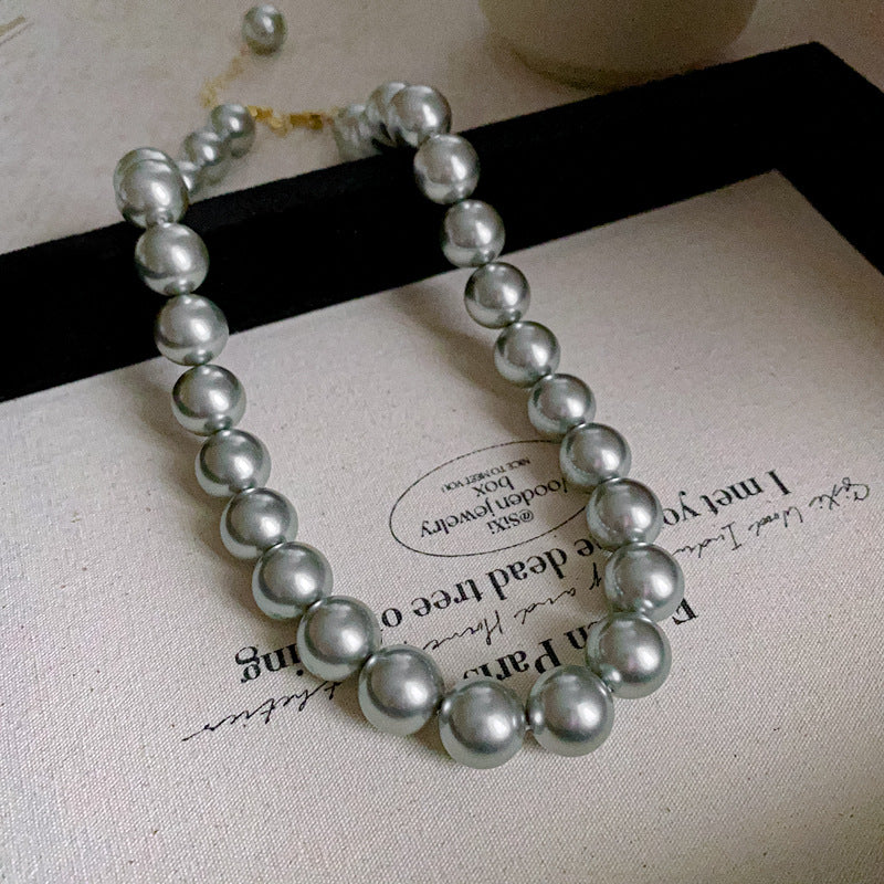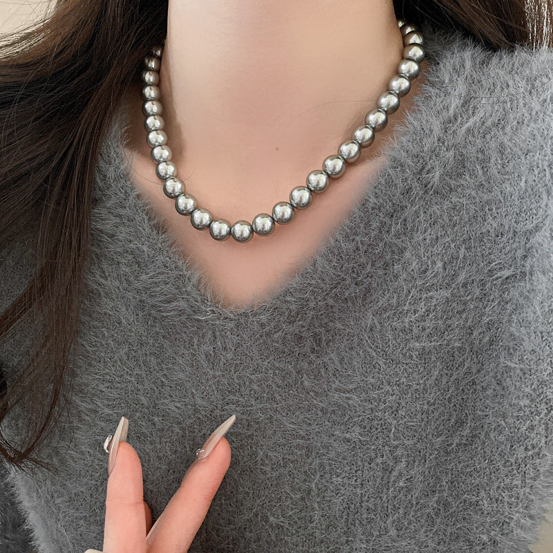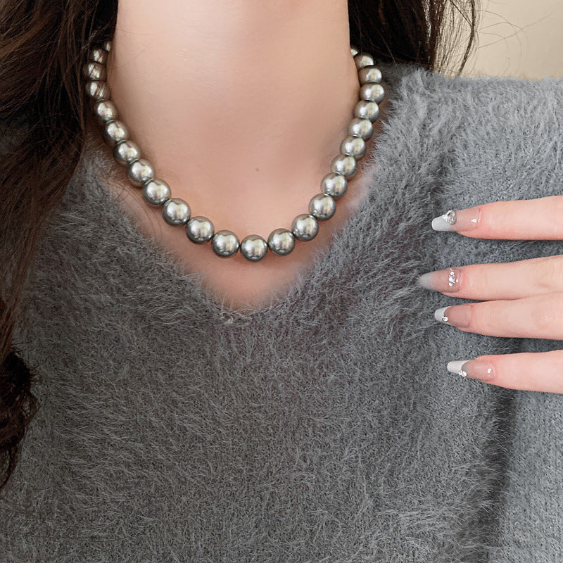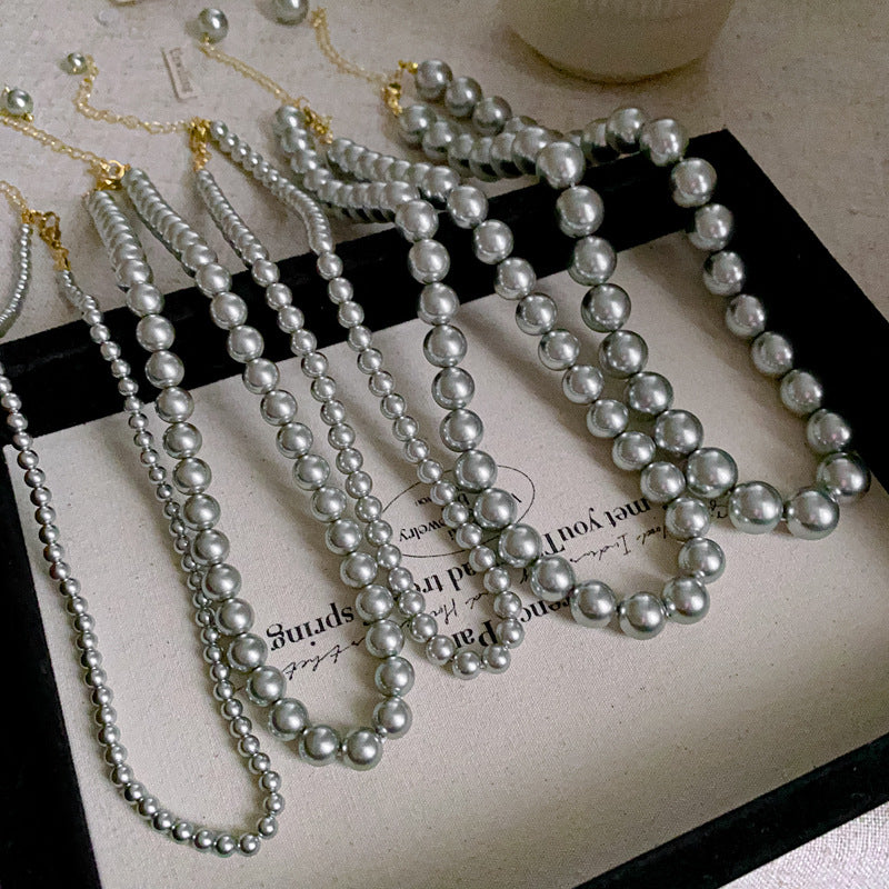 法式復古灰色珍珠項鍊小衆簡約設計感鎖骨鏈氣質輕奢高級感項飾女