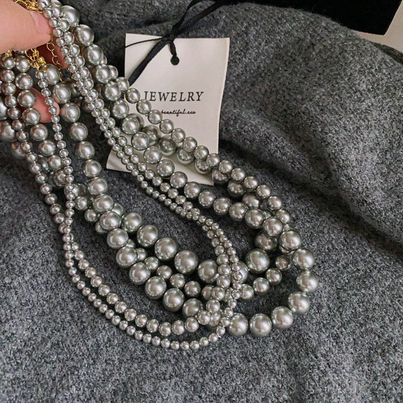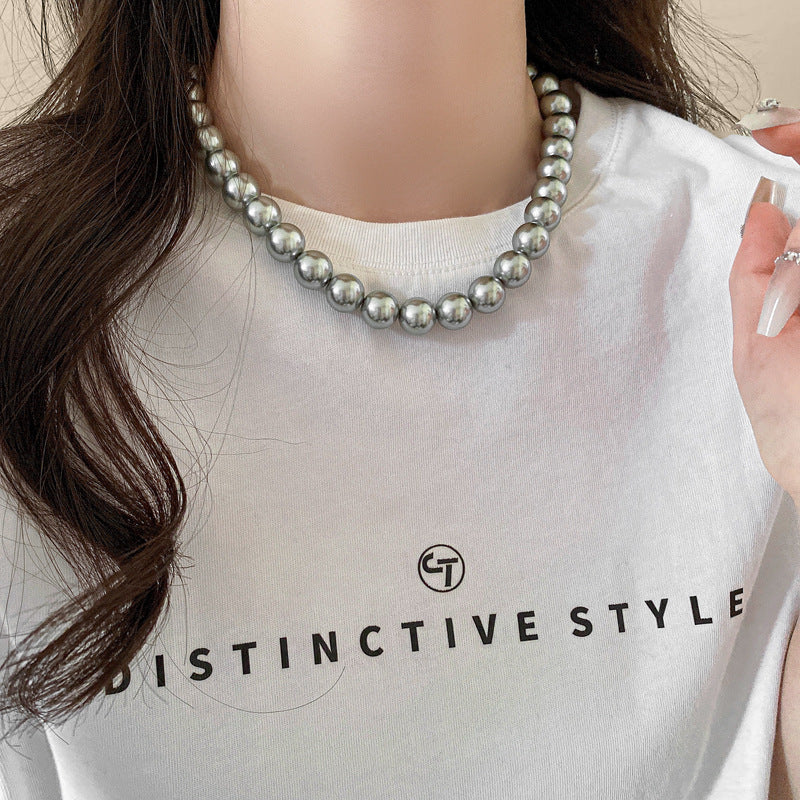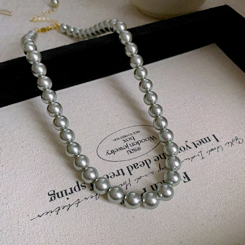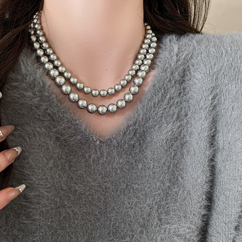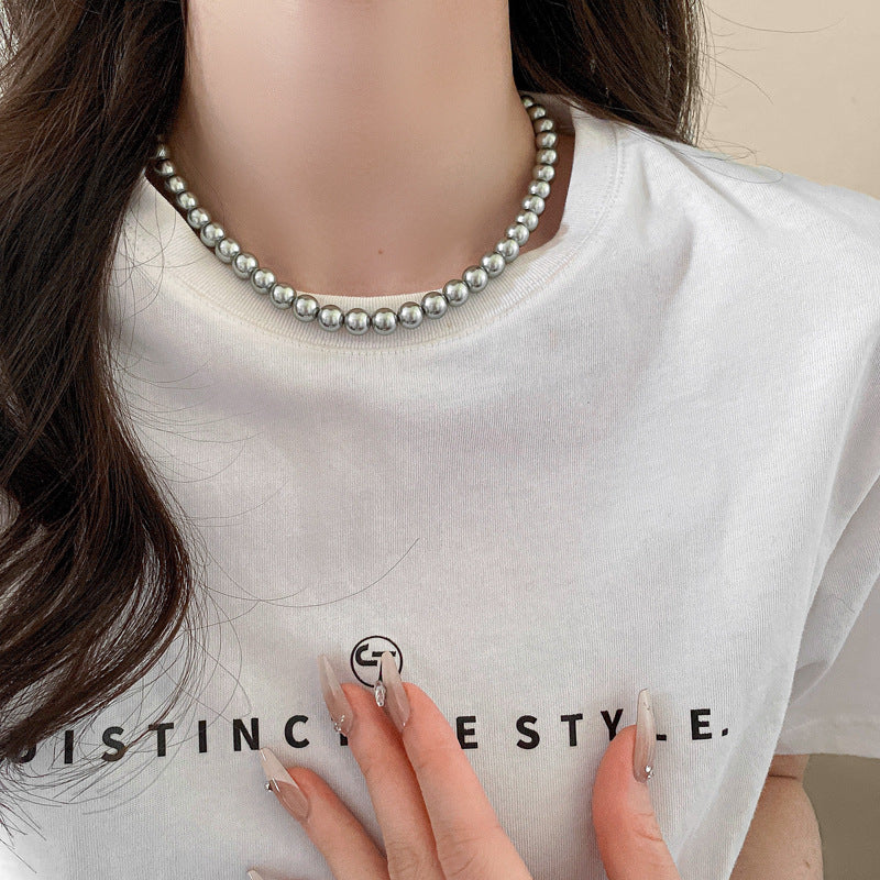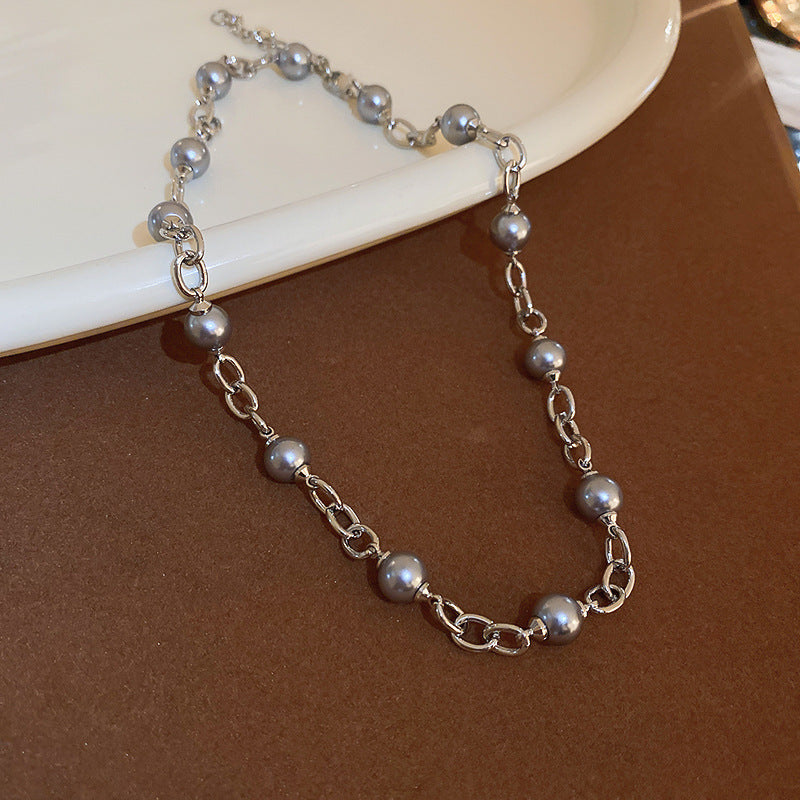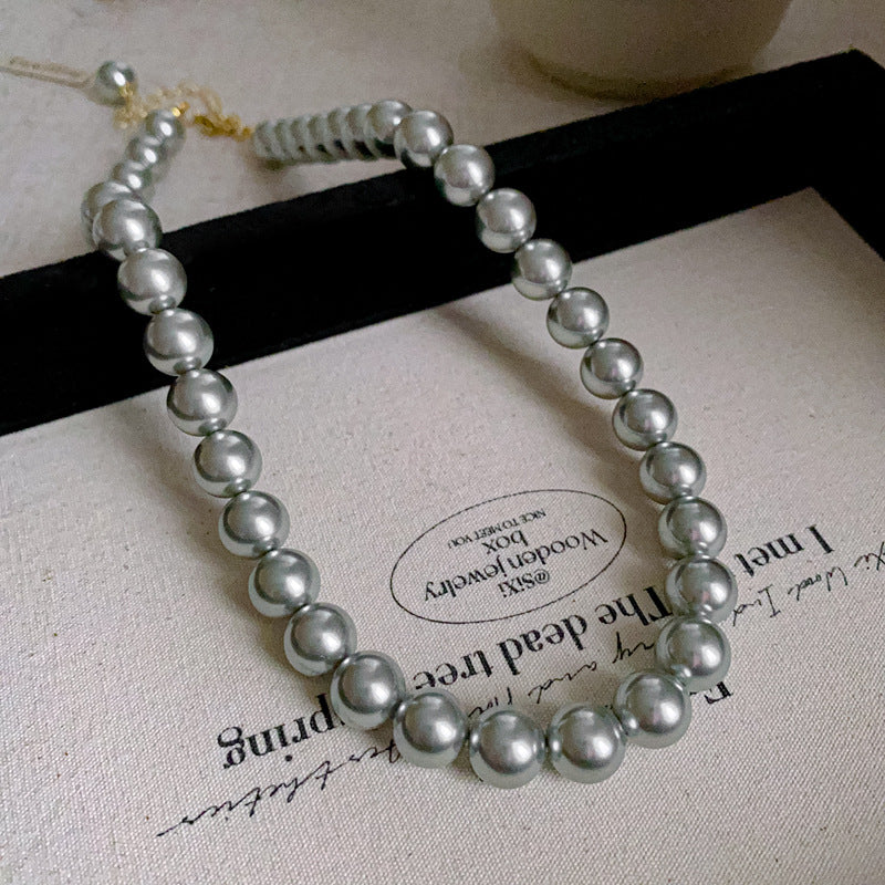 法式復古灰色珍珠項鍊小衆簡約設計感鎖骨鏈氣質輕奢高級感項飾女