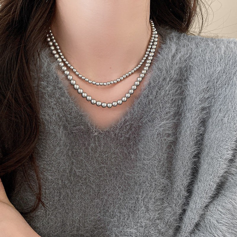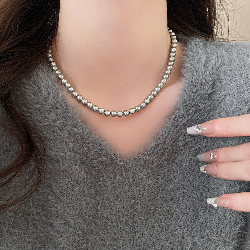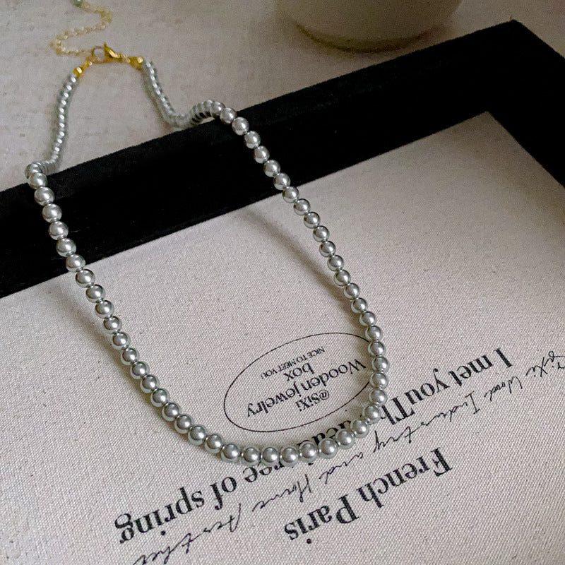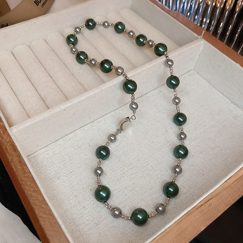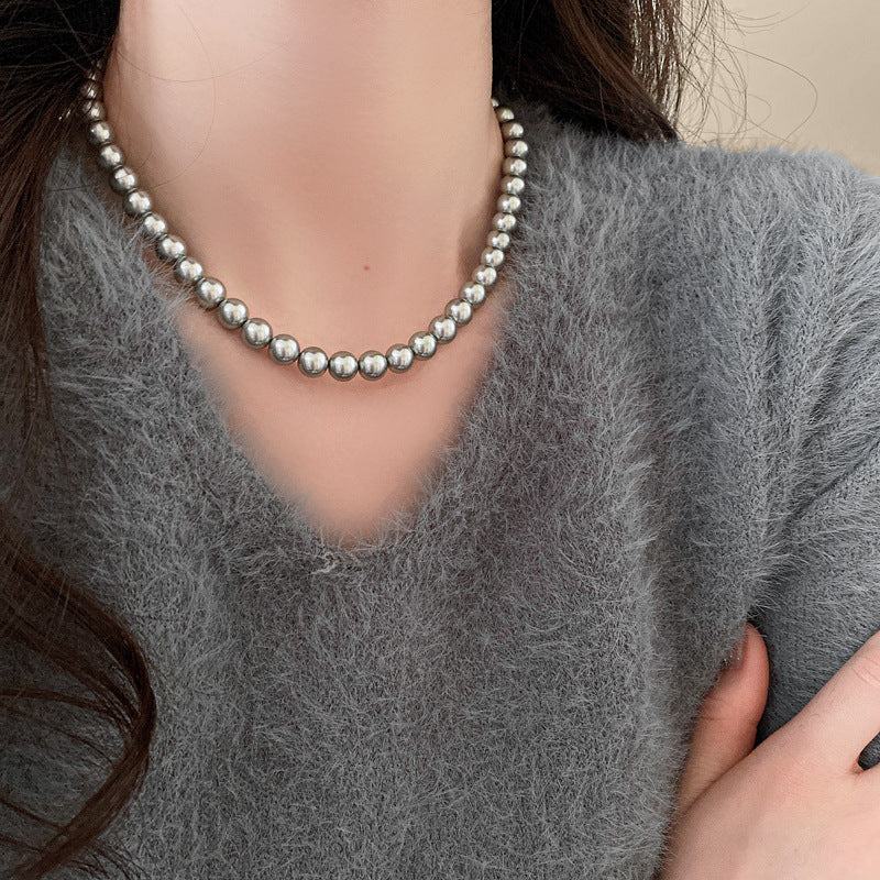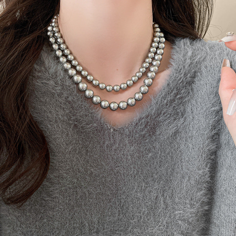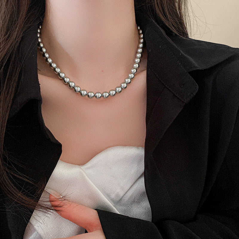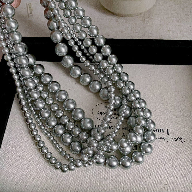 法式復古灰色珍珠項鍊小衆簡約設計感鎖骨鏈氣質輕奢高級感項飾女