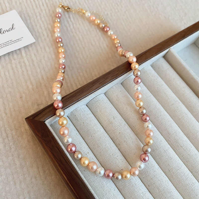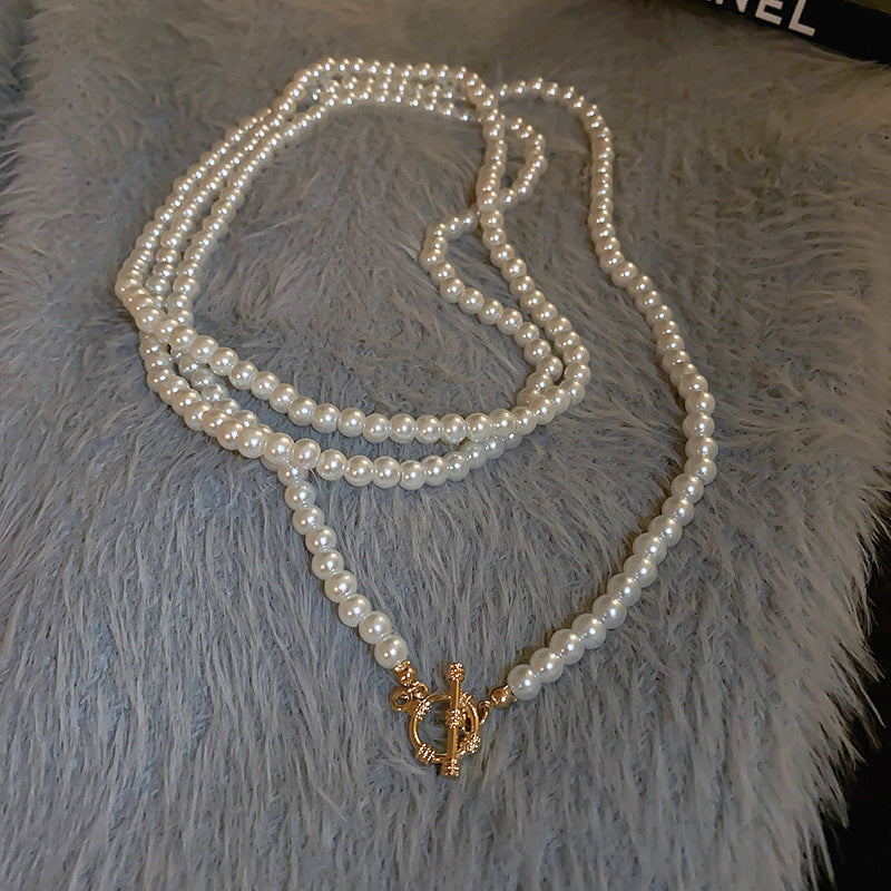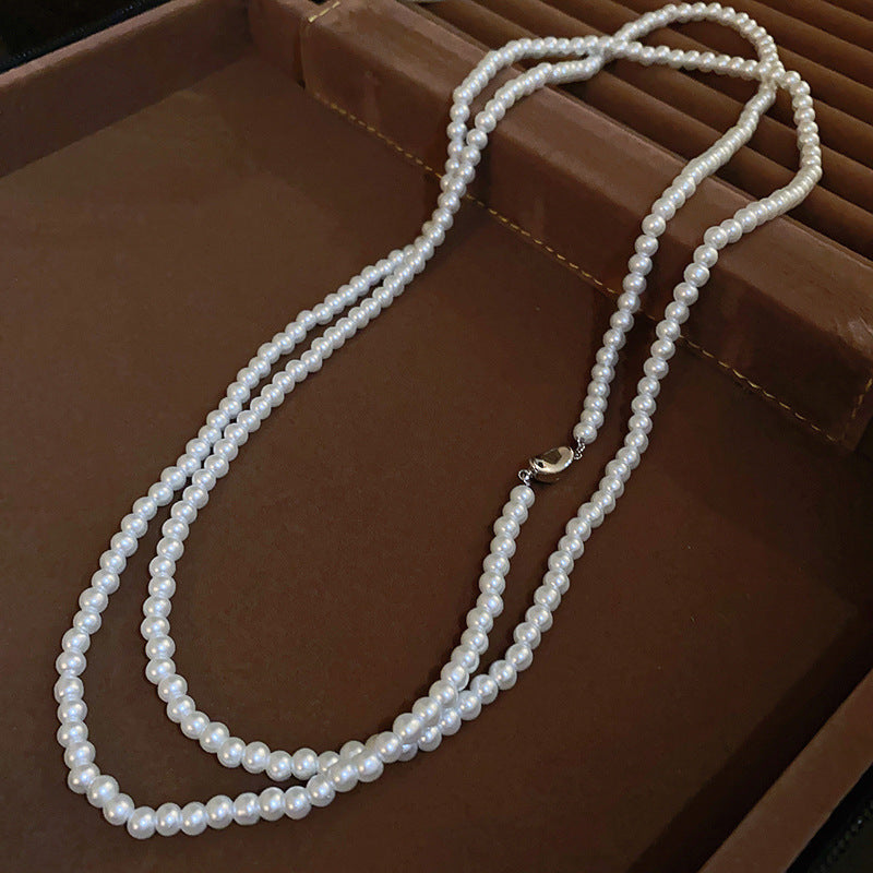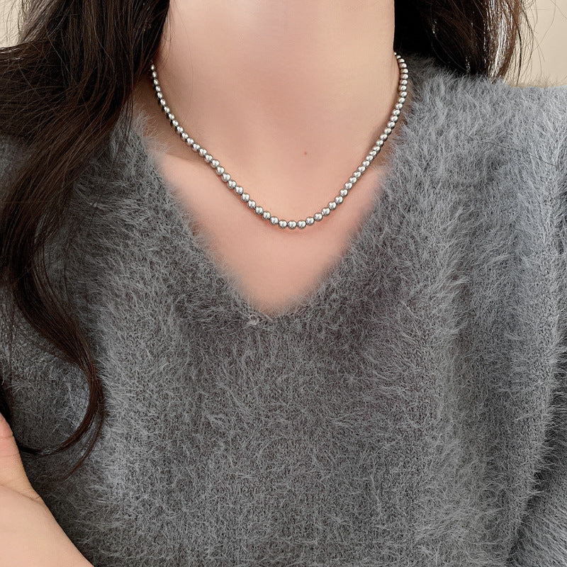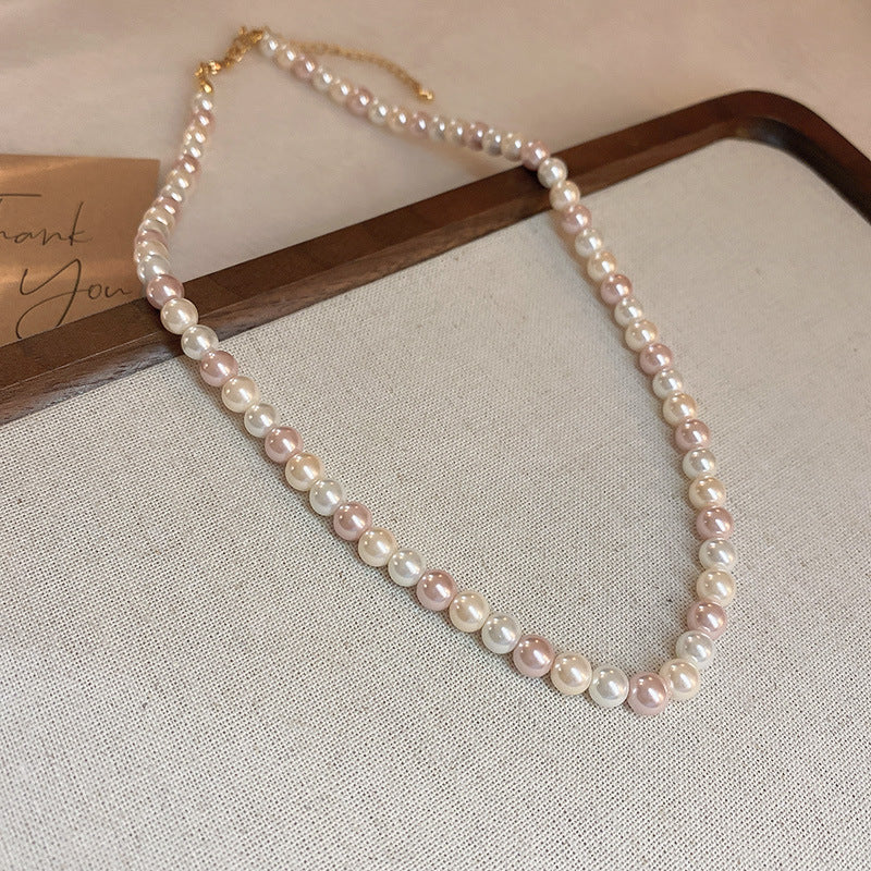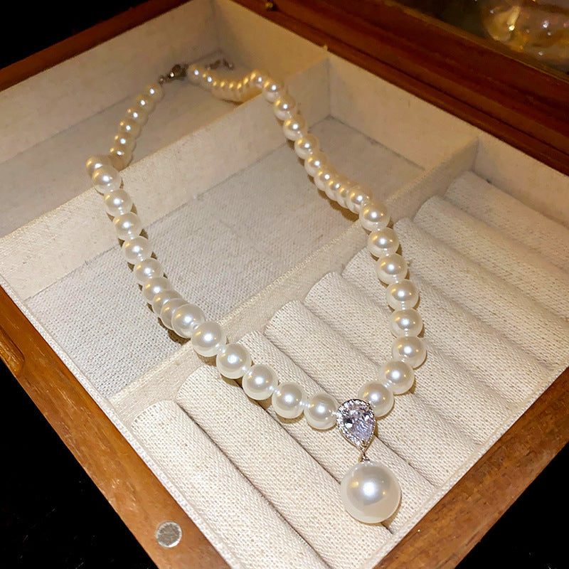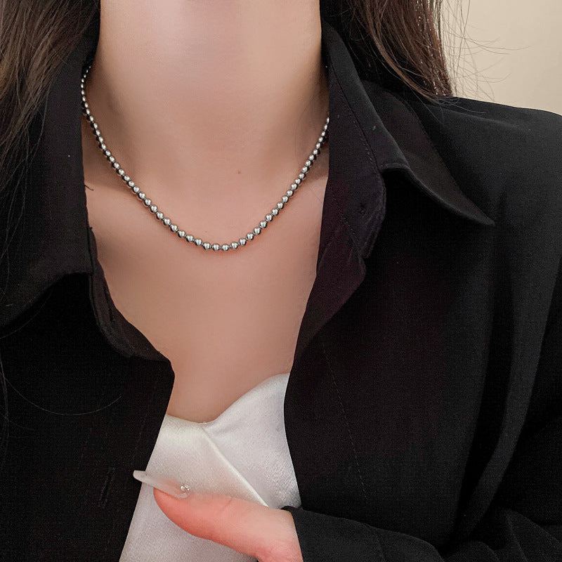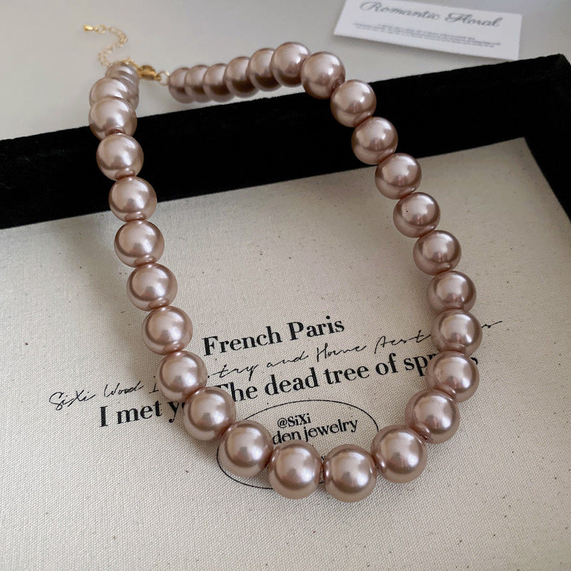 法式復古灰色珍珠項鍊小衆簡約設計感鎖骨鏈氣質輕奢高級感項飾女