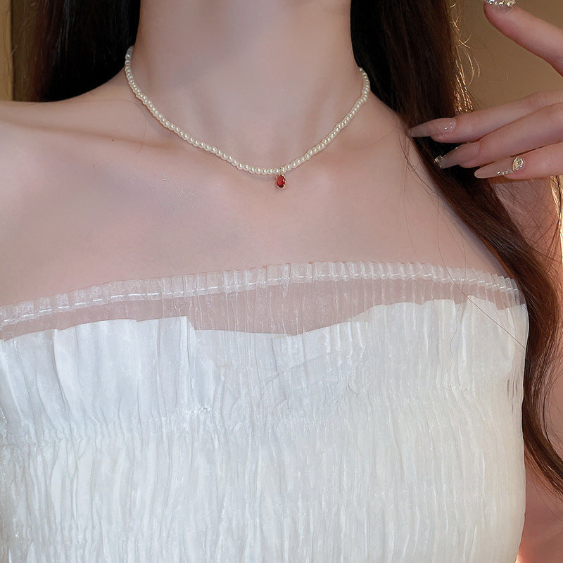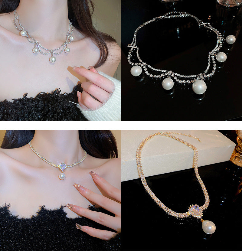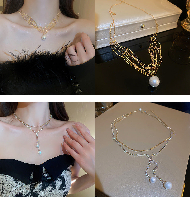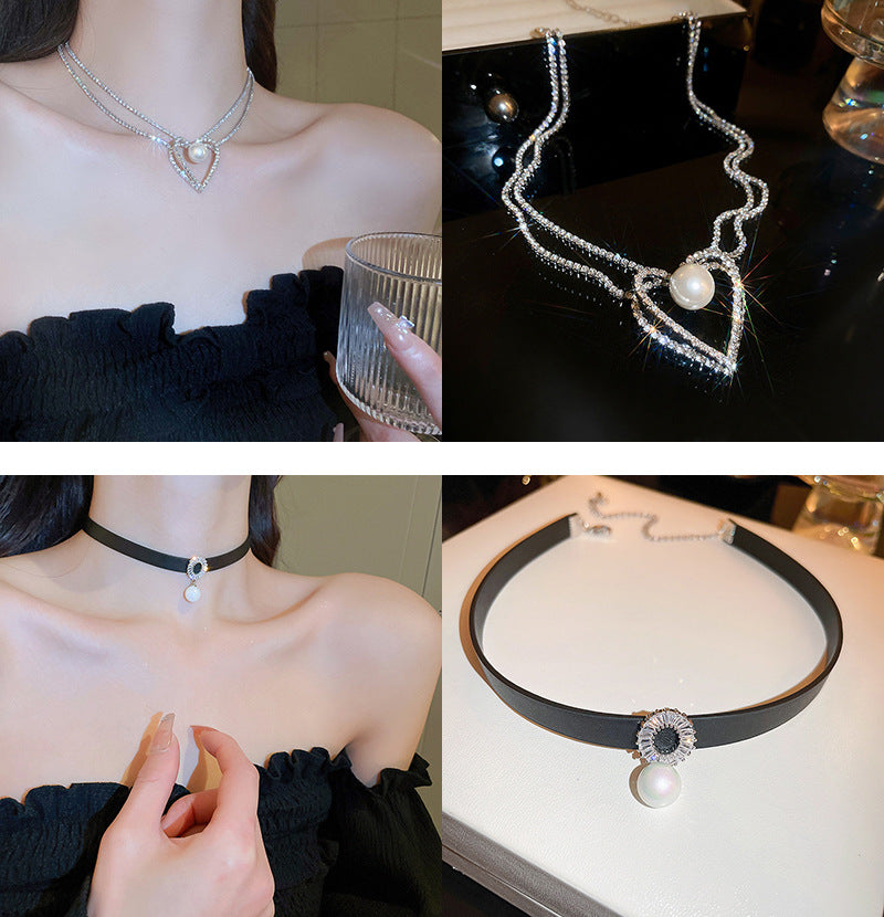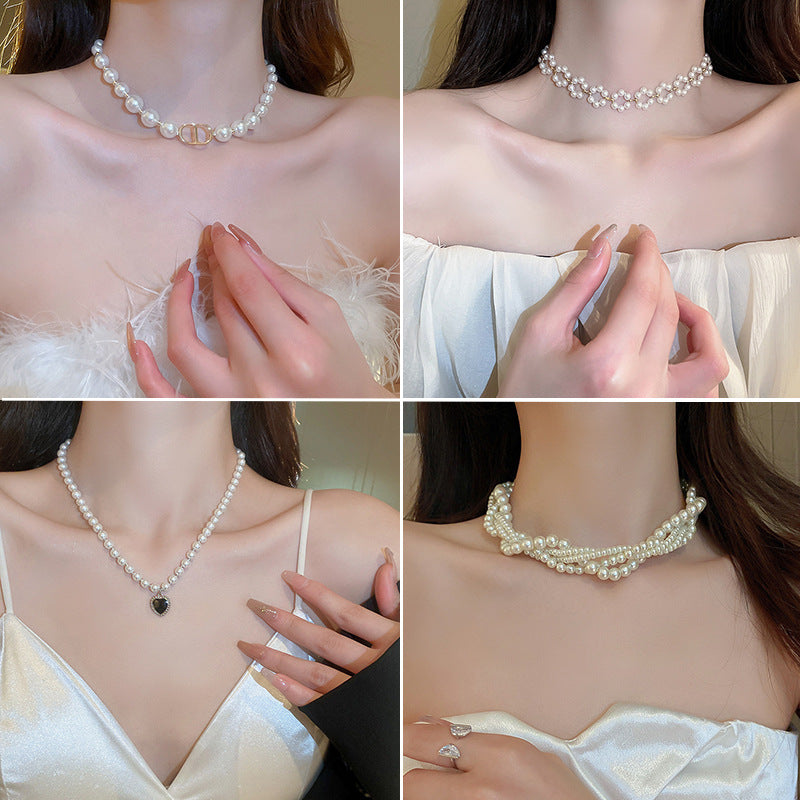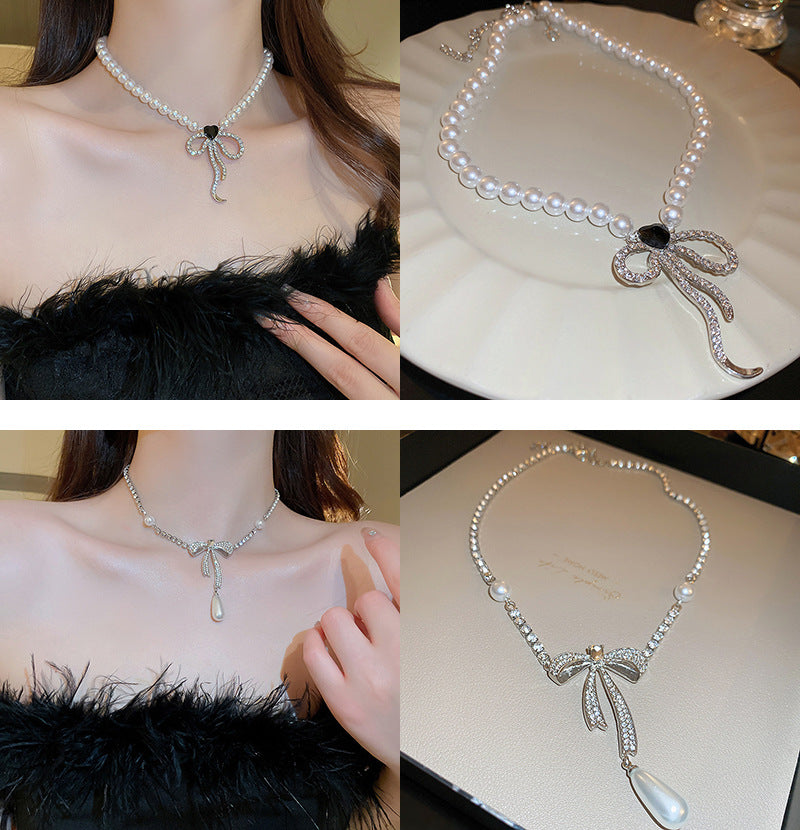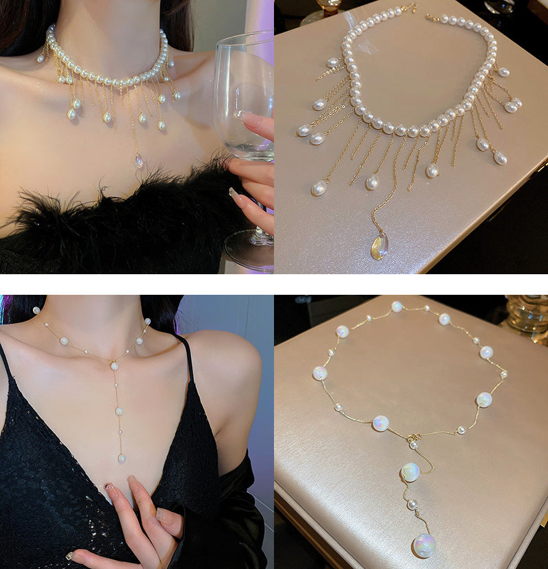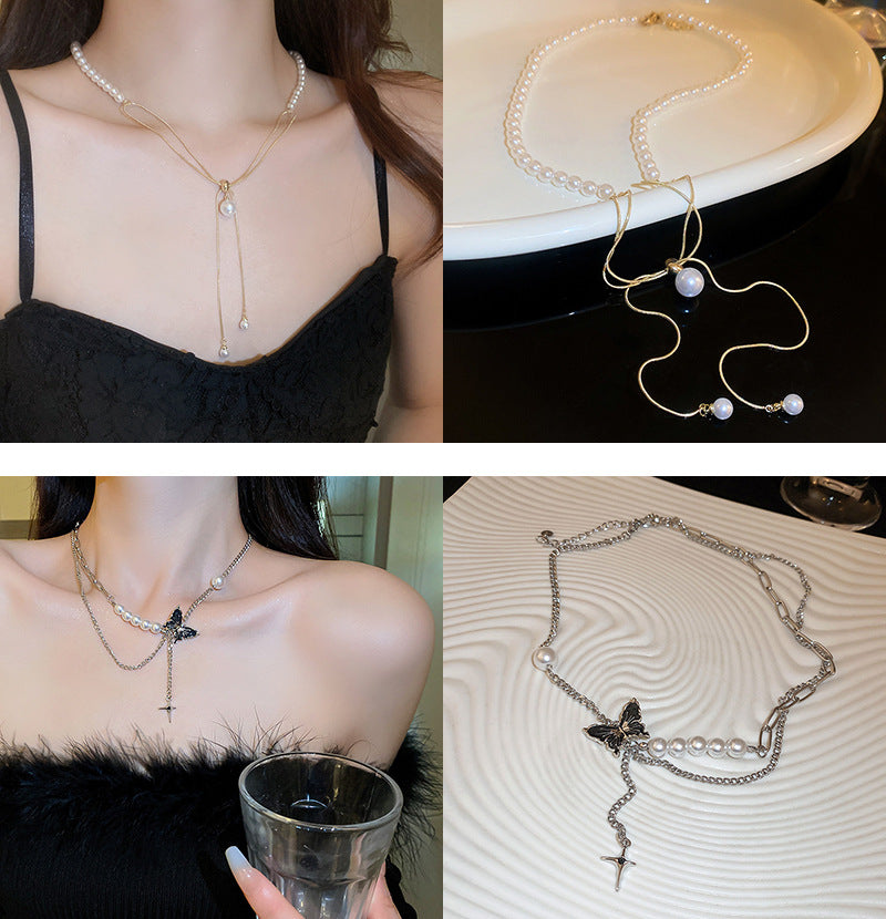 法式復古蝴蝶愛心珍珠流蘇項鍊輕奢個性鎖骨鏈氣質高級感百搭項飾
