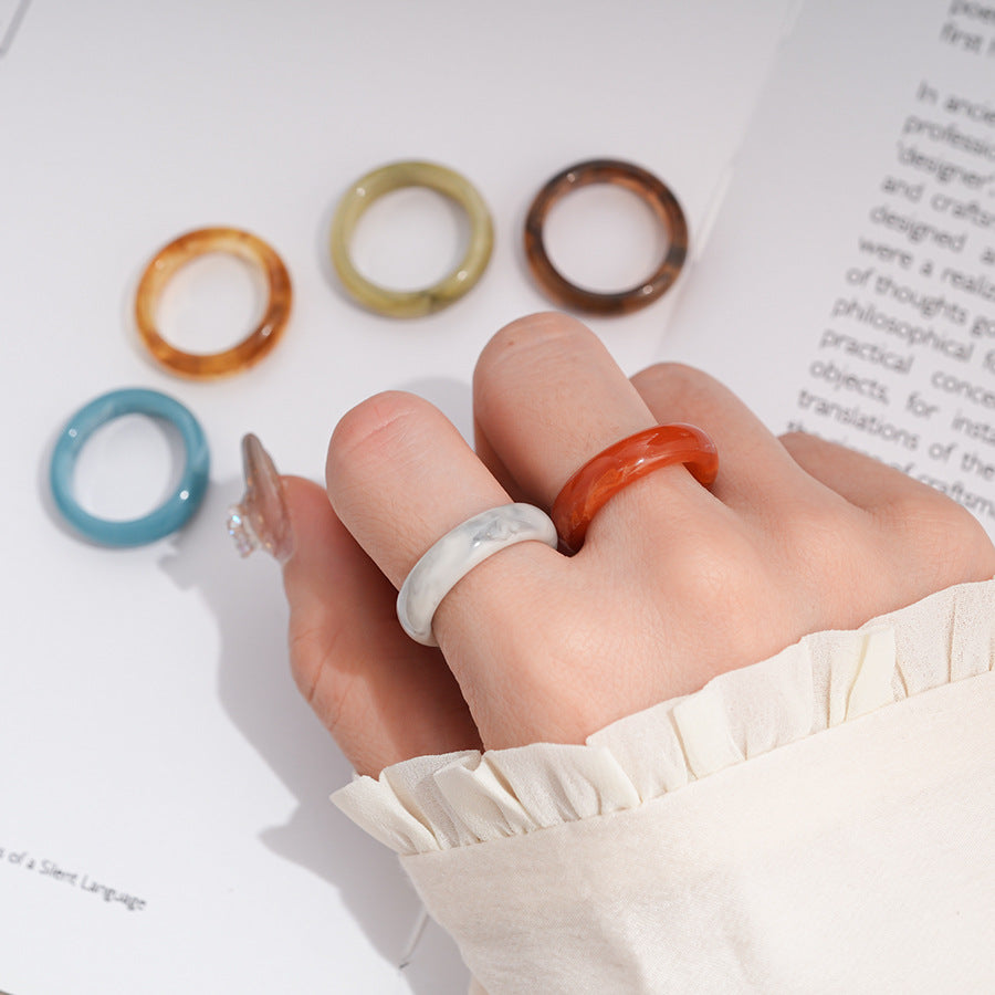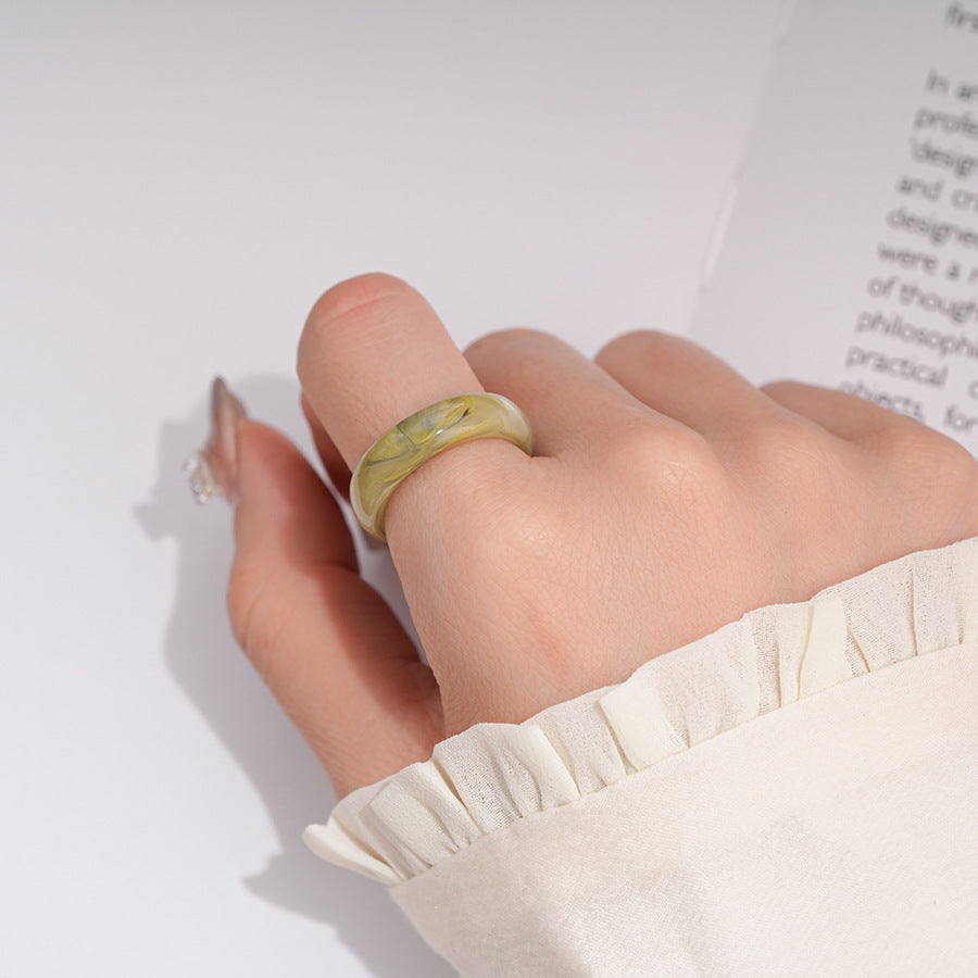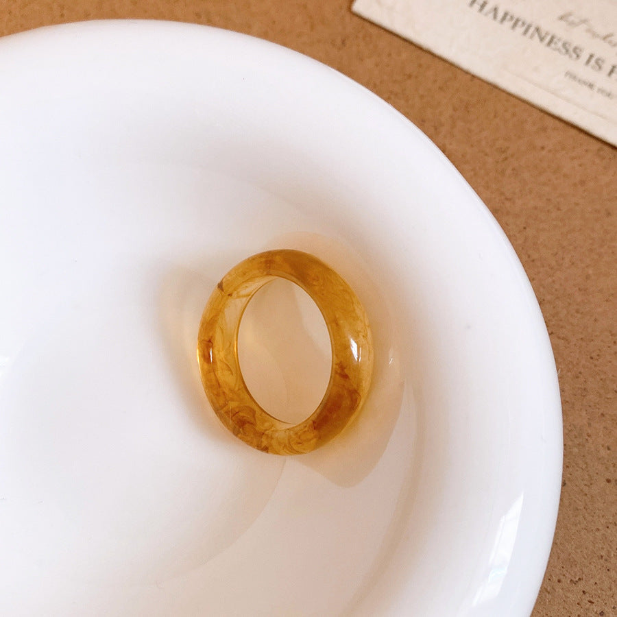 法式簡約圓形暈染樹脂戒指輕奢高級感時尚食指戒設計感小衆手飾女