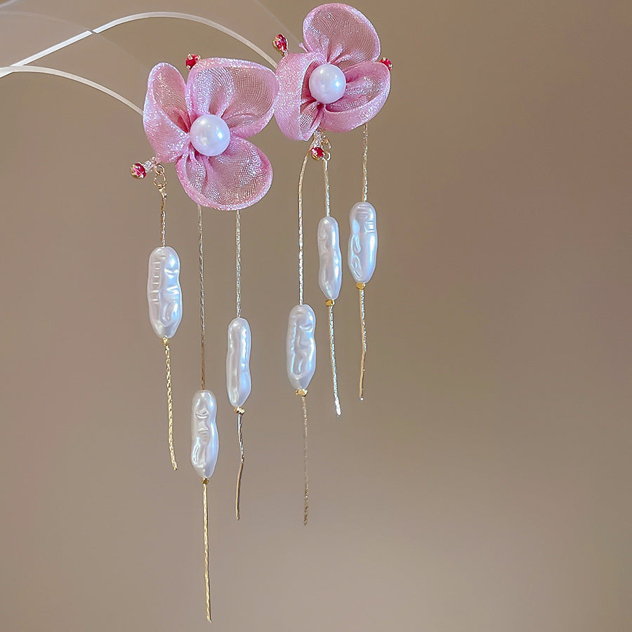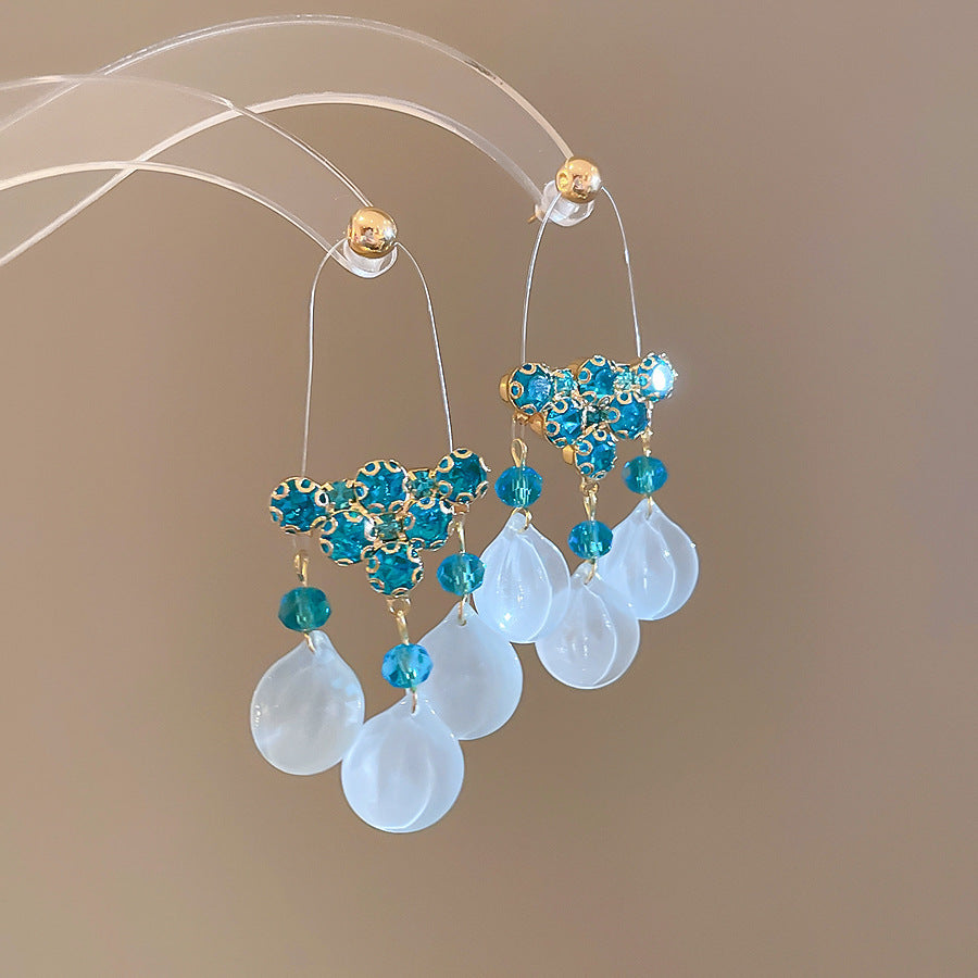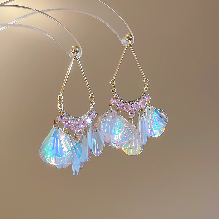法式超仙花瓣貝殼流蘇耳環輕奢高級感耳釘時尚氣質耳飾設計感小衆