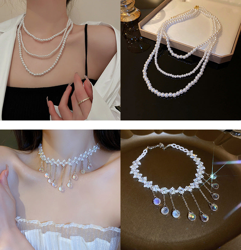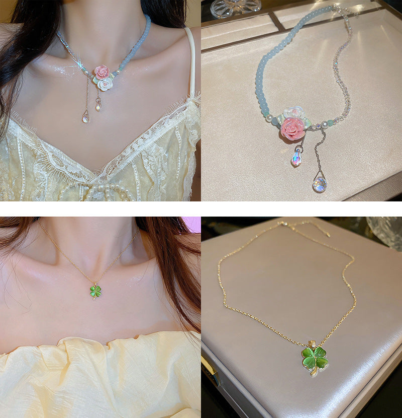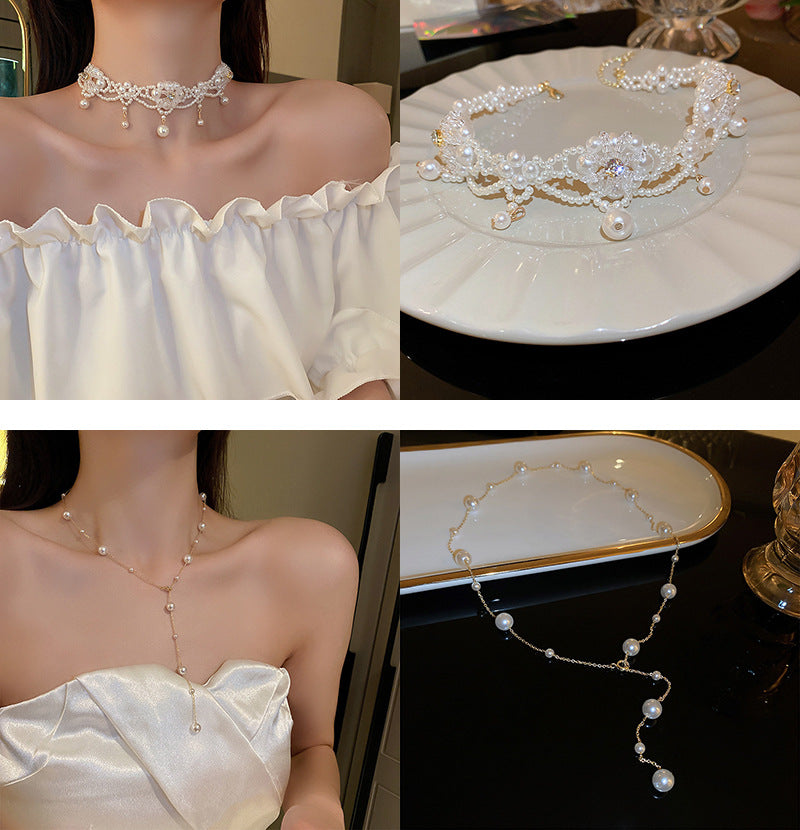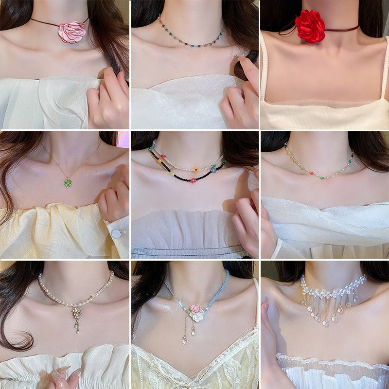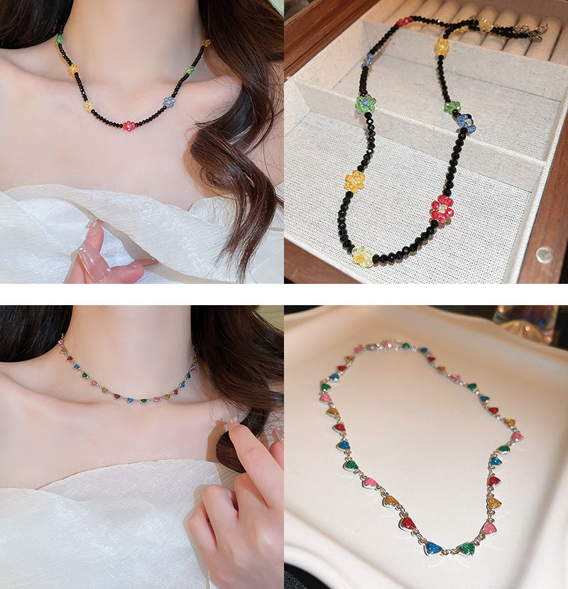 波西米亞度假風彩色珍珠串珠花朵項鍊時尚簡約鎖骨鏈設計感項飾女