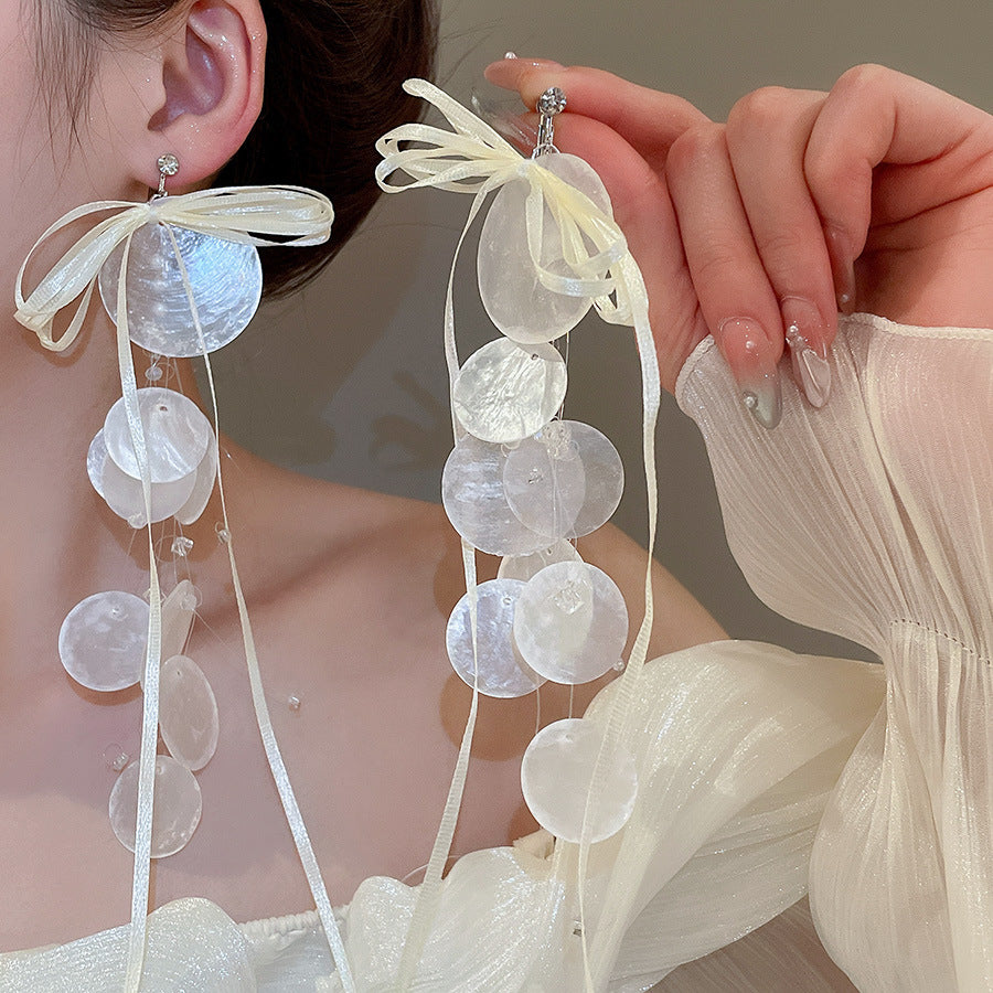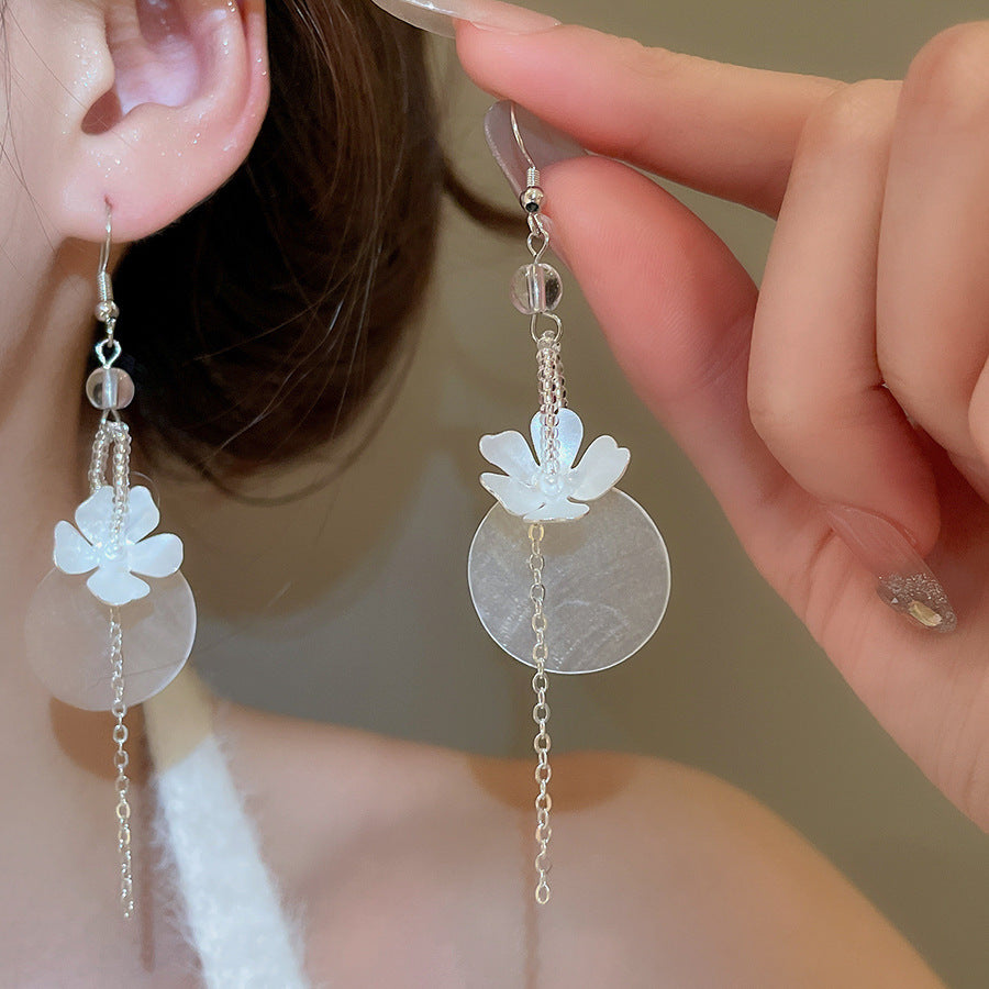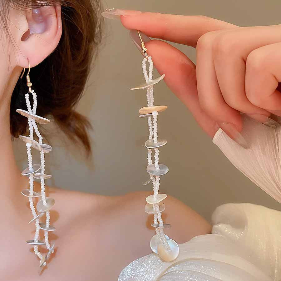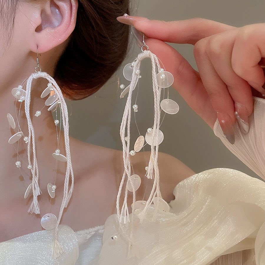 海邊度假風花朵貝殼流蘇長款耳環輕奢高級感耳釘女耳飾設計感小衆
