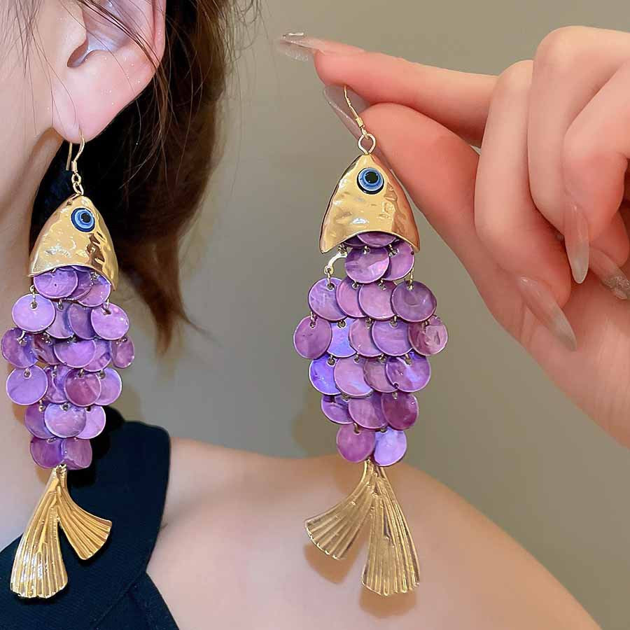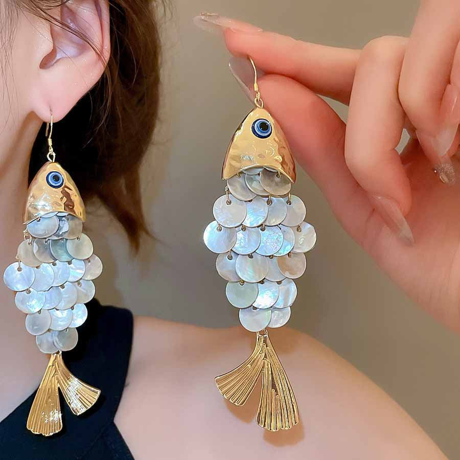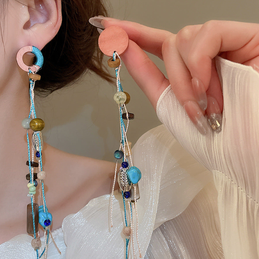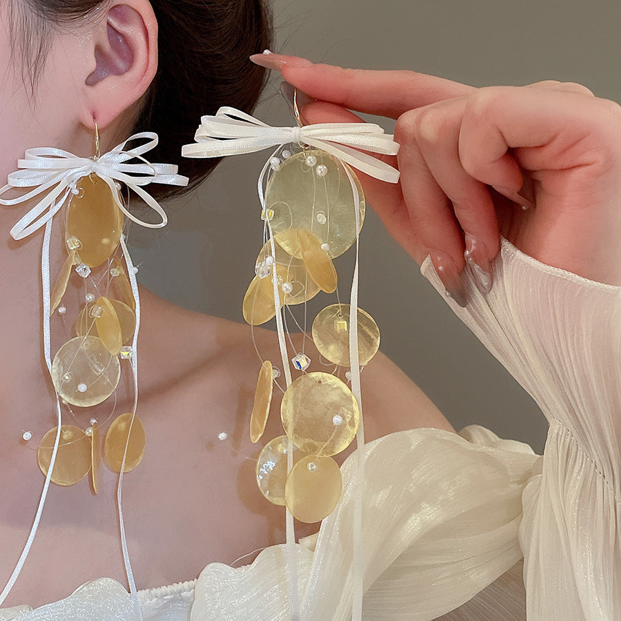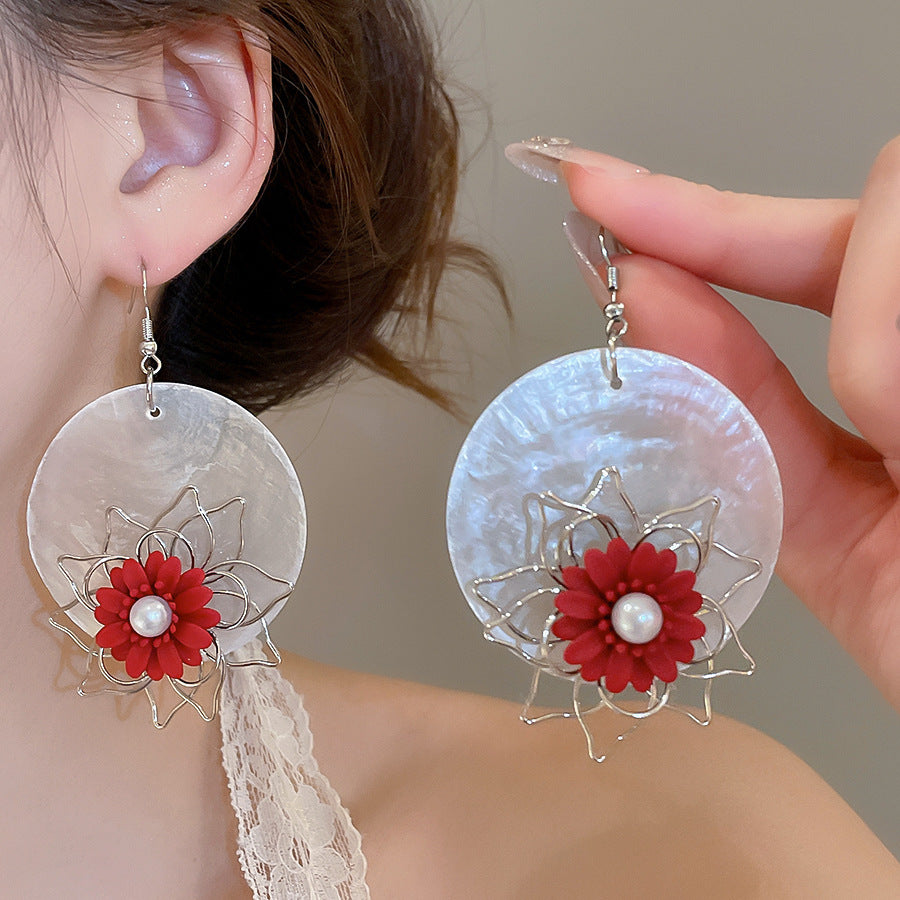 海邊度假風花朵貝殼流蘇長款耳環輕奢高級感耳釘女耳飾設計感小衆