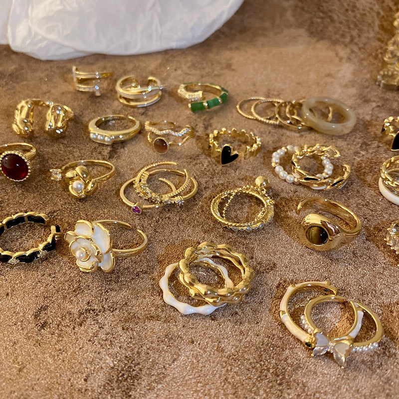 顏色: 4#開口戒指-金色鋯石雙層(真金電鍍)