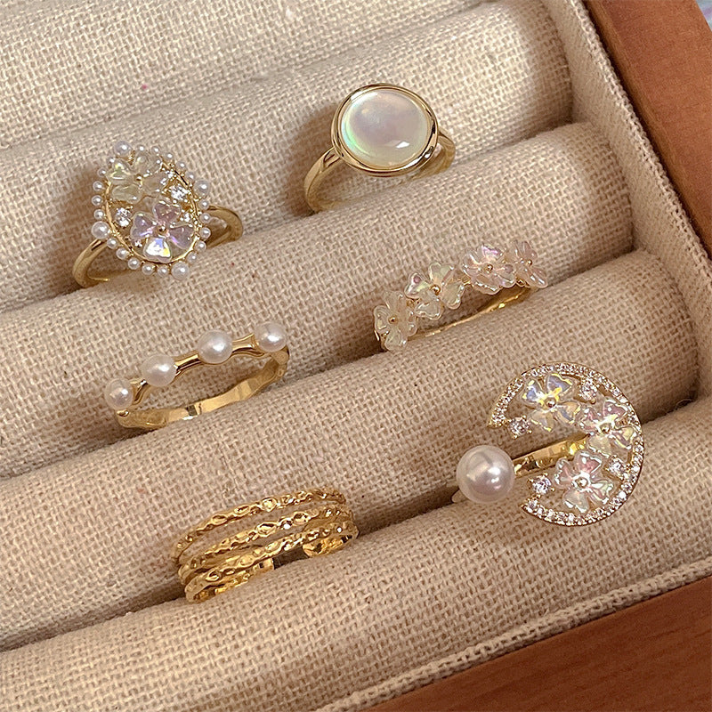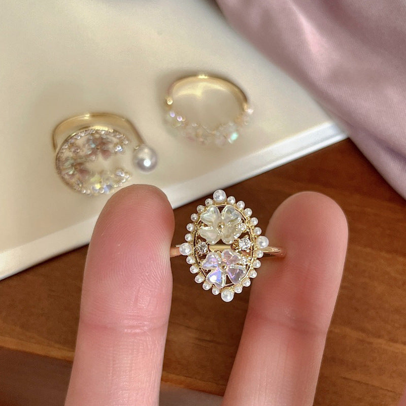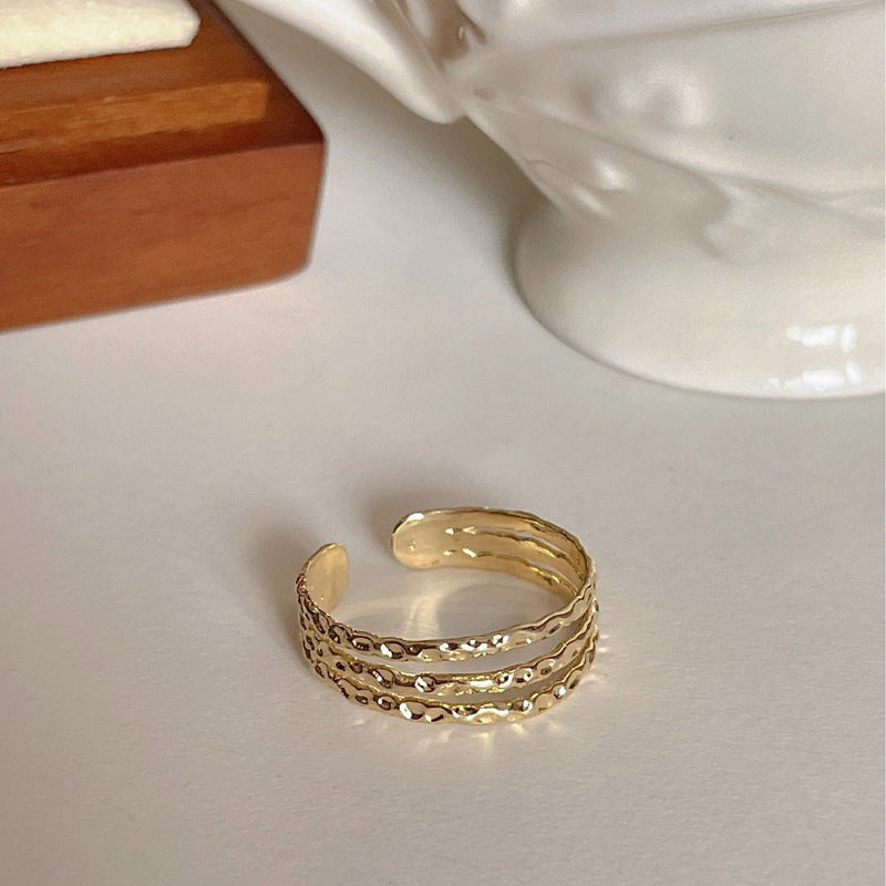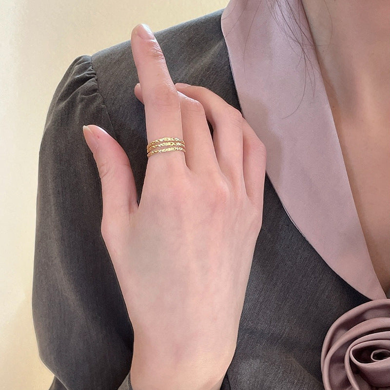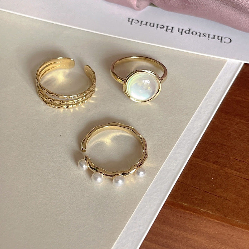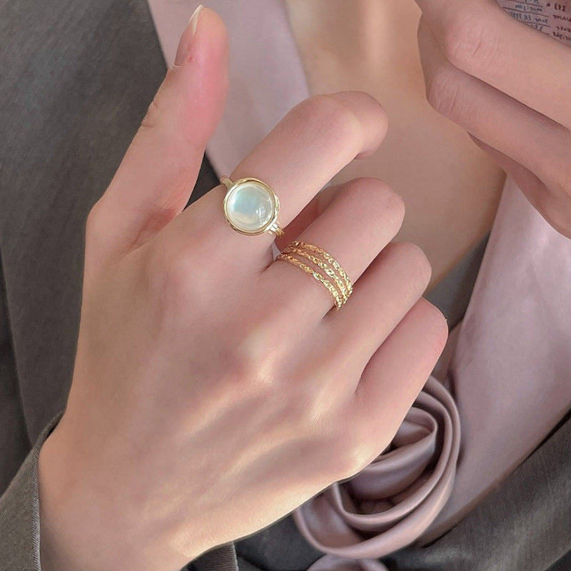 真金電鍍珍珠幾何開口戒指時尚氣質小衆設計感指環ins復古手飾女