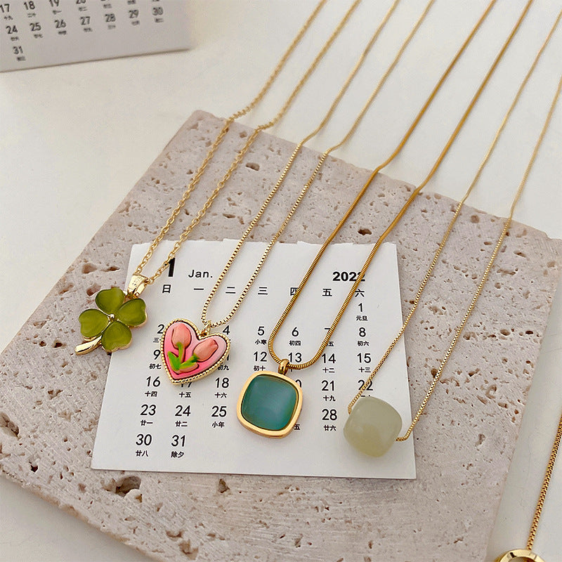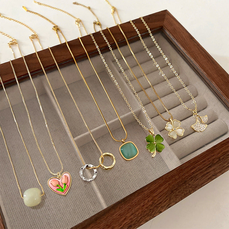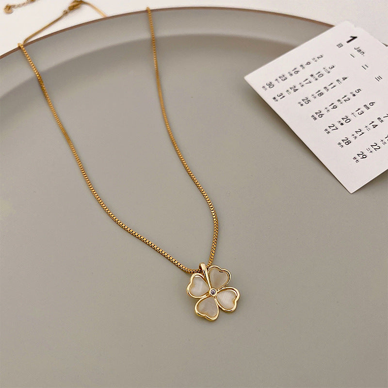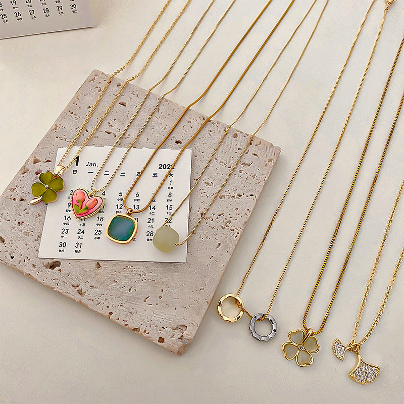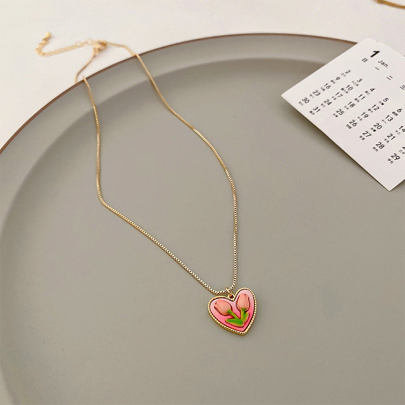 真金電鍍花朵愛心項鍊小清新時尚氣質鎖骨鏈項墜甜美新款ins項飾