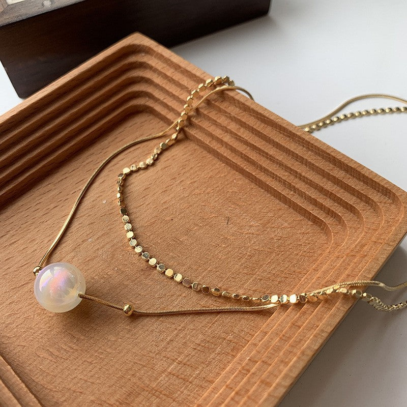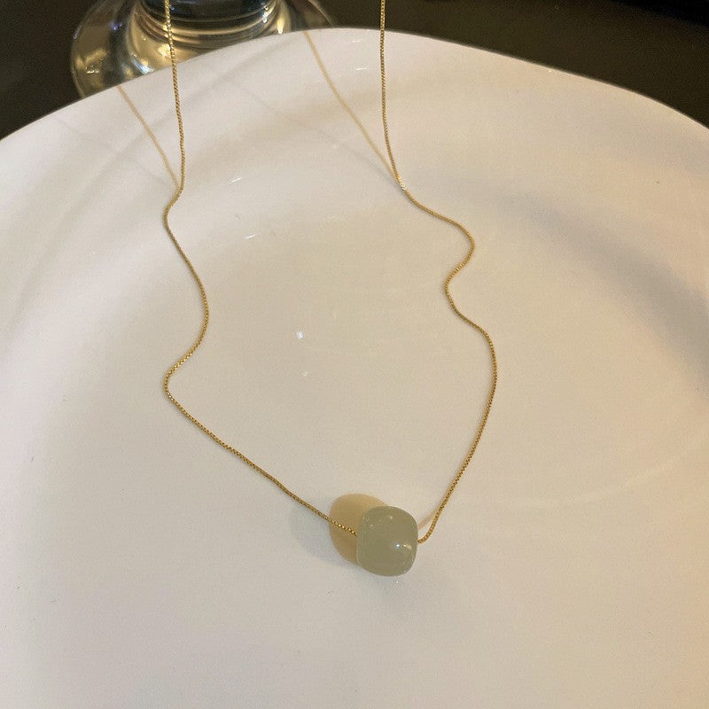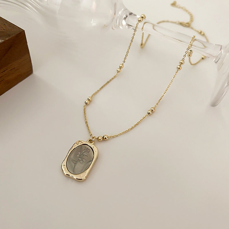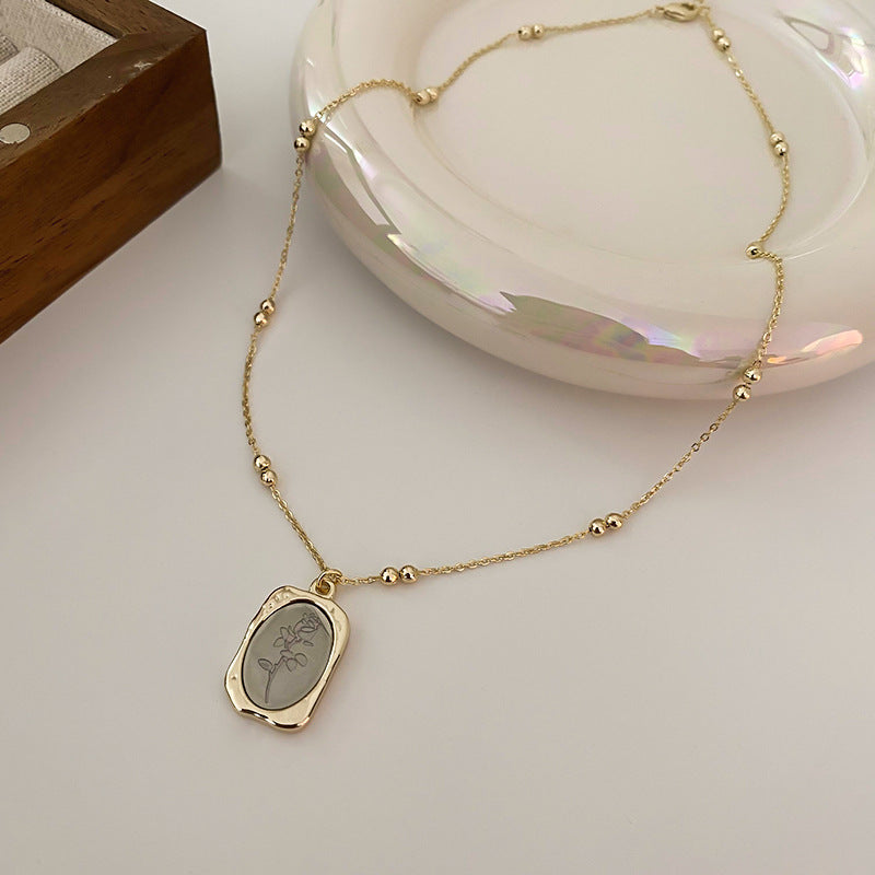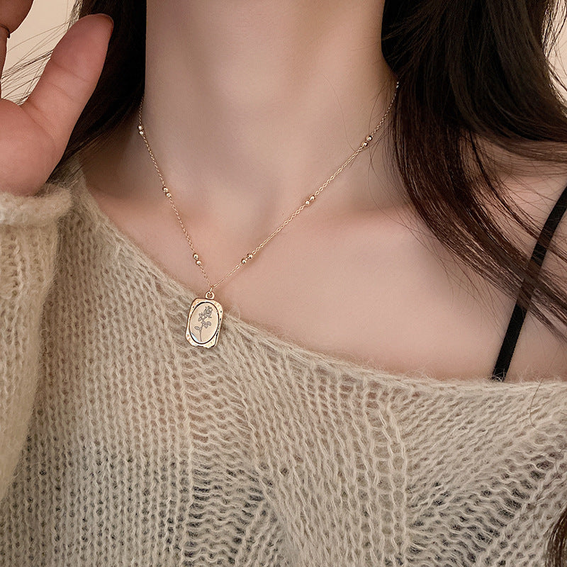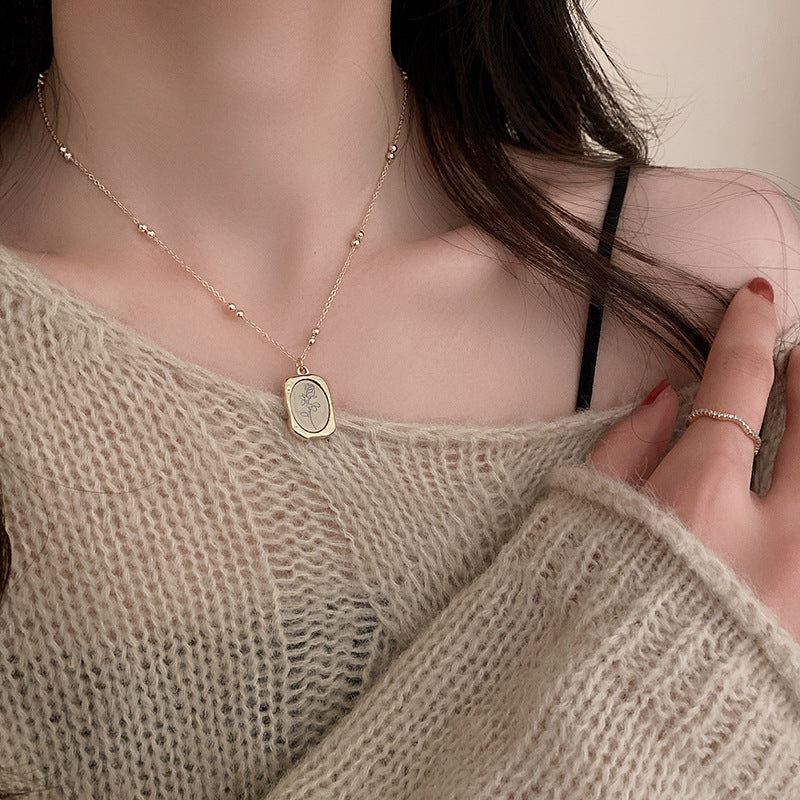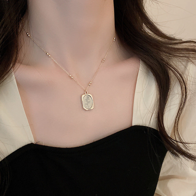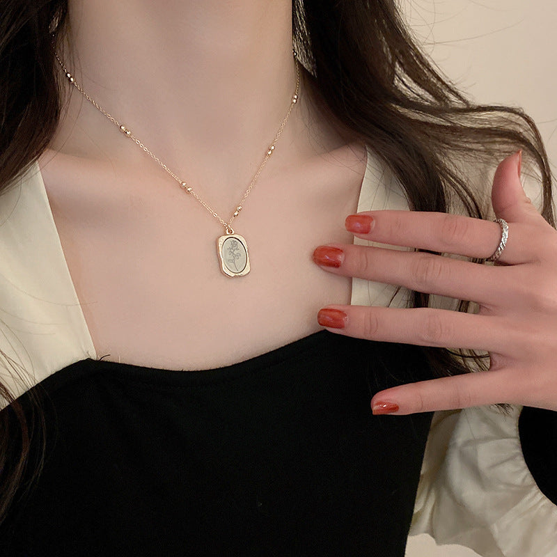 真金電鍍花朵方牌項鍊韓國時尚設計感鎖骨鏈個性冷淡ins風項飾女