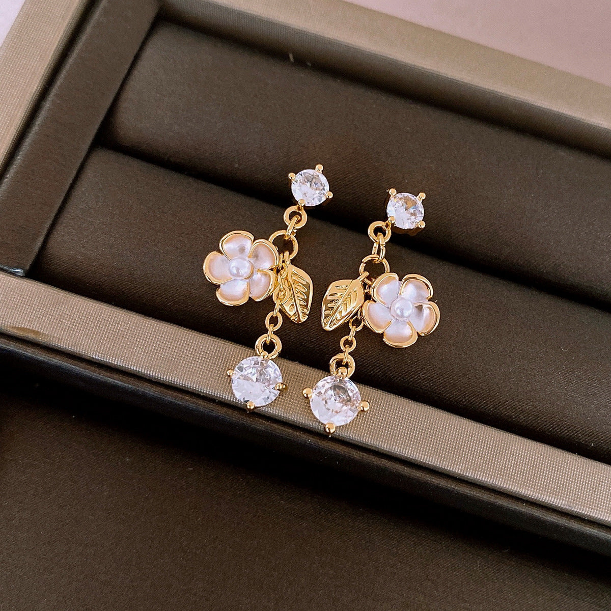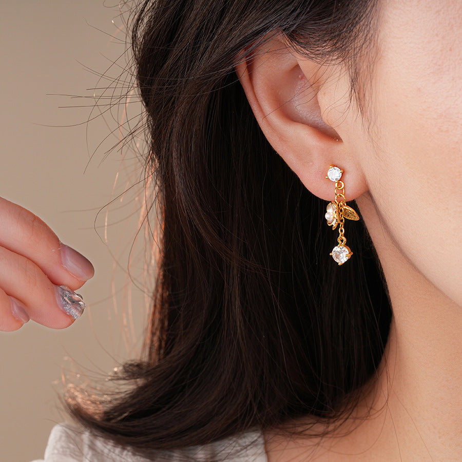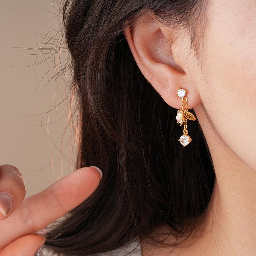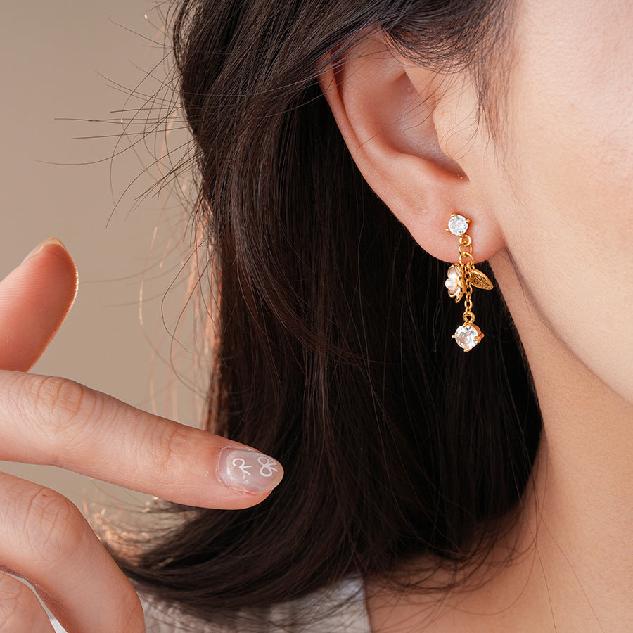 真金電鍍蚊香盤鋯石珍珠花朵流蘇耳夾小衆新中式耳環氣質百搭耳飾