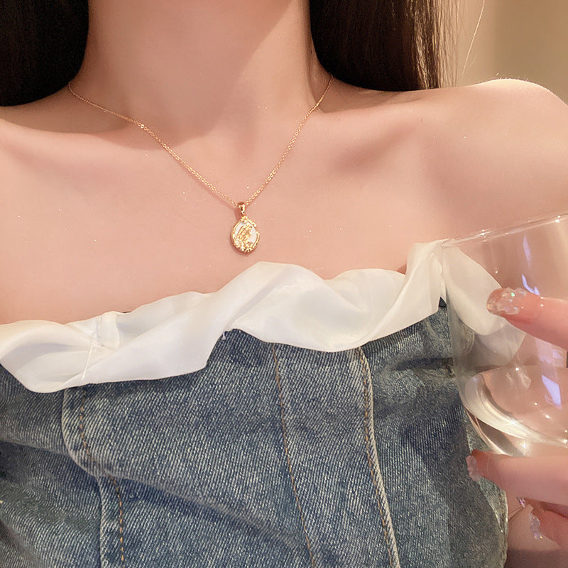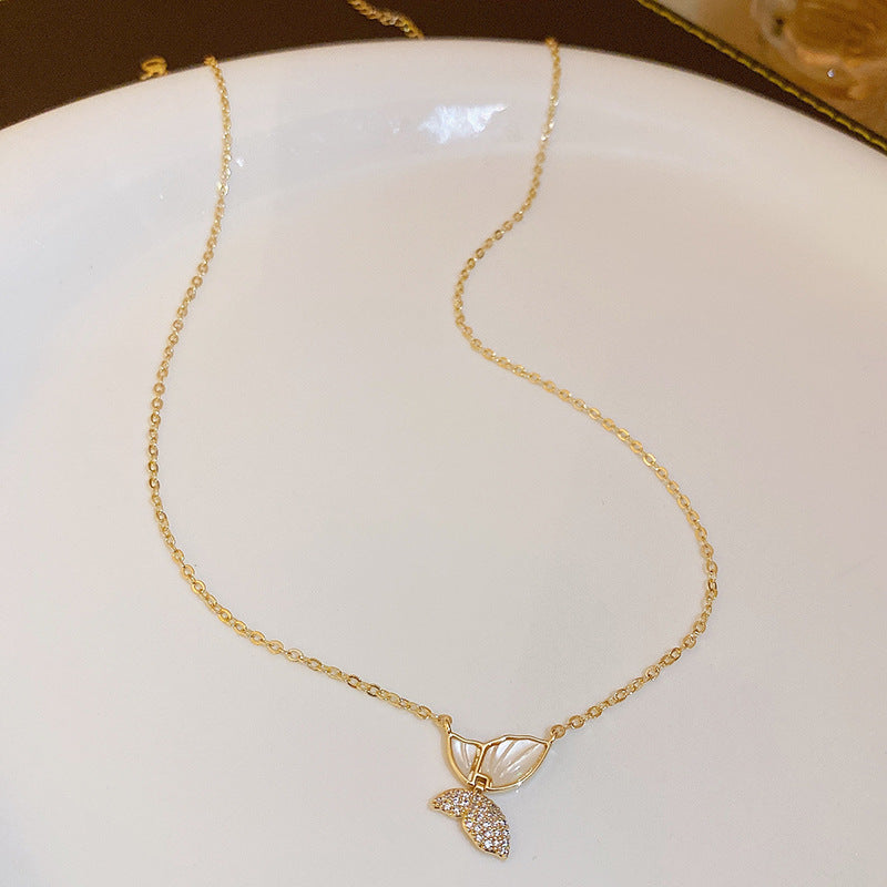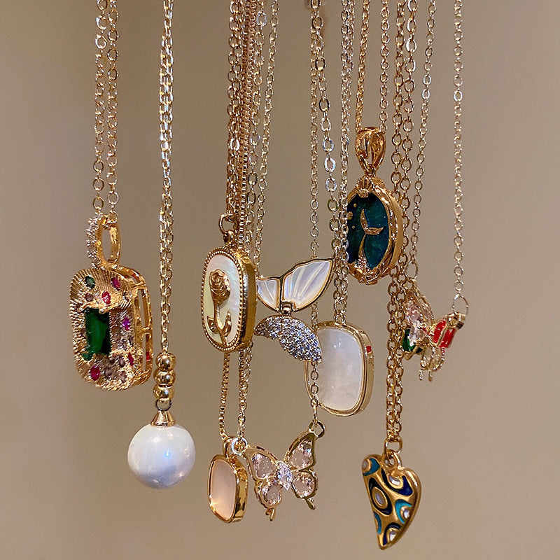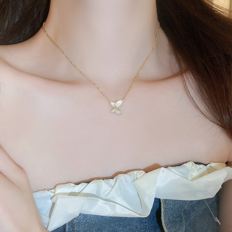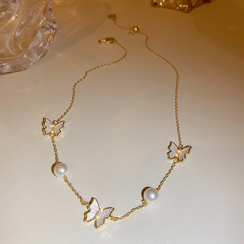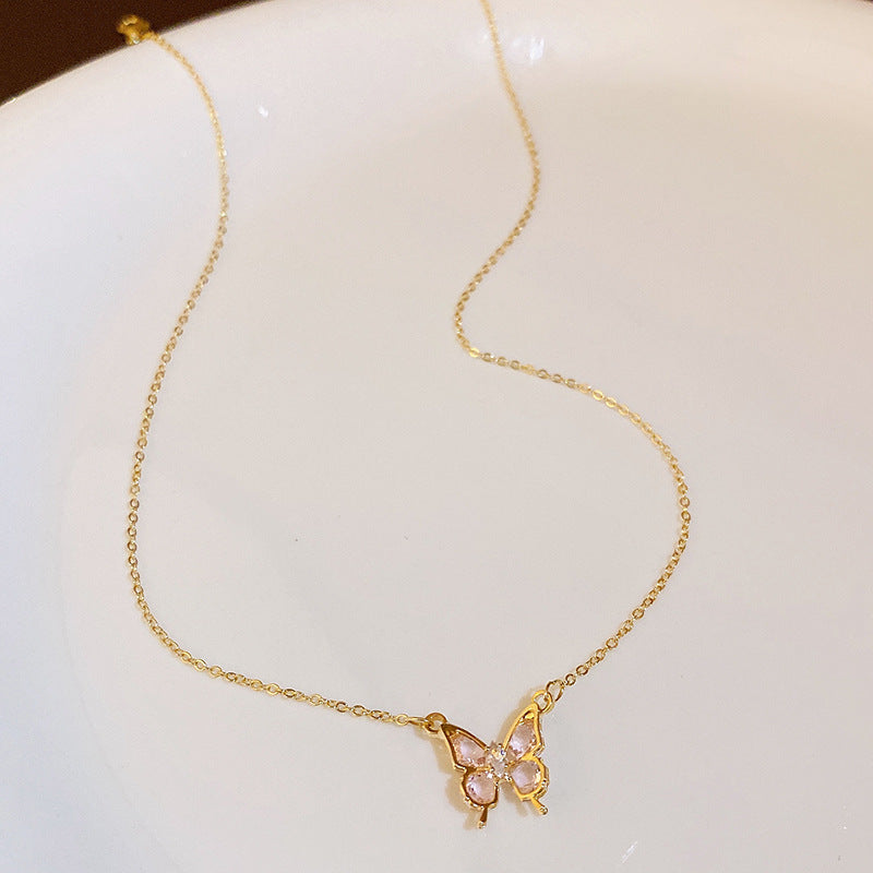 真金電鍍鋯石蝴蝶花朵流蘇項鍊法式小衆時尚鎖骨鏈高級感個性項飾