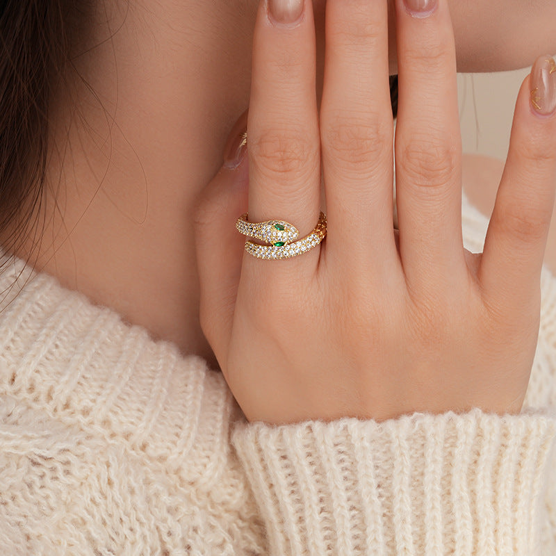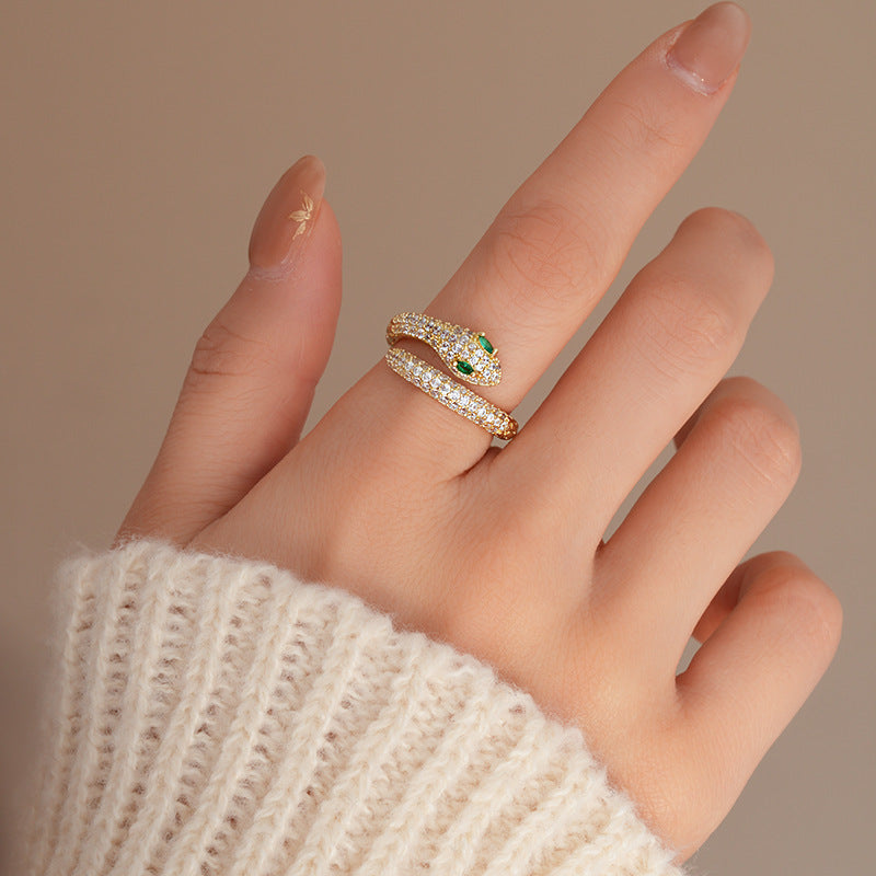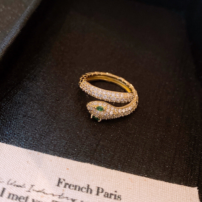 真金電鍍鋯石靈蛇開口戒指 中古vintage食指戒輕奢高級感手飾