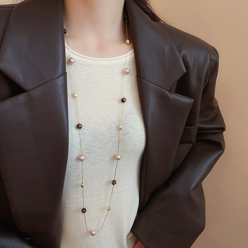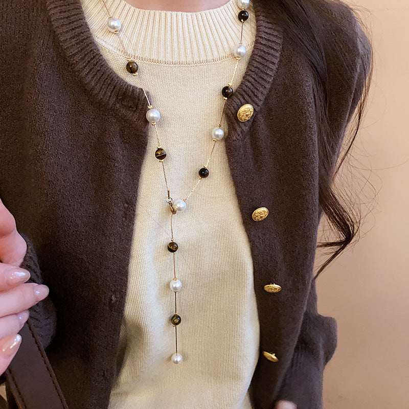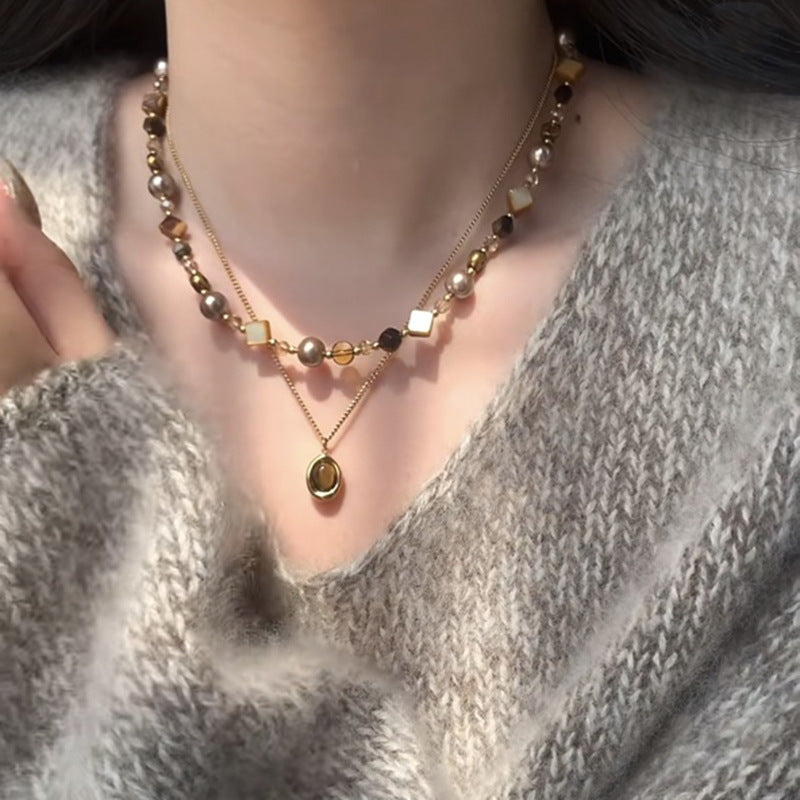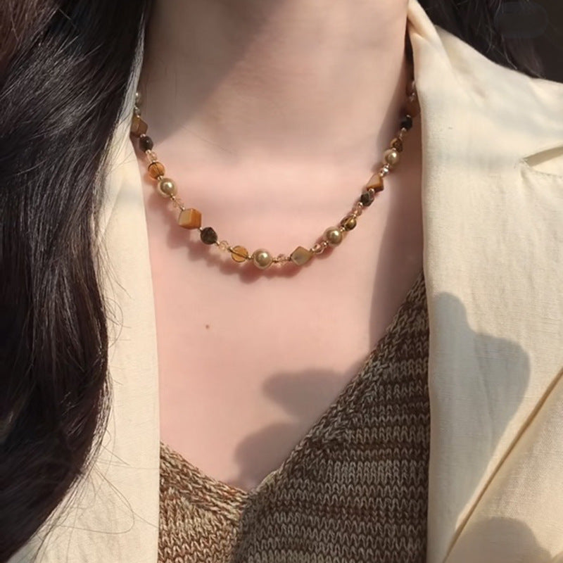 美拉德咖色不規則貝殼珍珠項鍊輕奢高級感鎖骨鏈氣質時尚百搭項飾