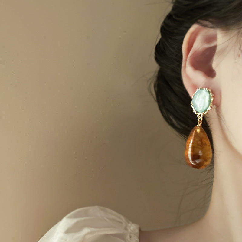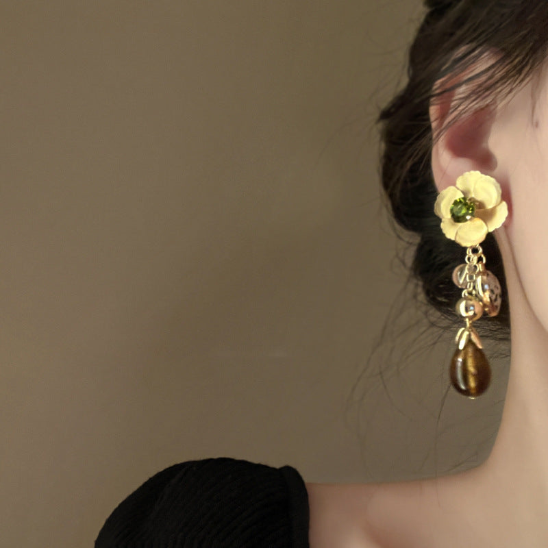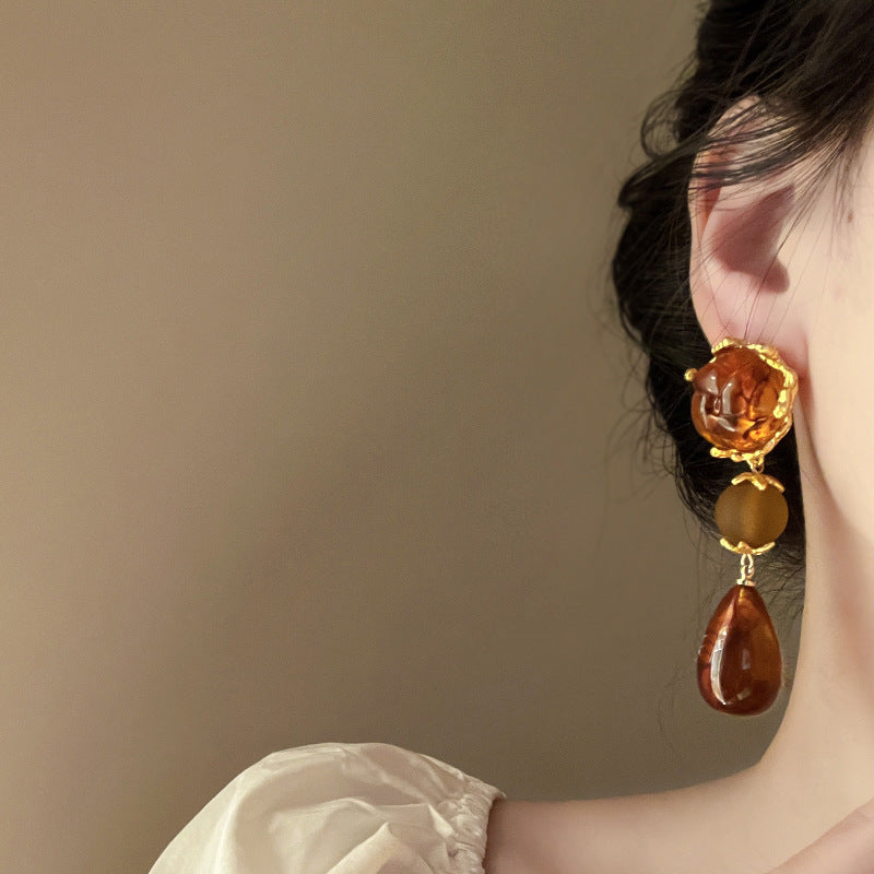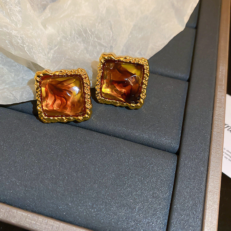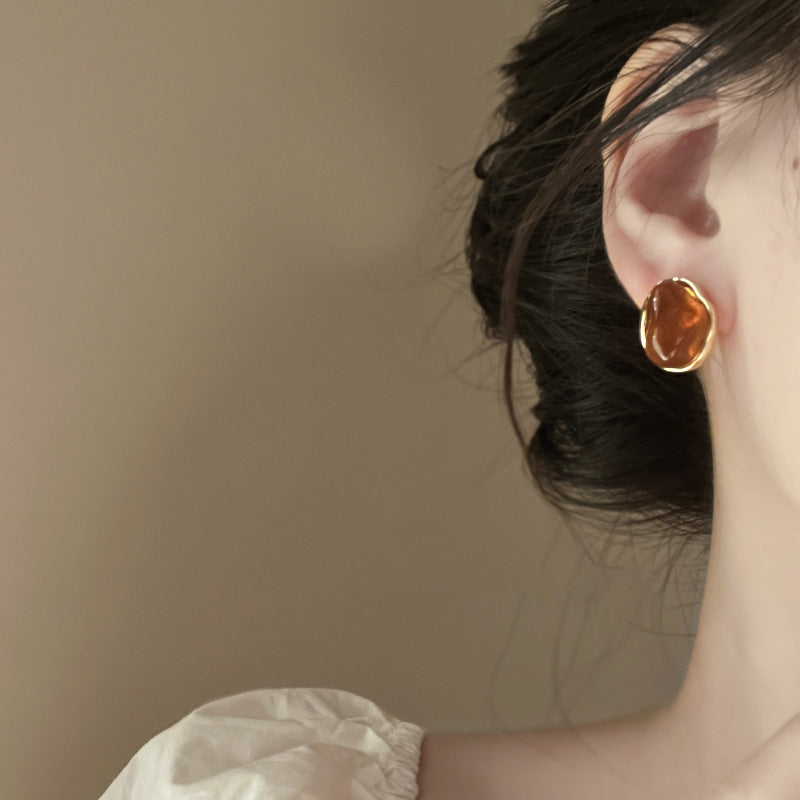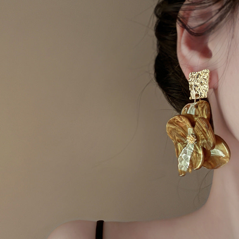 美拉德風咖色幾何花朵愛心耳釘時尚氣質耳環復古高級感耳飾女