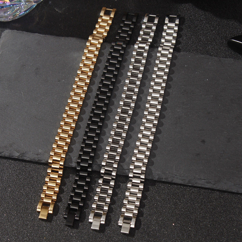 跨境可調節鈦鋼男士彎牌手鍊可刻字不鏽鋼18K金錶帶手鍊女手飾品