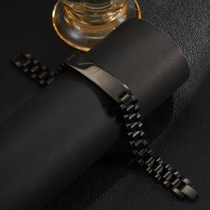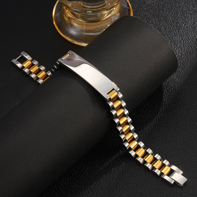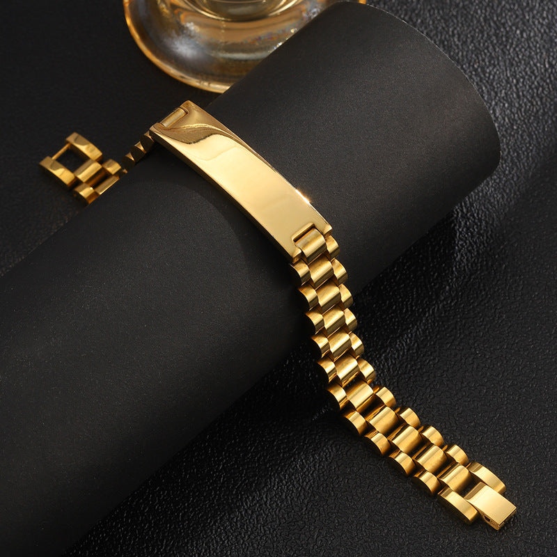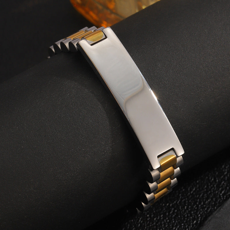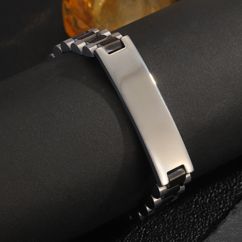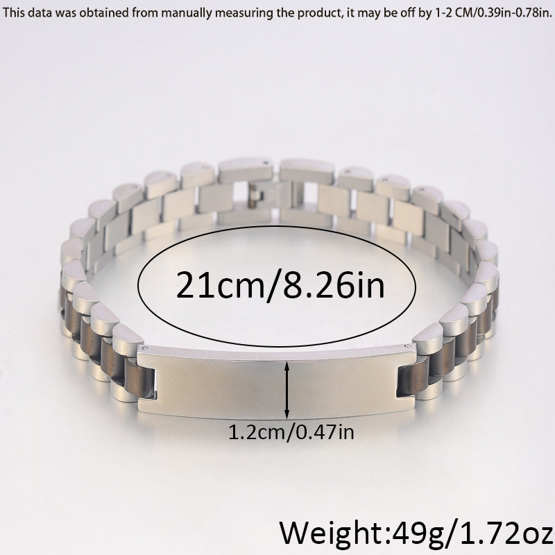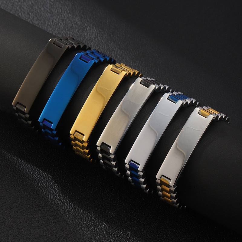 跨境新品不鏽鋼彎牌手鍊男士手錶帶百搭可刻字鈦鋼手錶鏈飾品