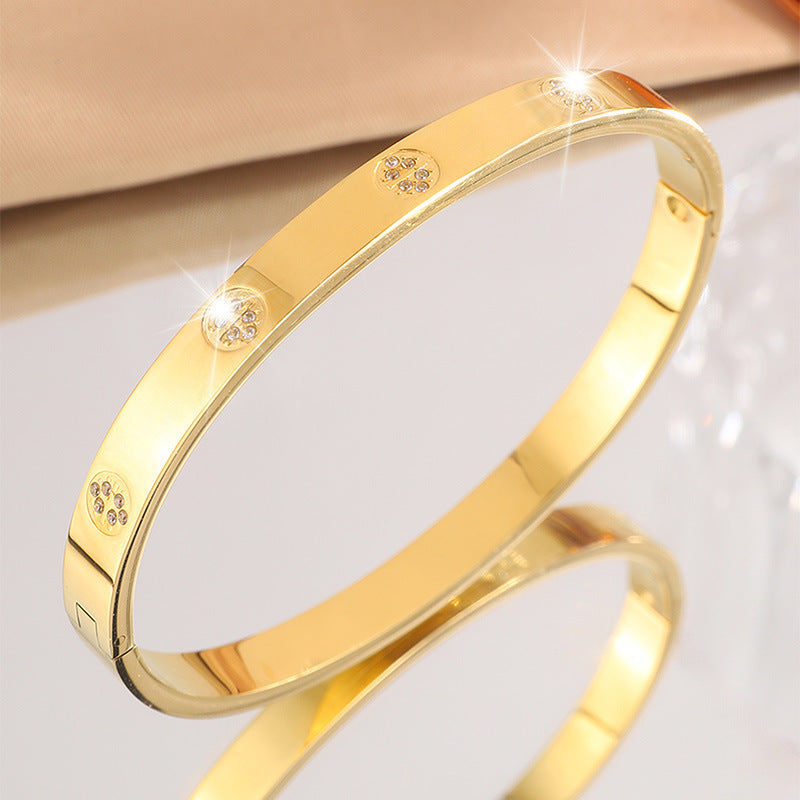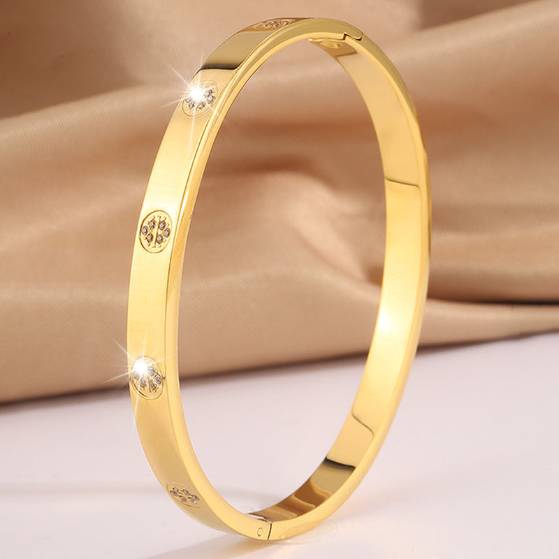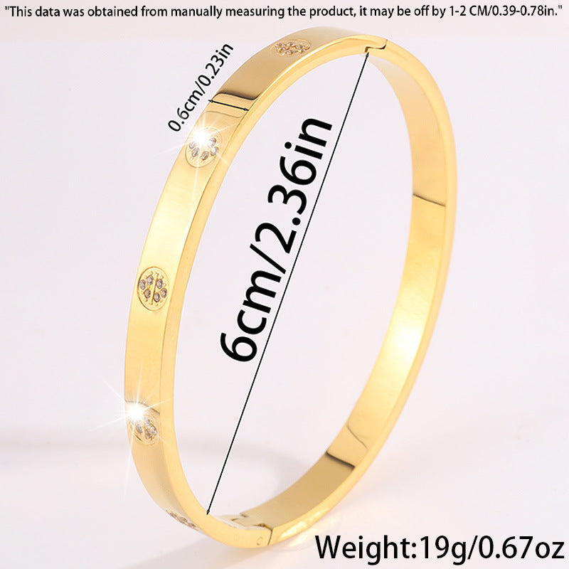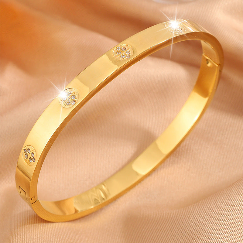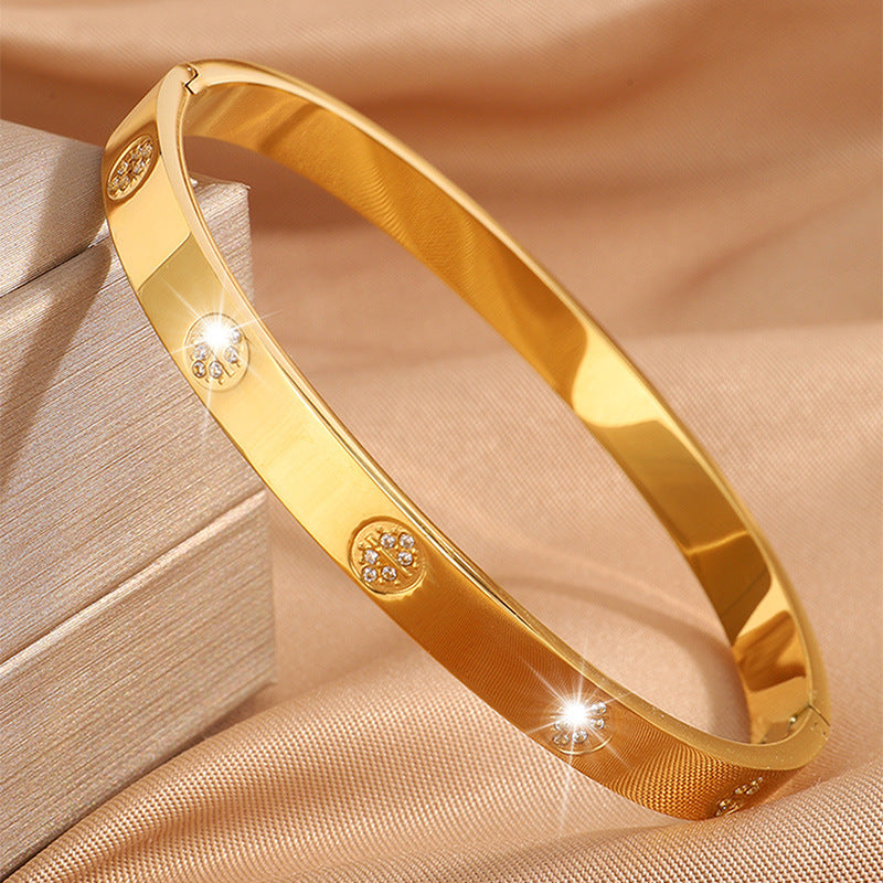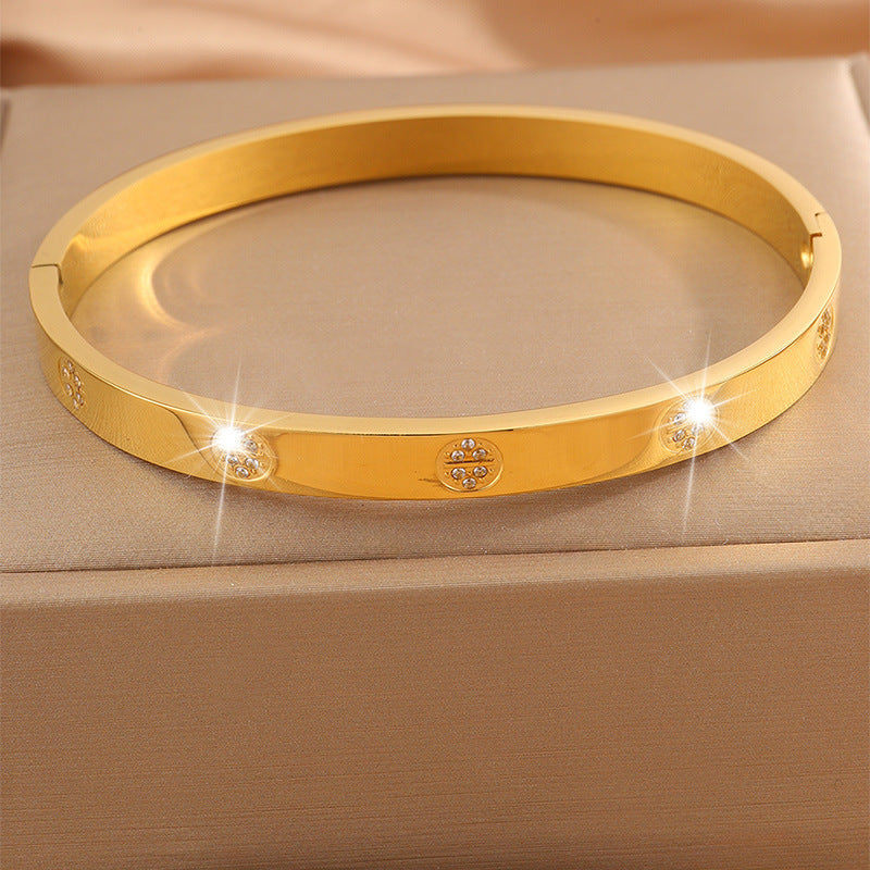 跨境新品圓圈點鑽不鏽鋼手鐲女歐美輕奢小衆設計高級感不掉色手鐲
