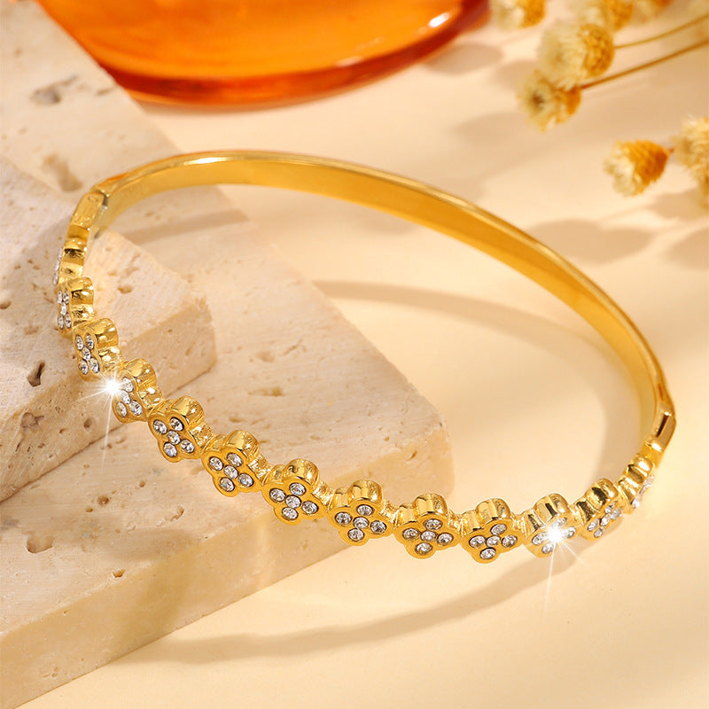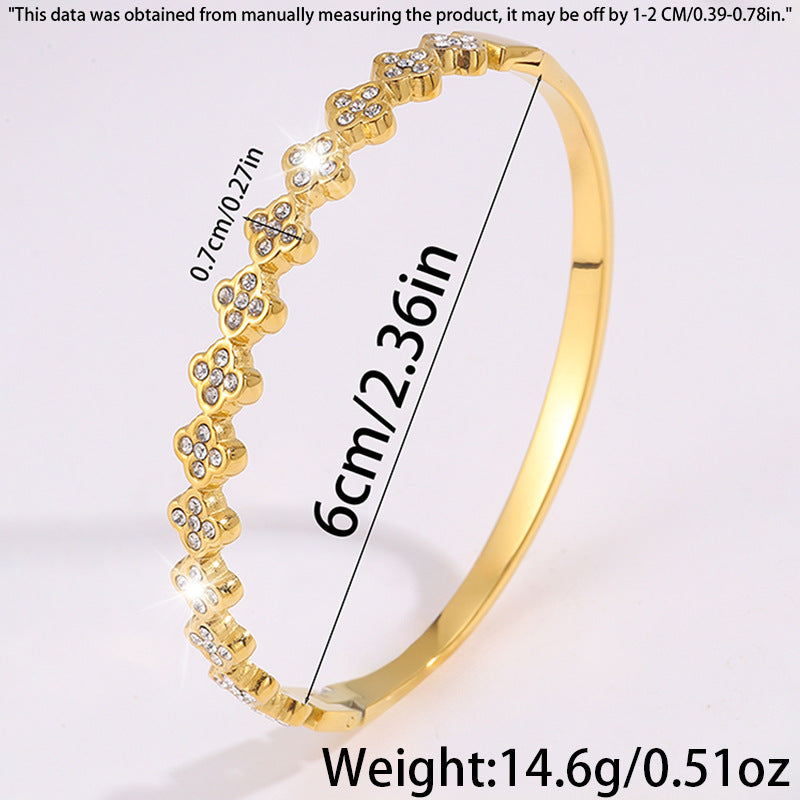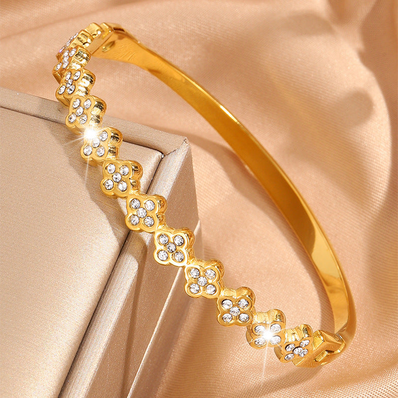 跨境新款百搭四葉草鈦鋼手鐲不掉色女歐美輕奢滿天星不鏽鋼手鐲