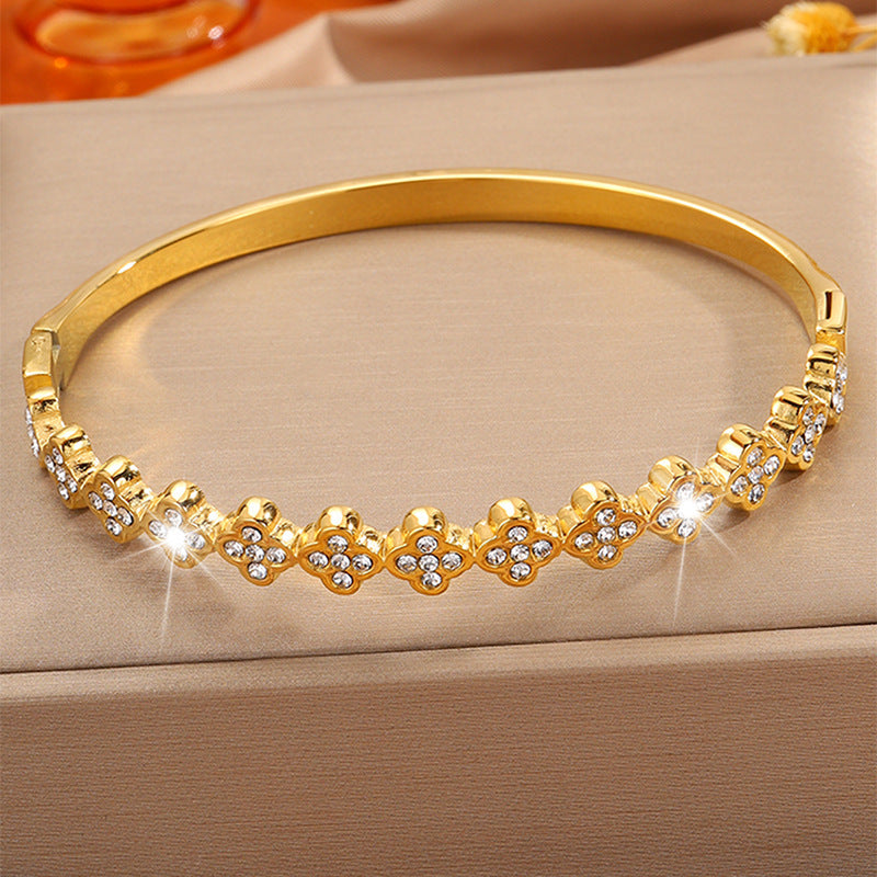 6CM/2.36IN: 金色四葉花滿鑽手鐲