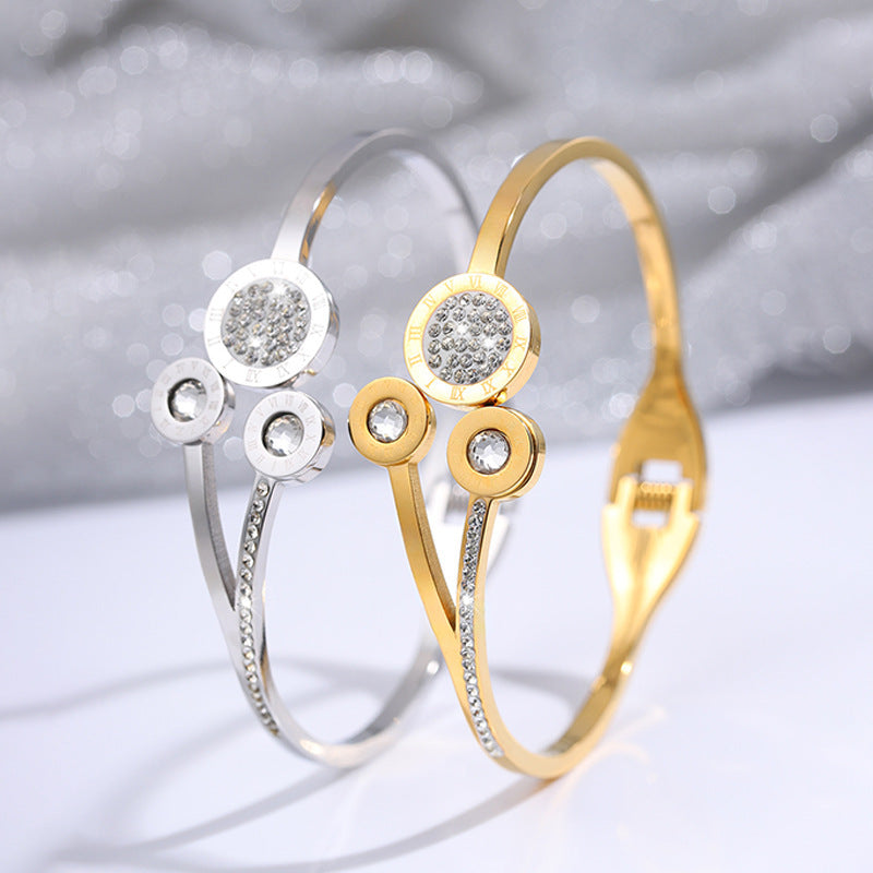 跨境歐美復古羅馬文鑲鑽不鏽鋼手鐲新款個性潮流鈦鋼女高級感飾品