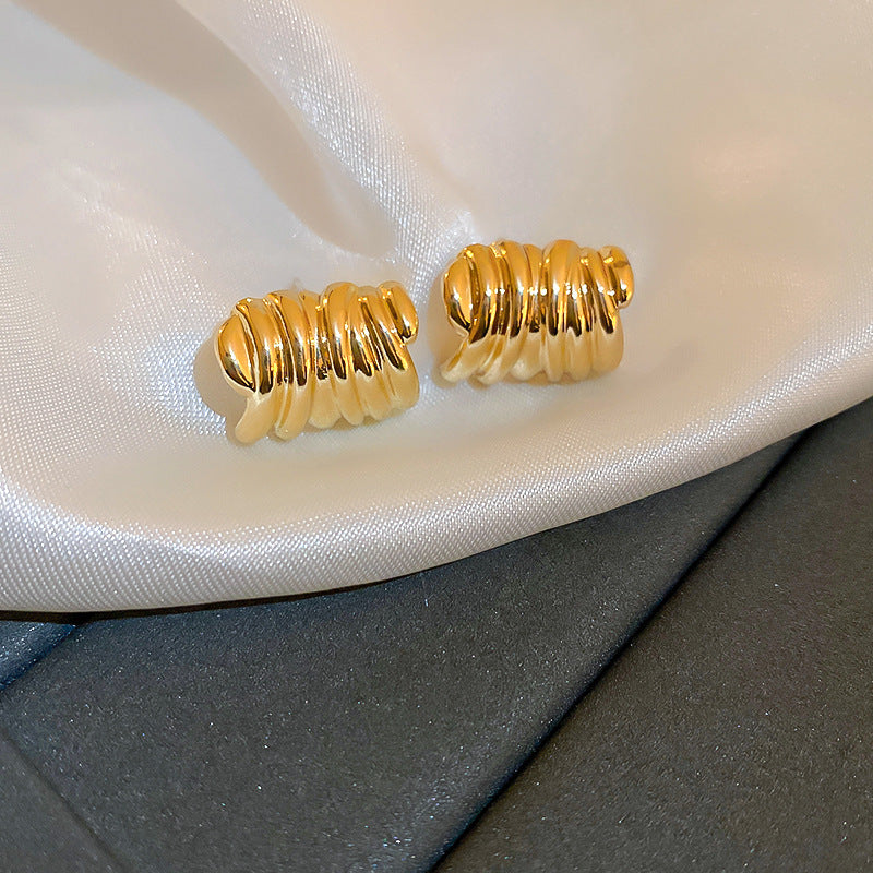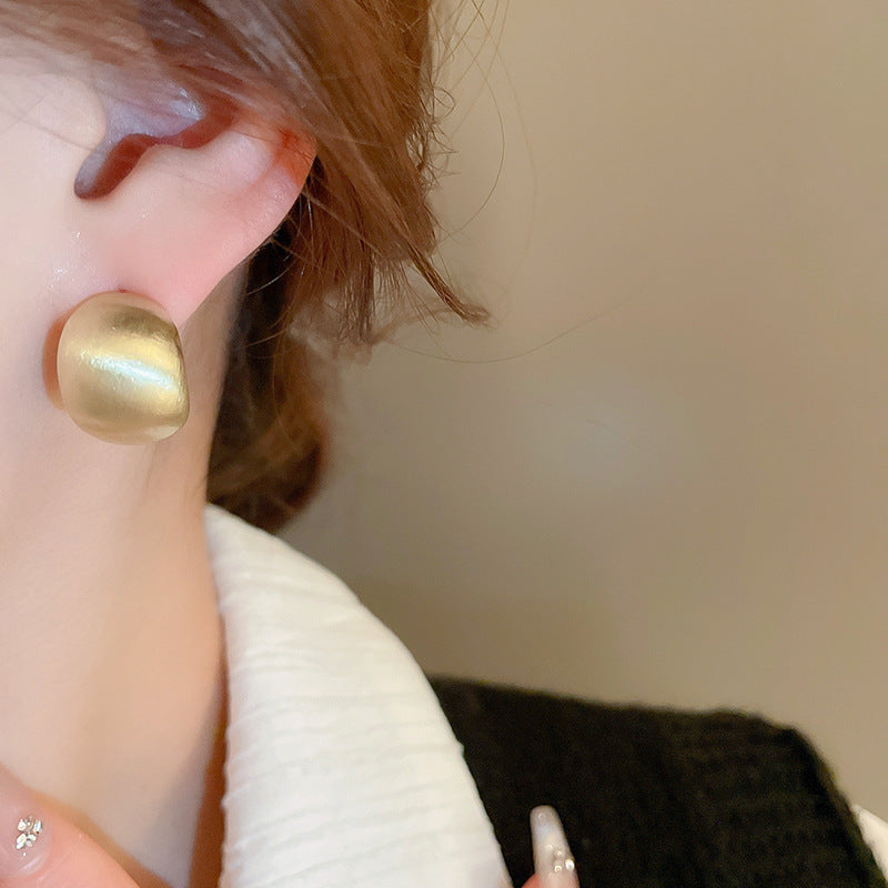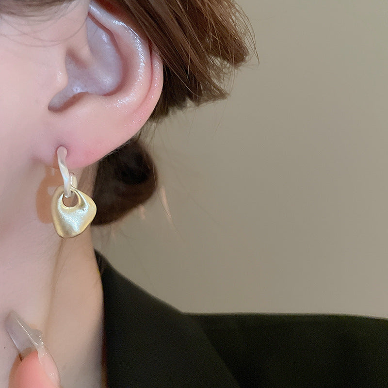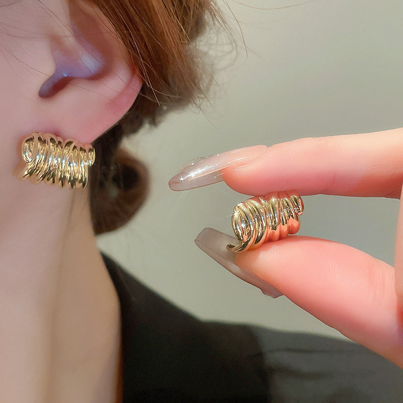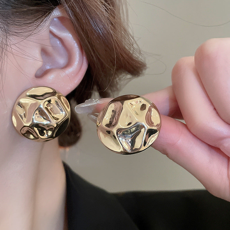 跨境銀針金屬風褶皺圓形幾何豆豆耳釘時尚氣質耳環歐美時尚耳飾女