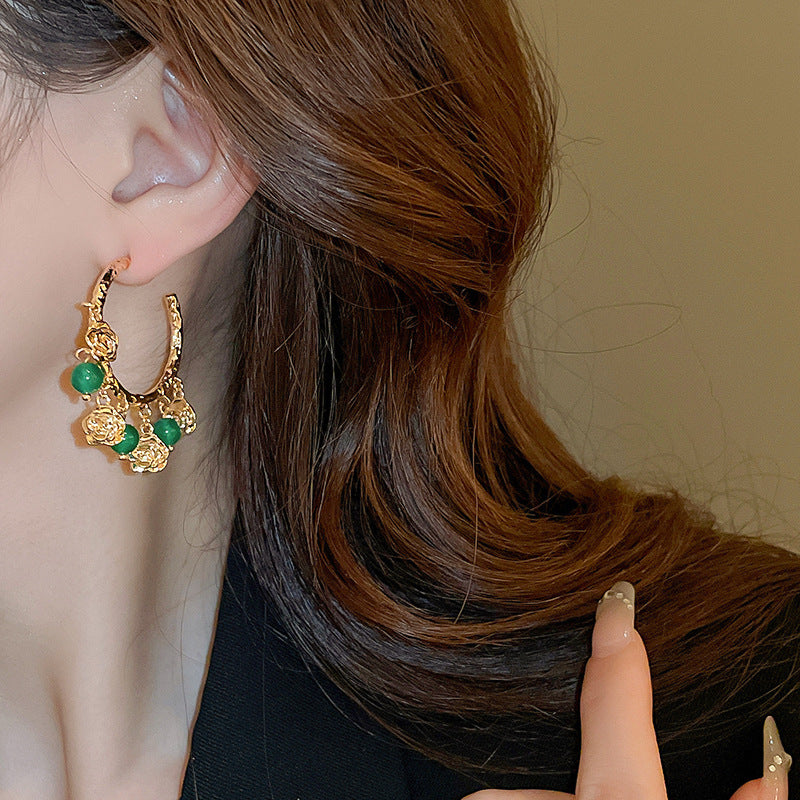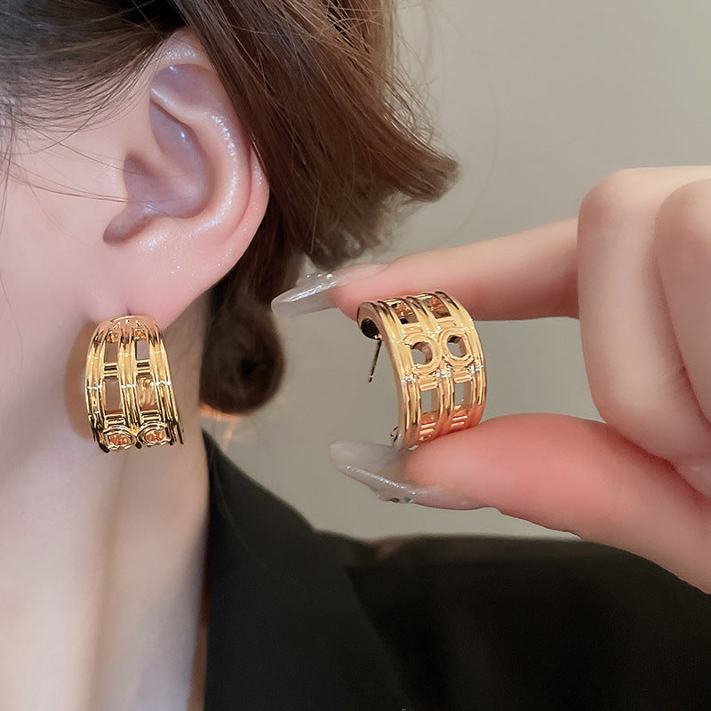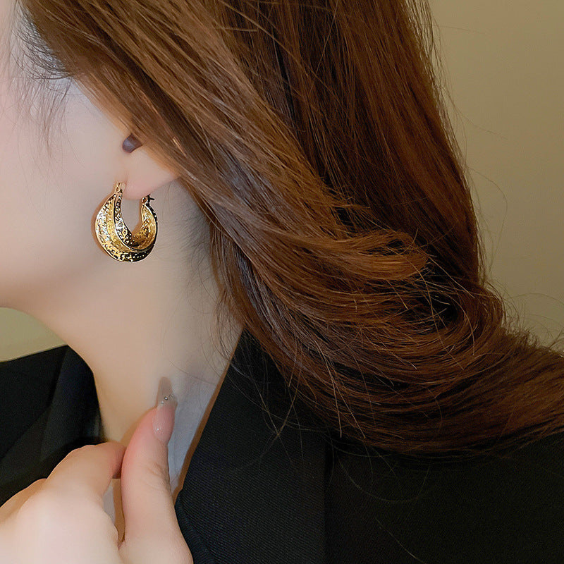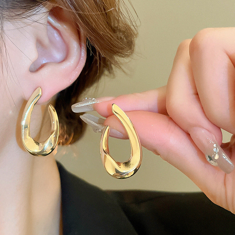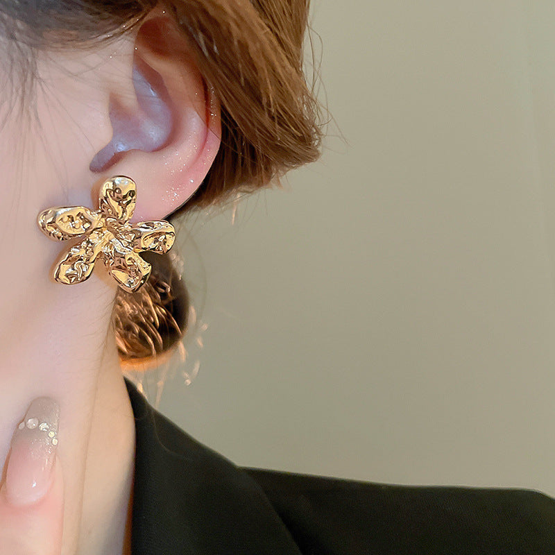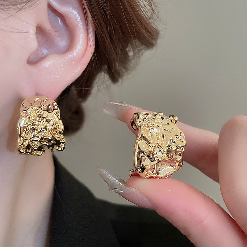 跨境銀針金屬風褶皺圓形幾何豆豆耳釘時尚氣質耳環歐美時尚耳飾女
