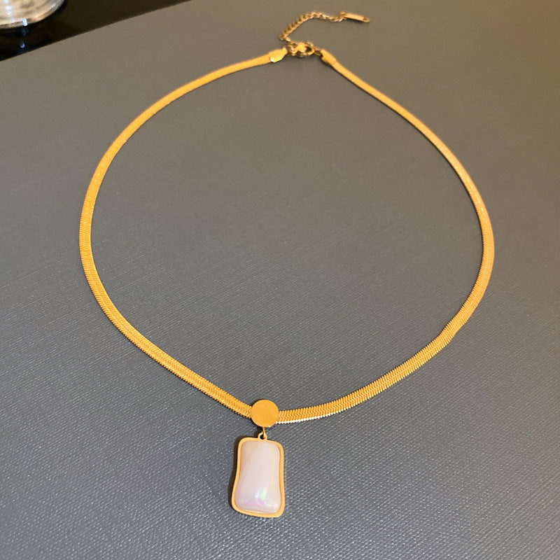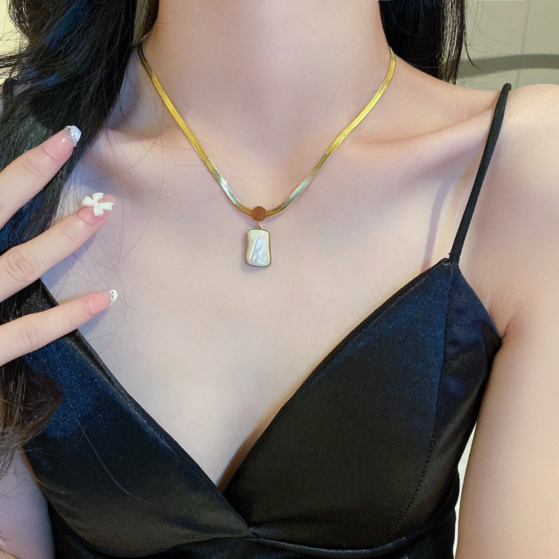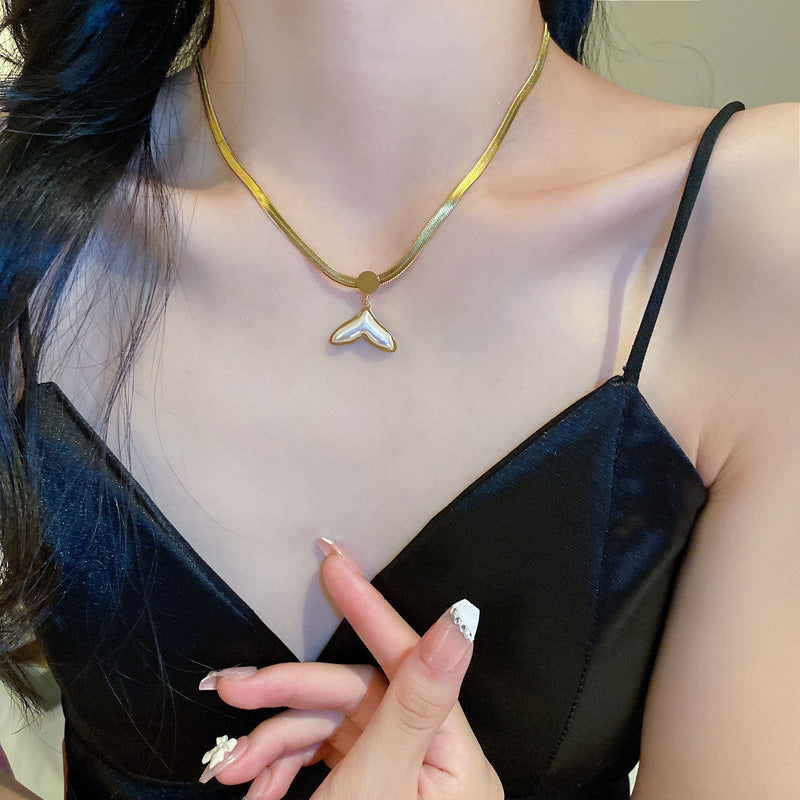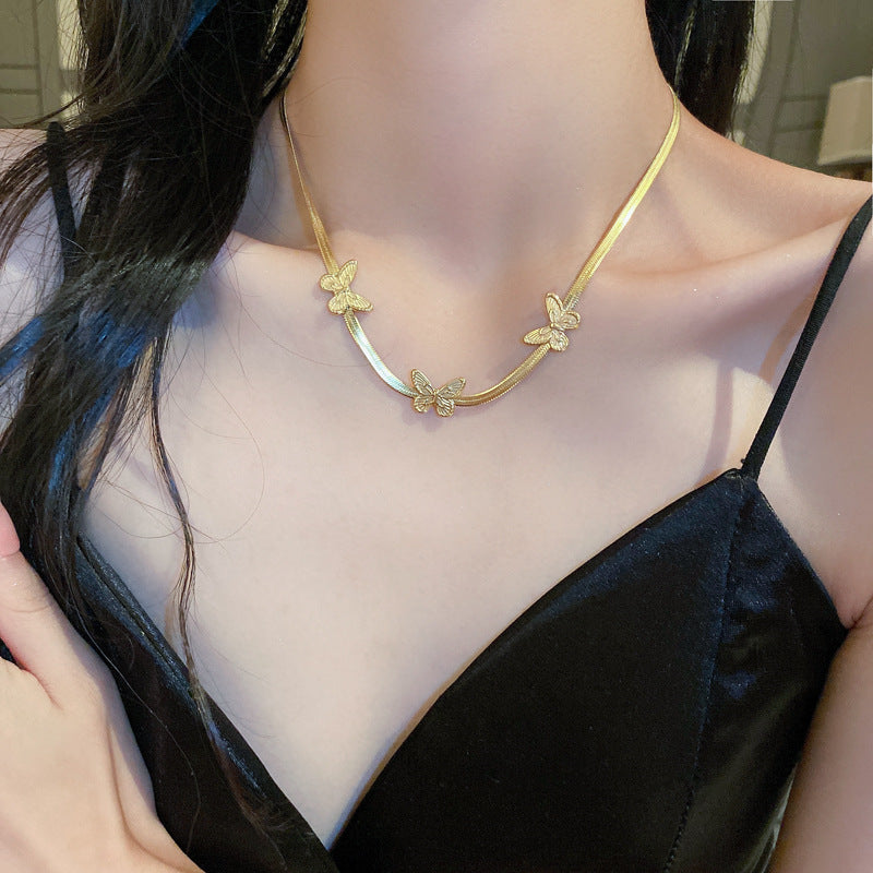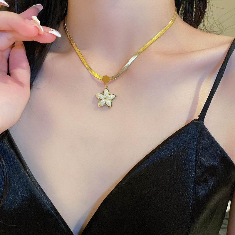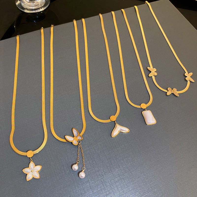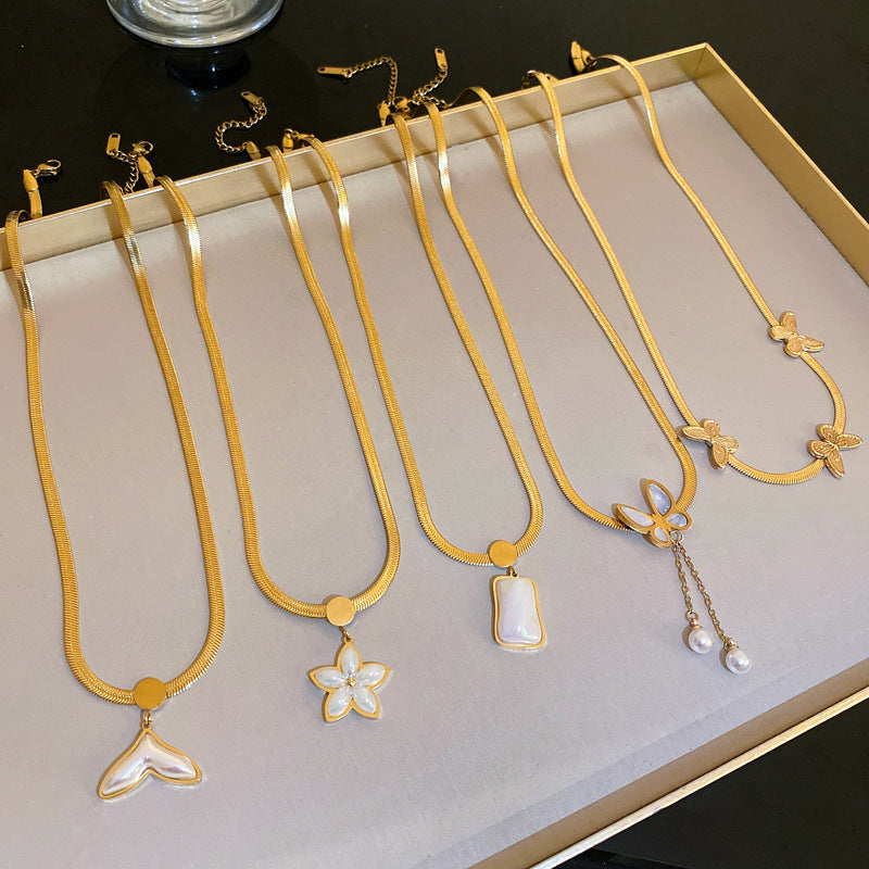 鈦鋼復古金屬風珍珠蝴蝶花朵項鍊歐美時尚氣質鎖骨鏈項墜新款項飾
