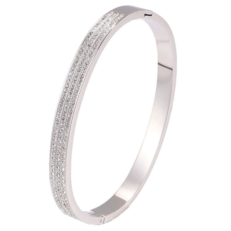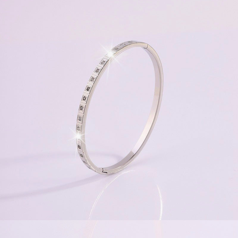 鈦鋼手鐲不掉色滿天星銀手鐲女生百搭高級感時尚滿鑽不鏽鋼手鐲