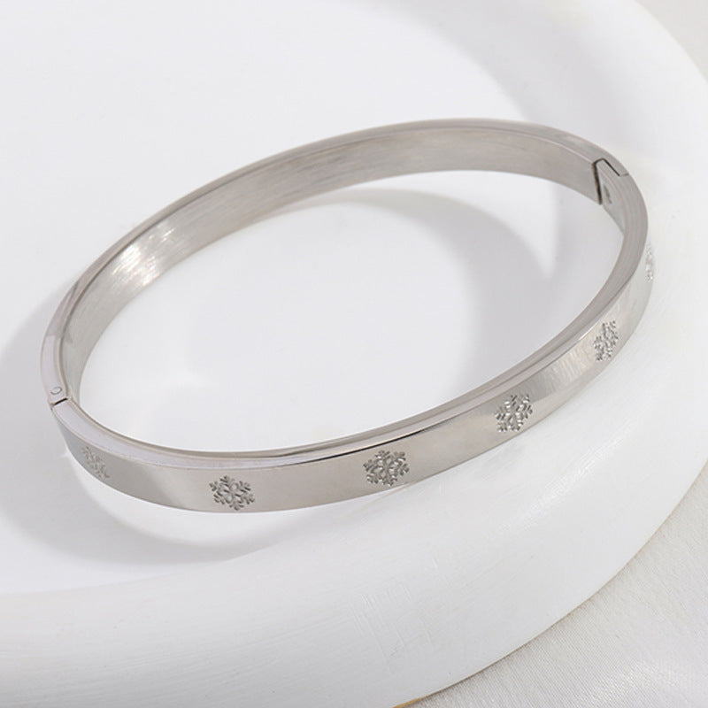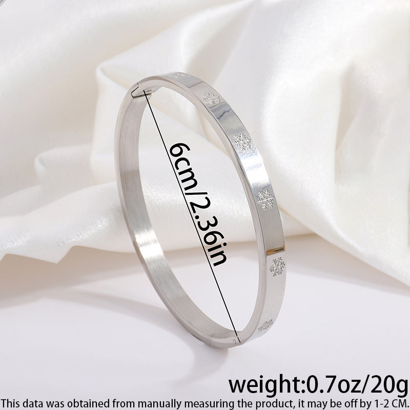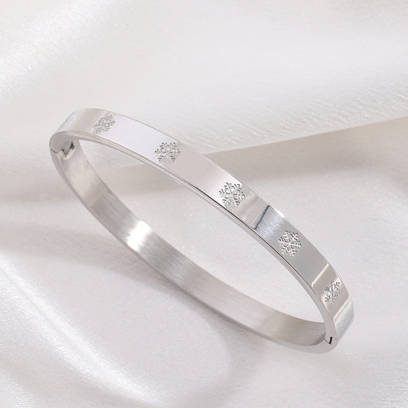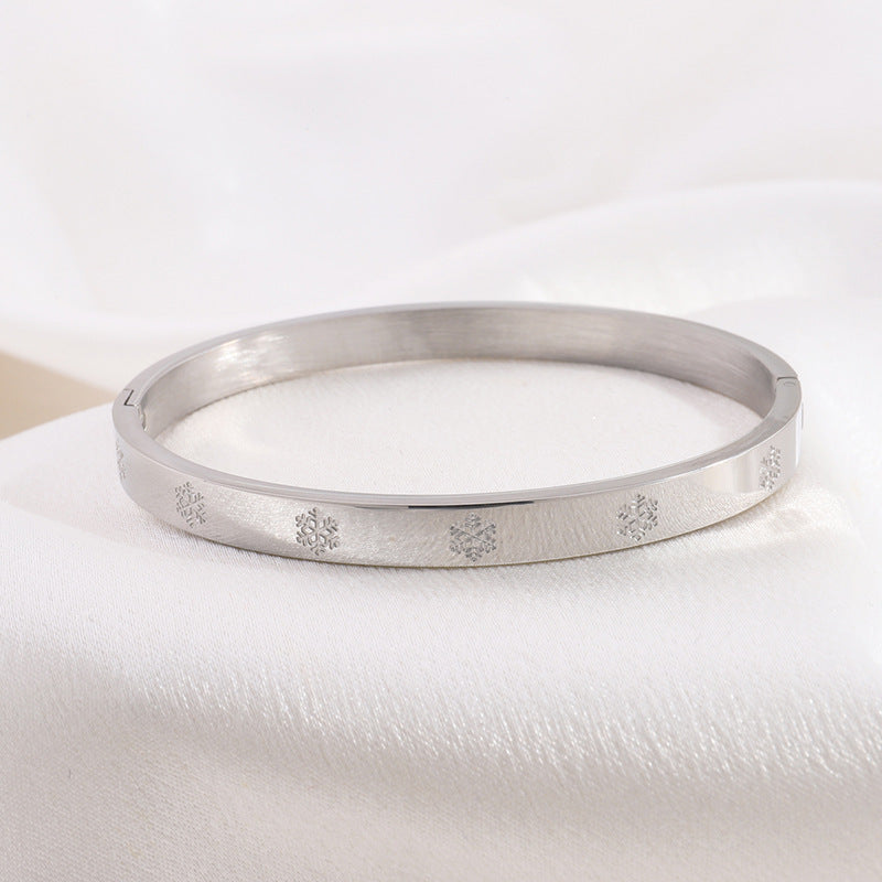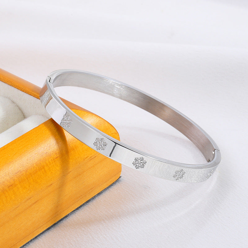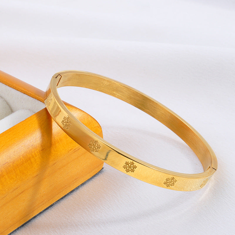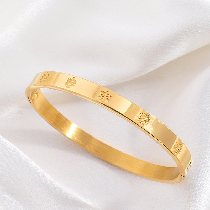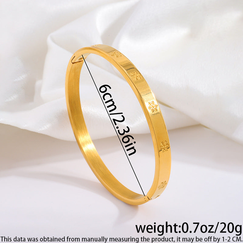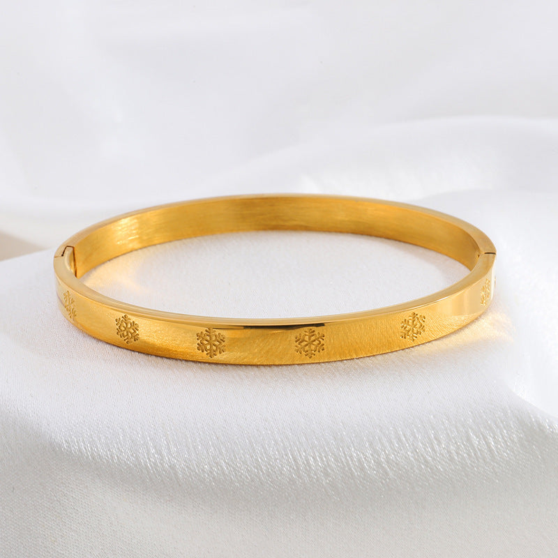 鈦鋼手鐲壓印雪花不鏽鋼手鐲女生高級感時尚歐美18K金不掉色手環