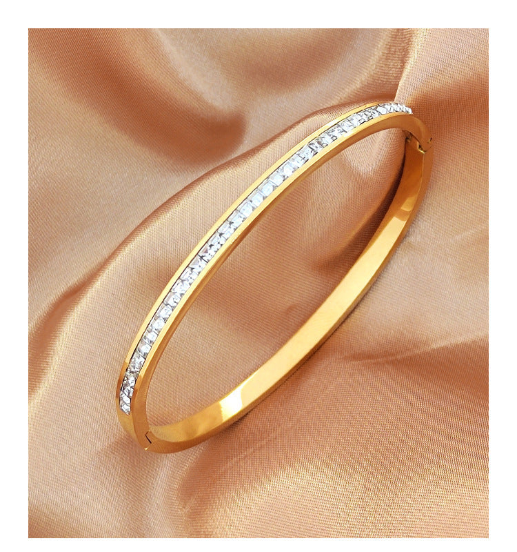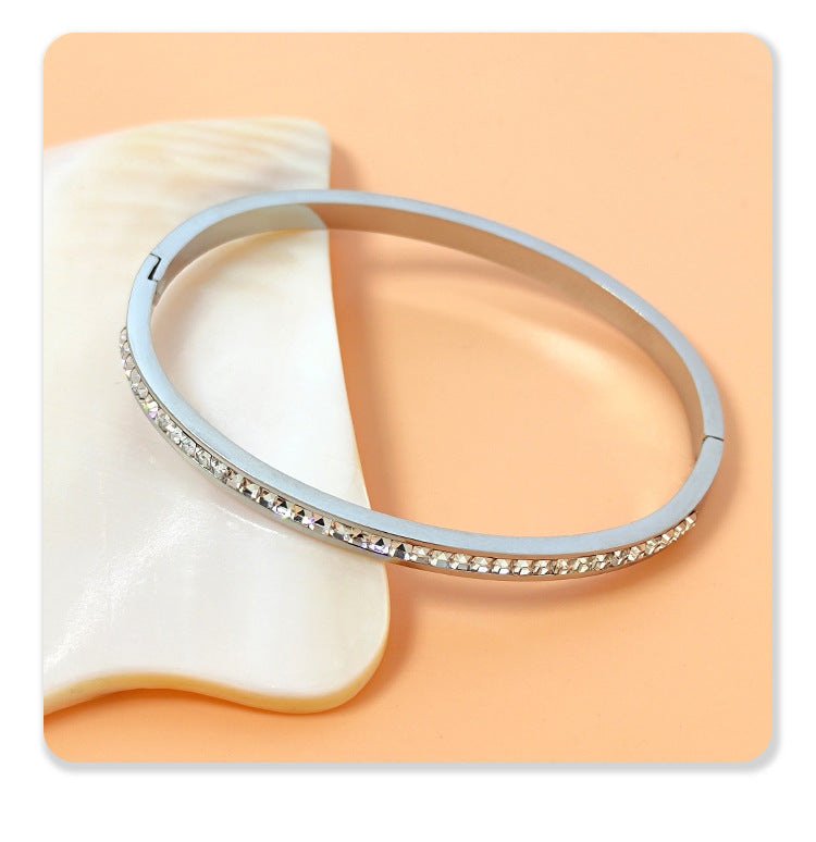 鈦鋼手鐲女生高級感小衆滿天星不掉色鑲鑽簡約氣質不鏽鋼滿鑽手環