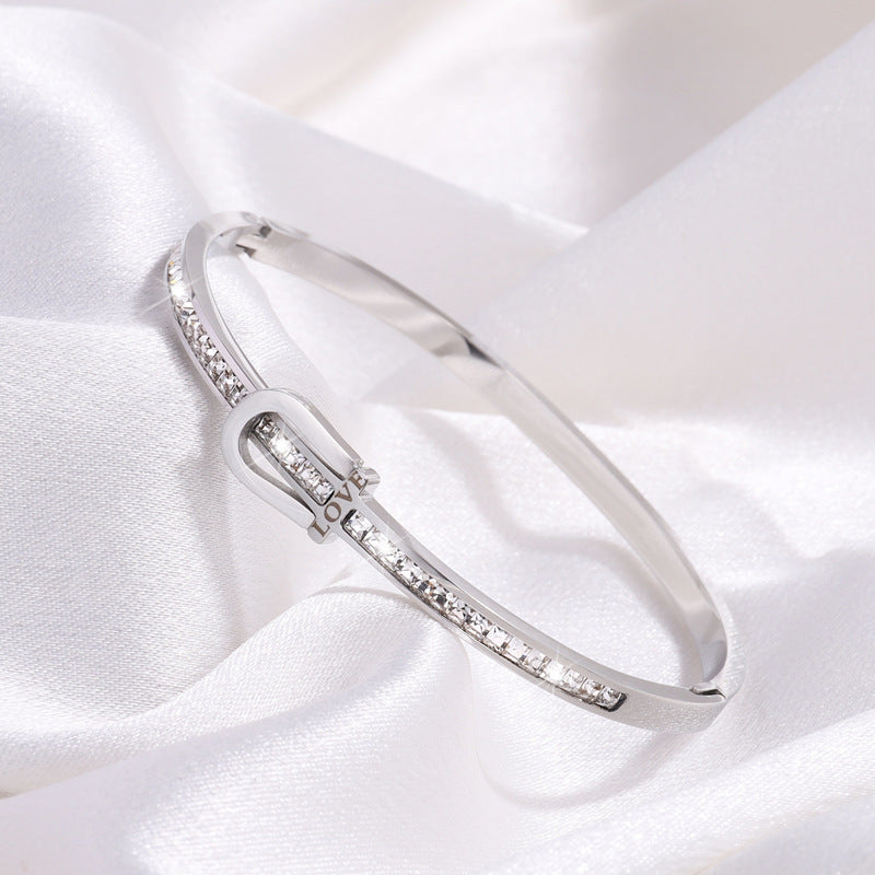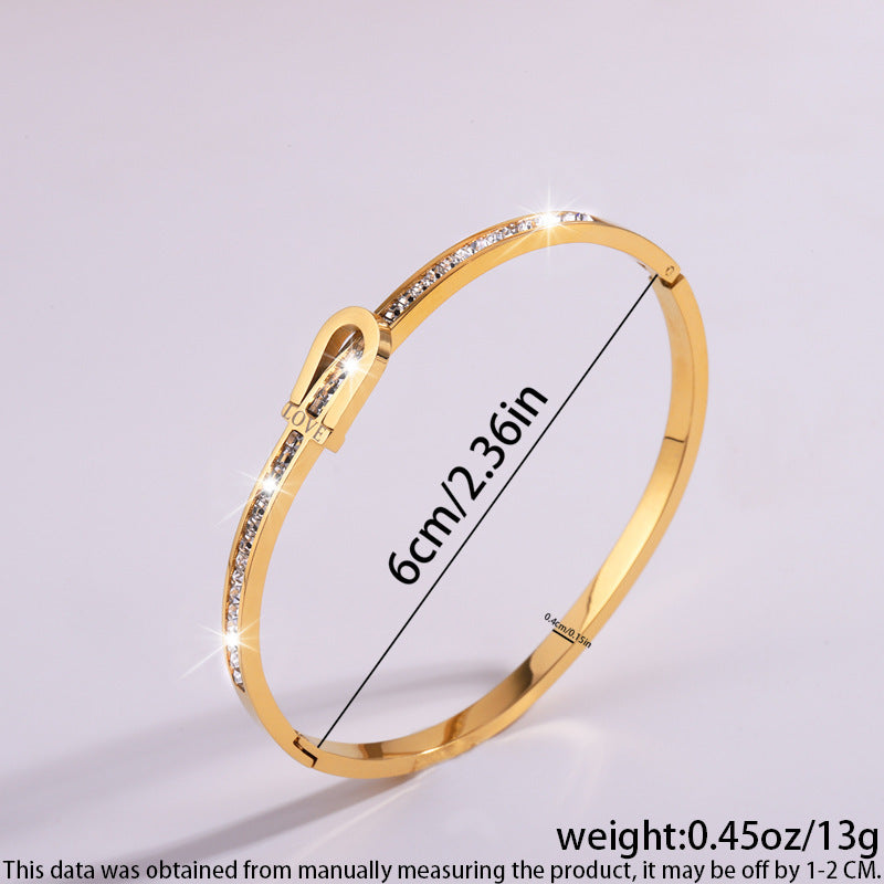 鈦鋼手鐲女生高級感時尚簡約風情侶款彎排刻LOVE不鏽鋼單排鑽手鐲