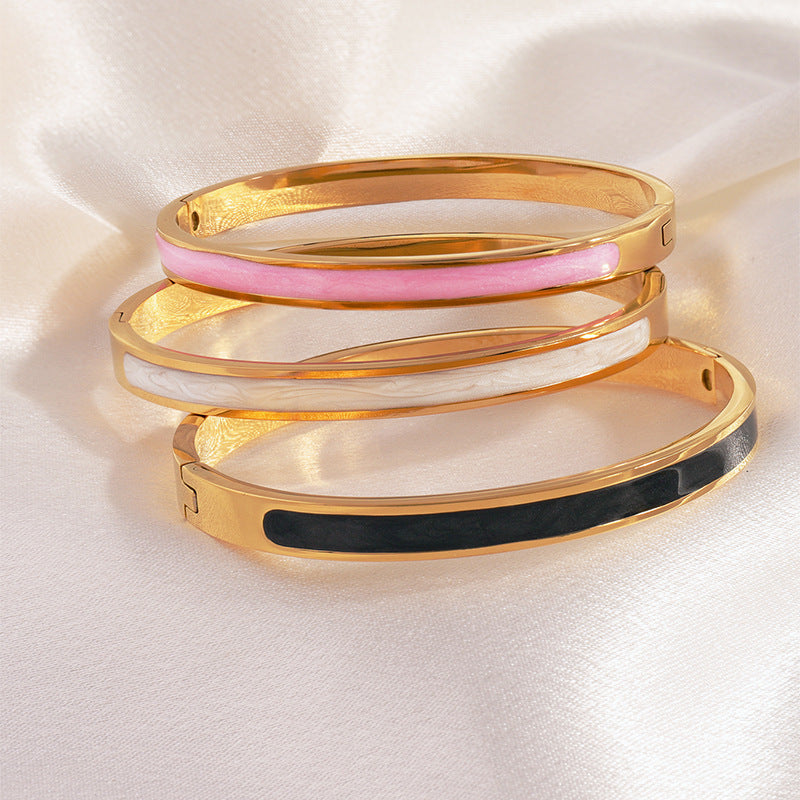 鈦鋼手鐲女生高級感滴油手鐲時尚跨境歐美小香風不掉色圓圈手鐲