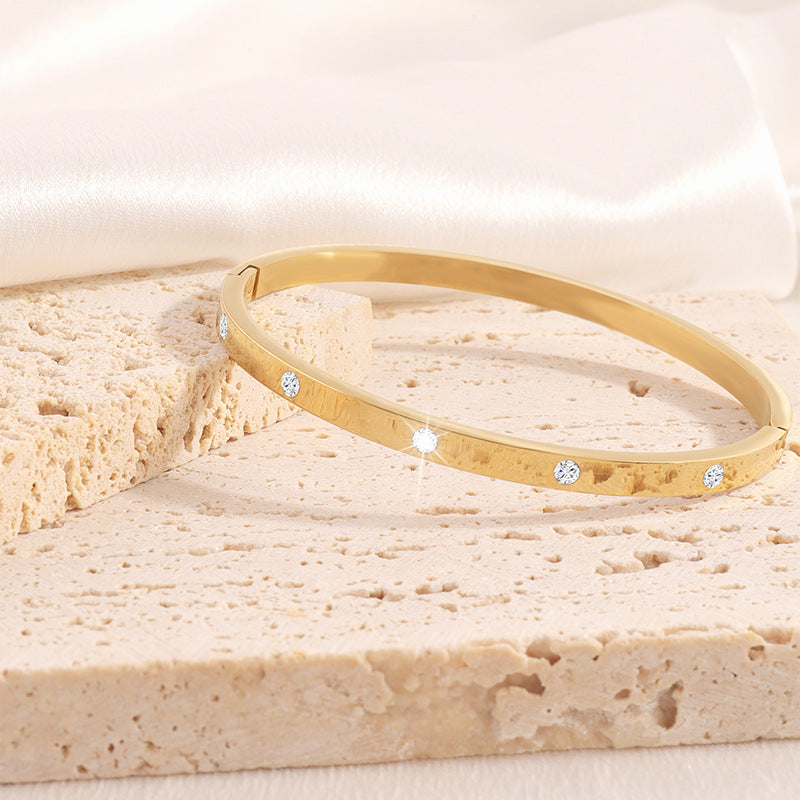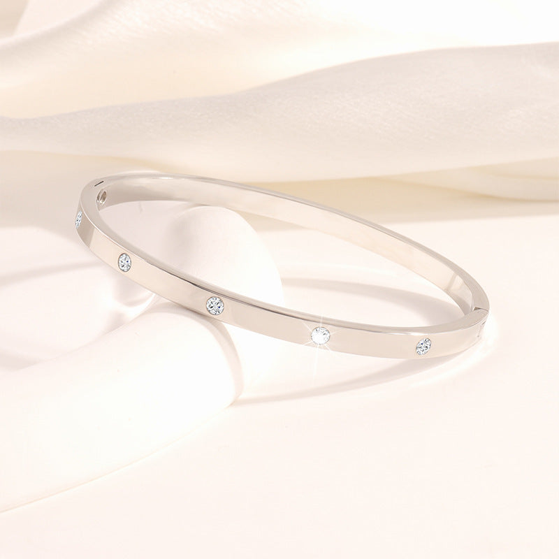 鈦鋼手鐲女生高級感跨境時尚輕奢精緻不掉色飾品不鏽鋼鑲鑽手鐲