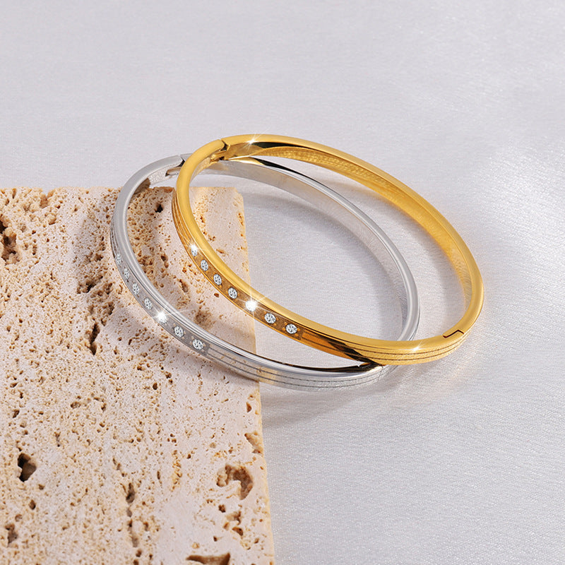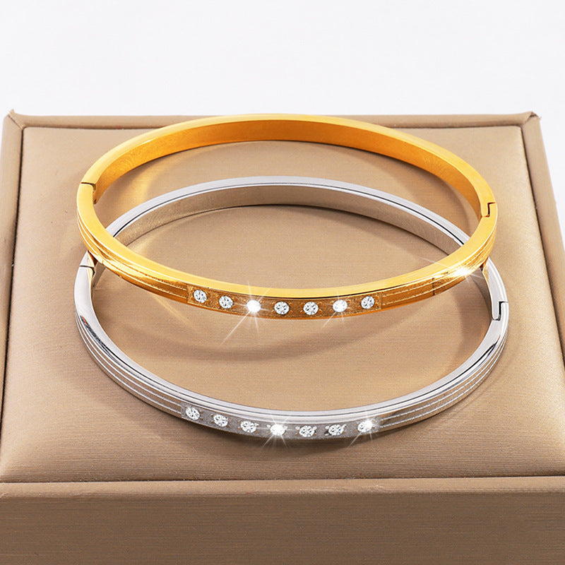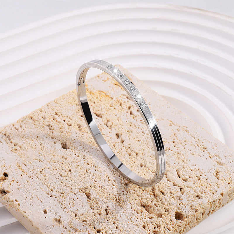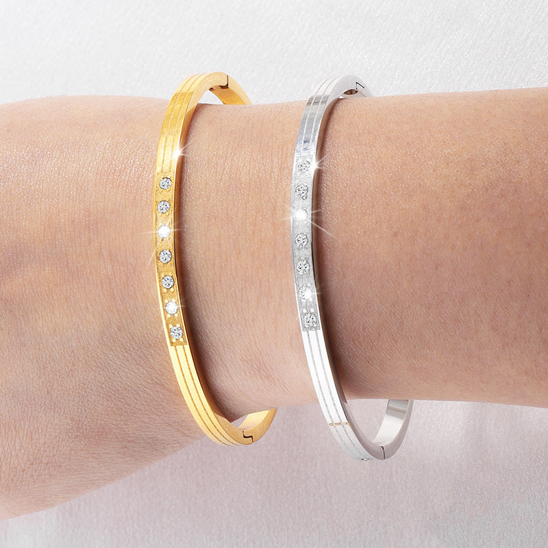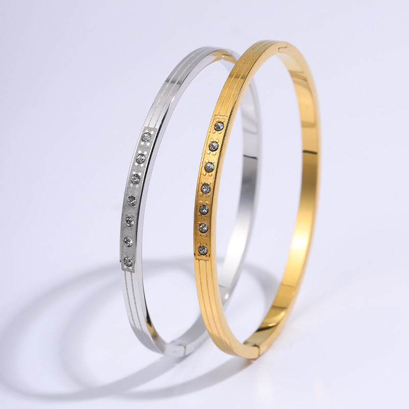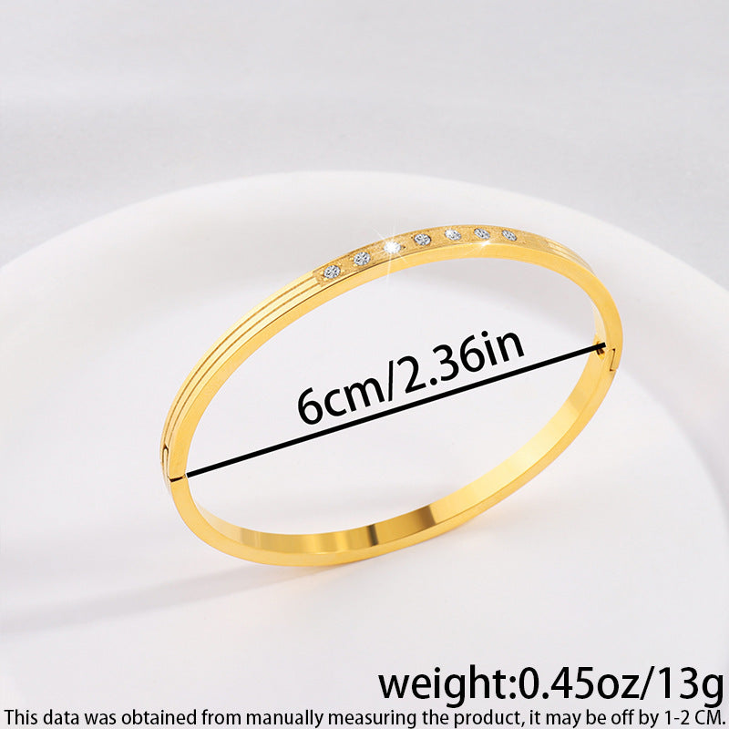 鈦鋼手鐲女簡約雙條紋7顆鑽跨境爆款時尚開口卡扣不鏽鋼蛋形手鐲