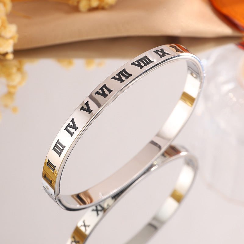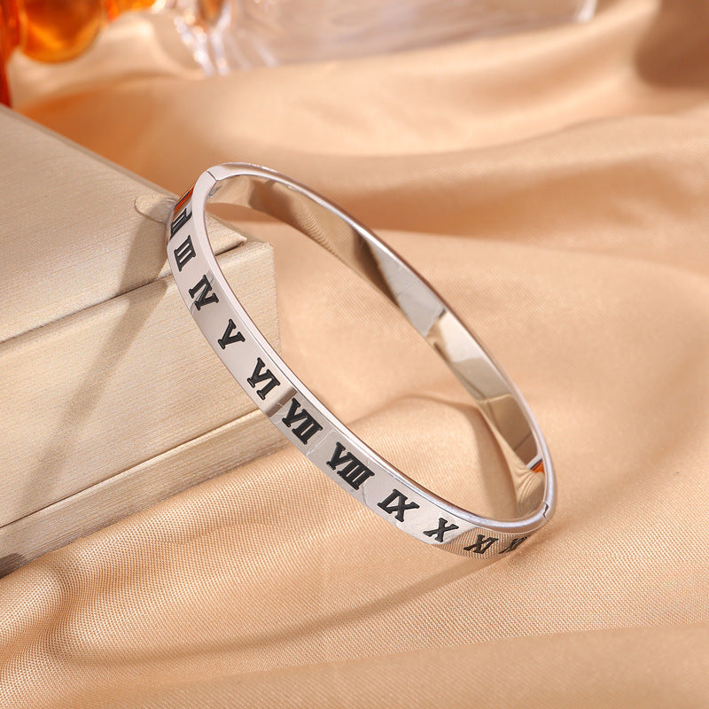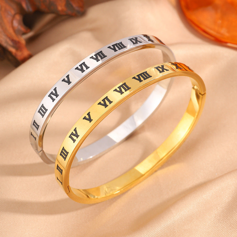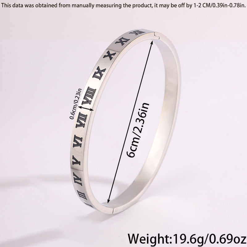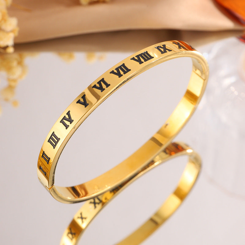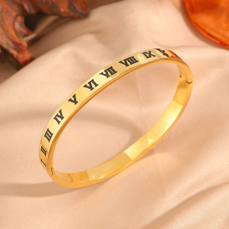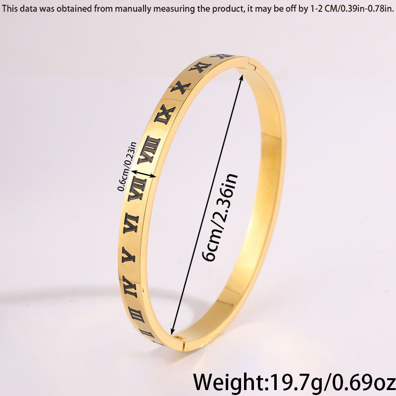 鈦鋼手鐲女高版本羅馬數字歐美時尚不掉色新款ING風18k手鐲飾品
