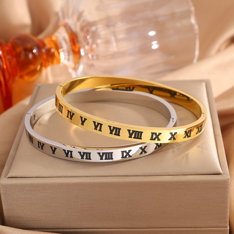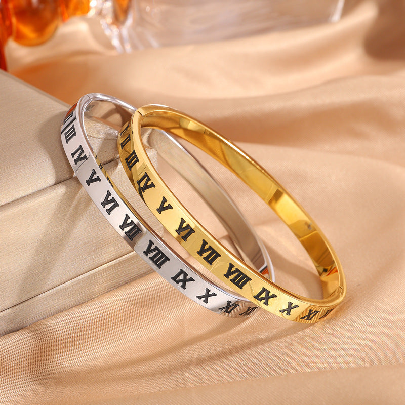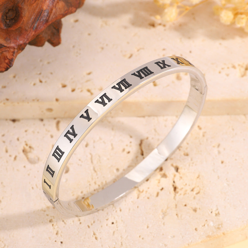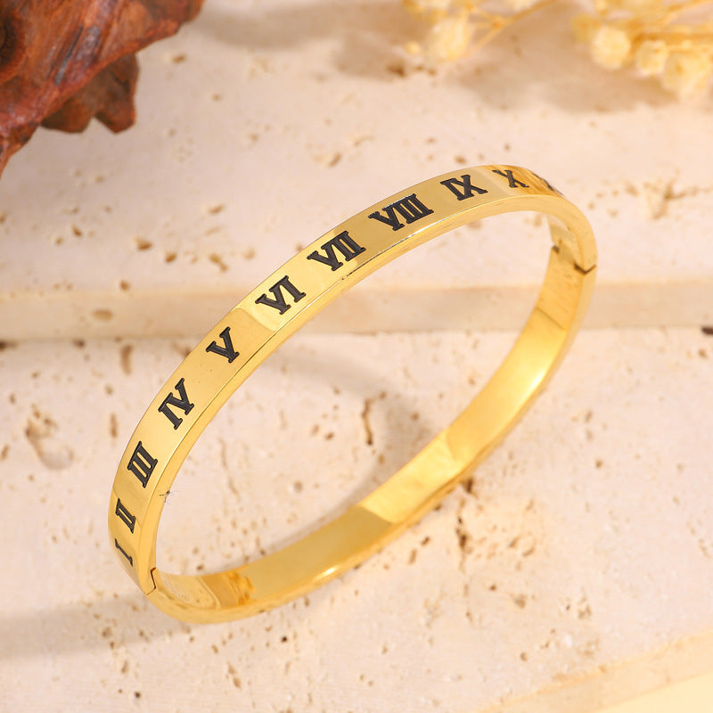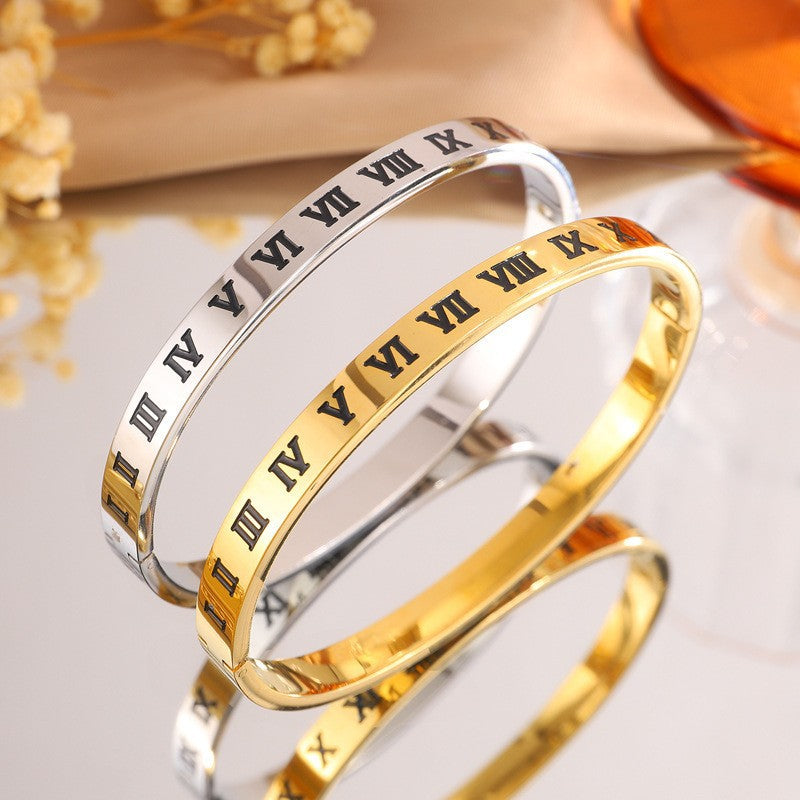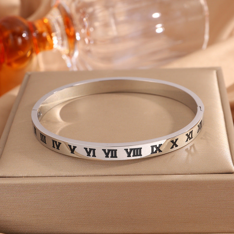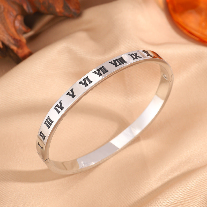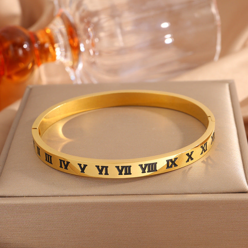 鈦鋼手鐲女高版本羅馬數字歐美時尚不掉色新款ING風18k手鐲飾品