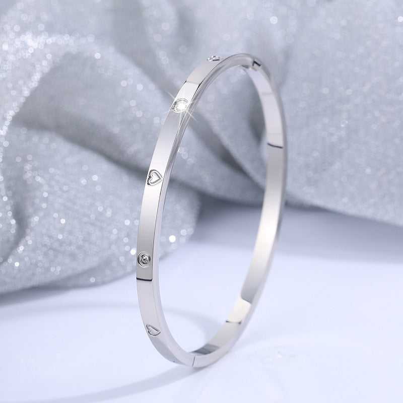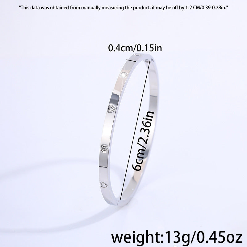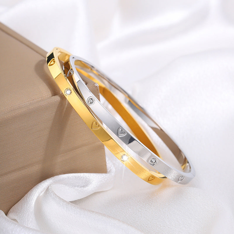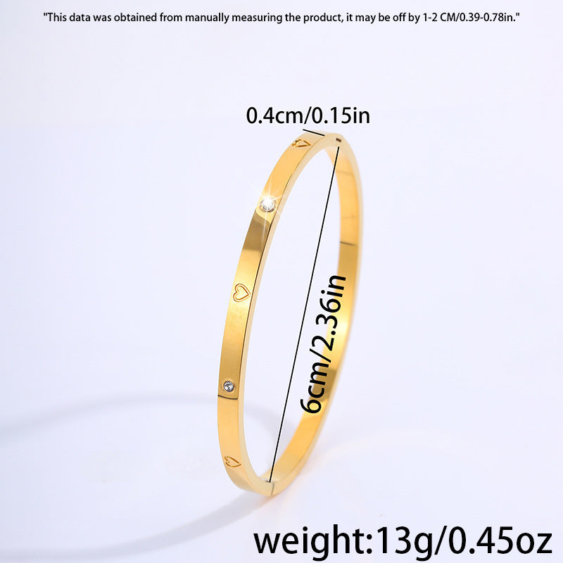 鈦鋼手鐲歐美跨境時尚熱賣愛心鑲鑽手鐲女生高級感18k不掉色手鐲